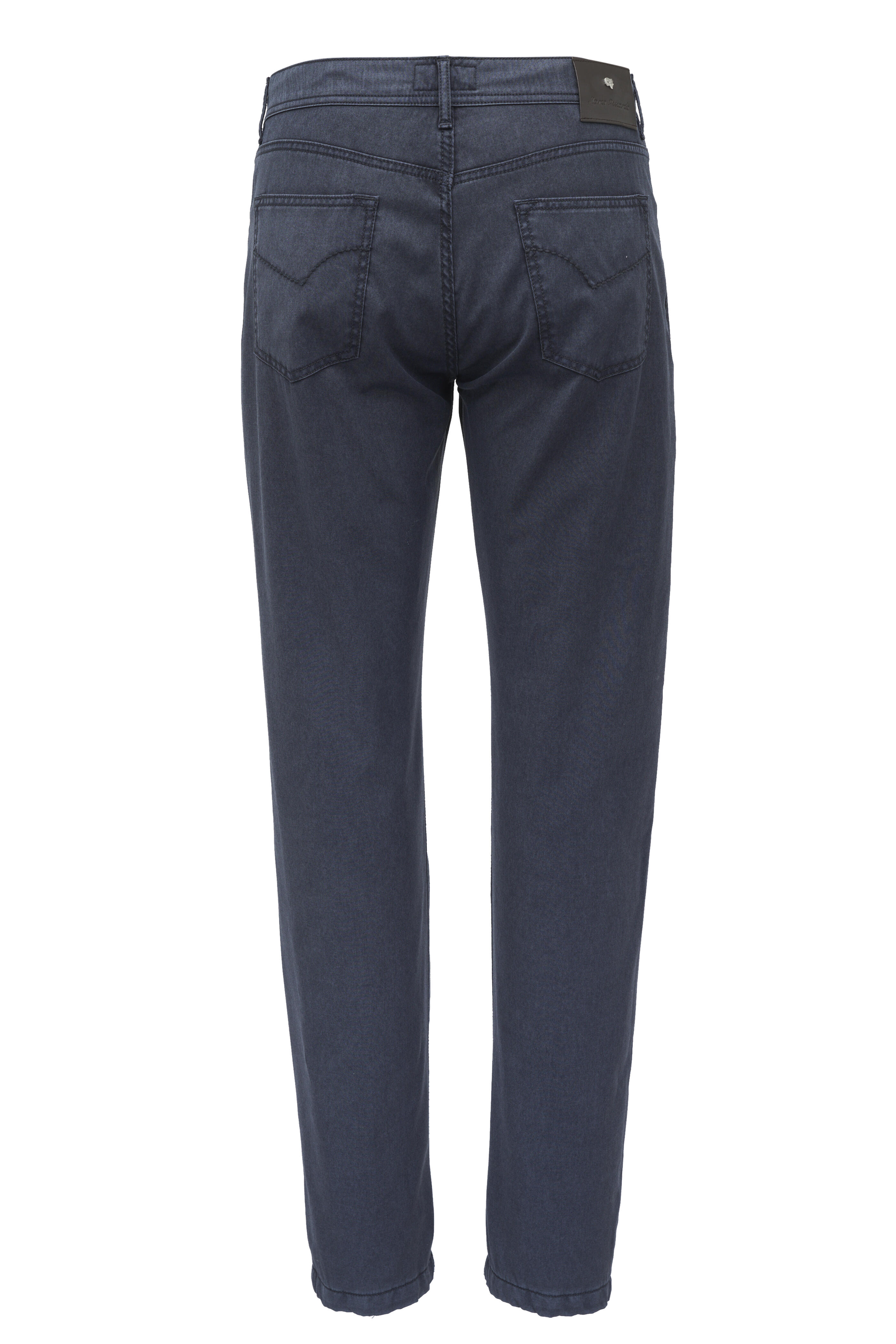 Zip fly with button closure. Banded waistband; belt loops. Five pocket styling. Made in Italy. Inseam 35" (size 36"). 100% virgin wool. Dry clean.