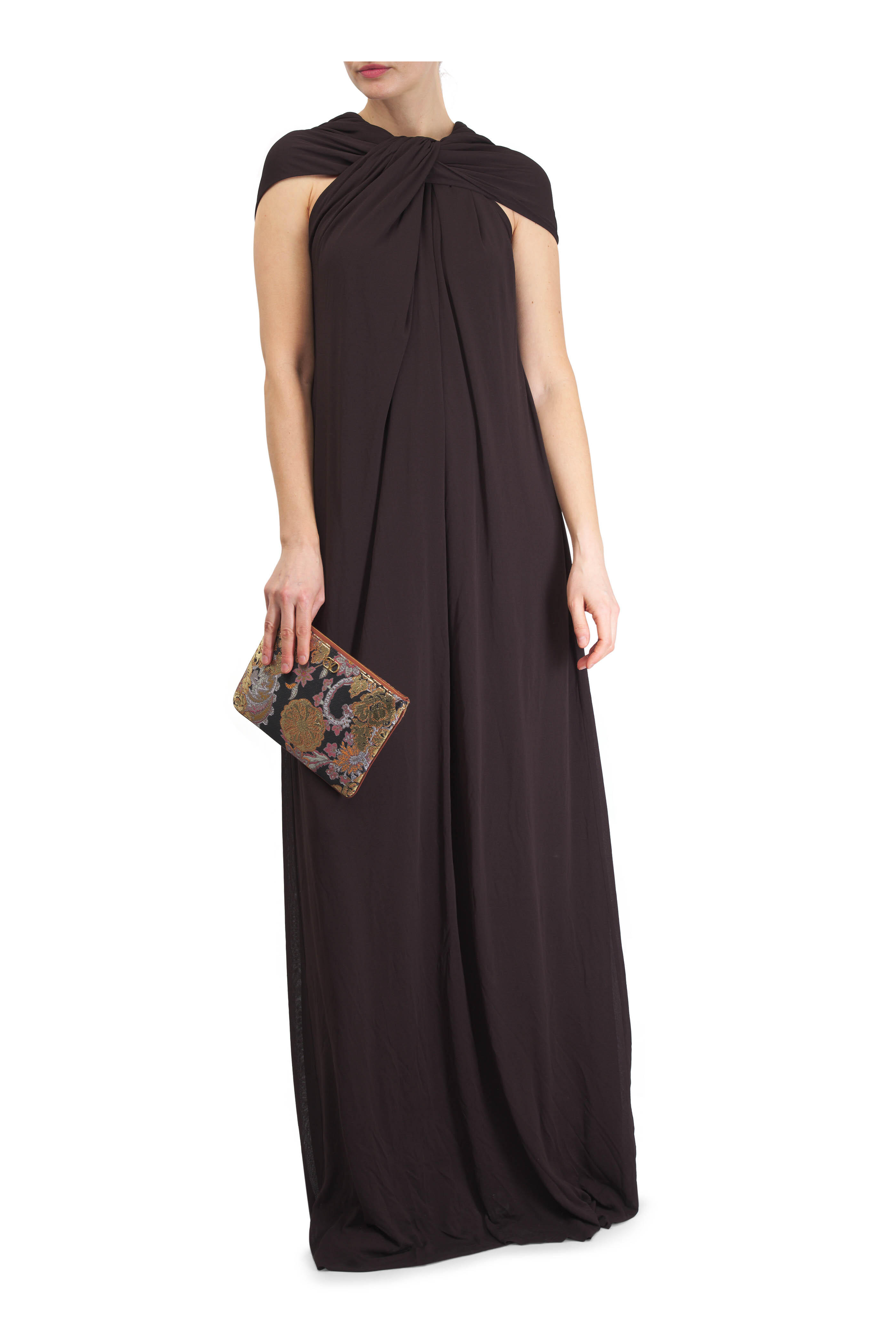 V-neckline. Pull over style. Made in Italy. 66" shoulder to hem (size 6). 100% viscose. Dry clean.