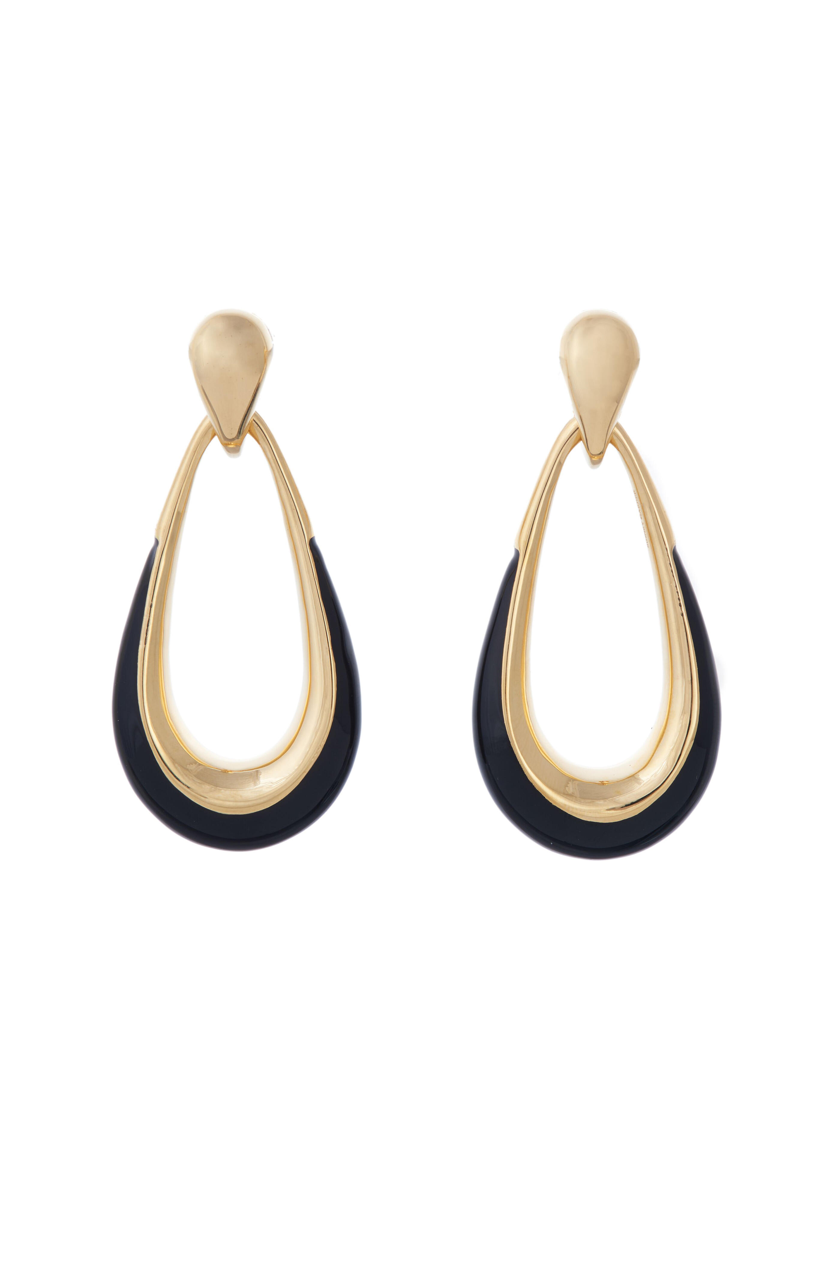 18k Yellow Gold Black Enamel Door Knocker Earrings