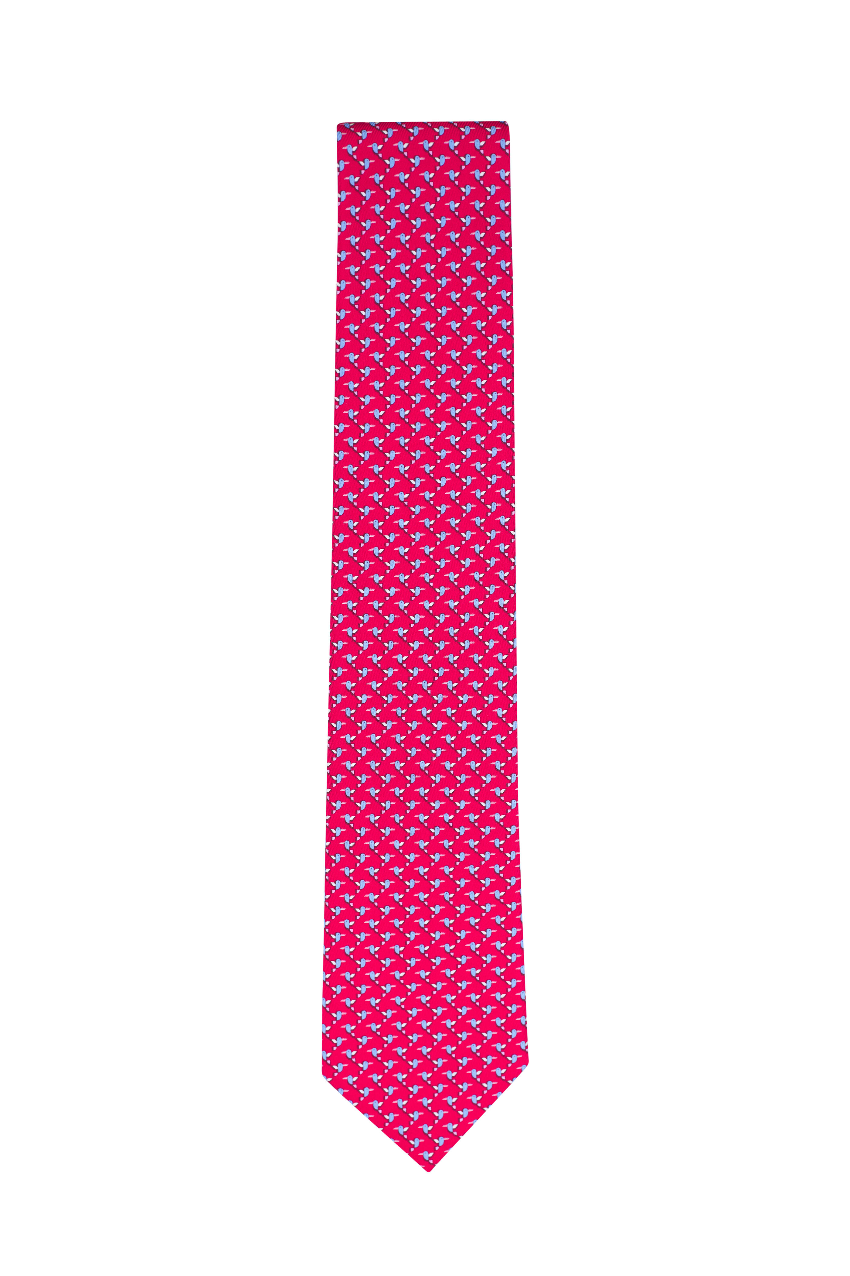 Red Hummingbird Print Silk Necktie