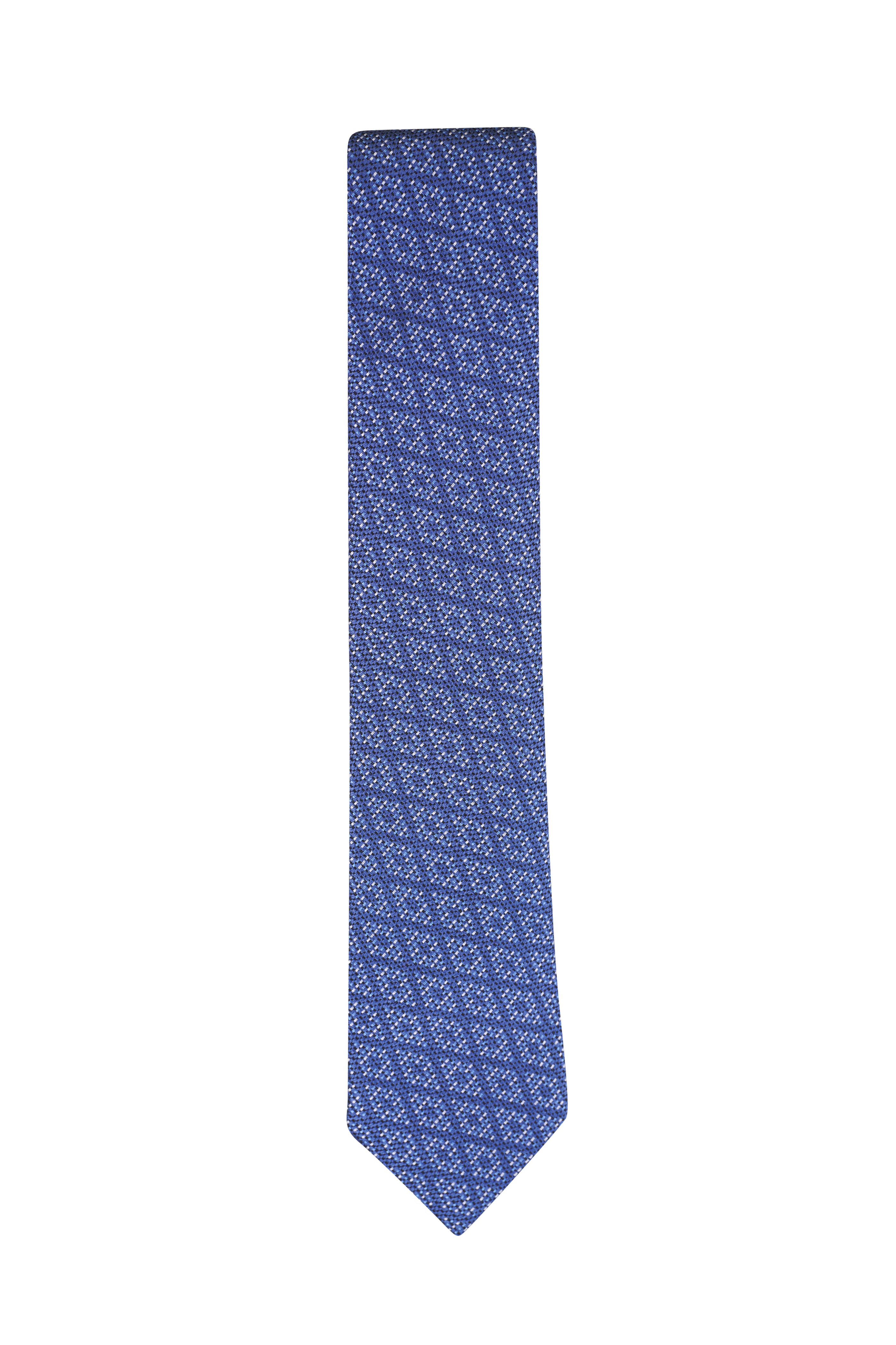 Blue Geometric Print Silk Tie