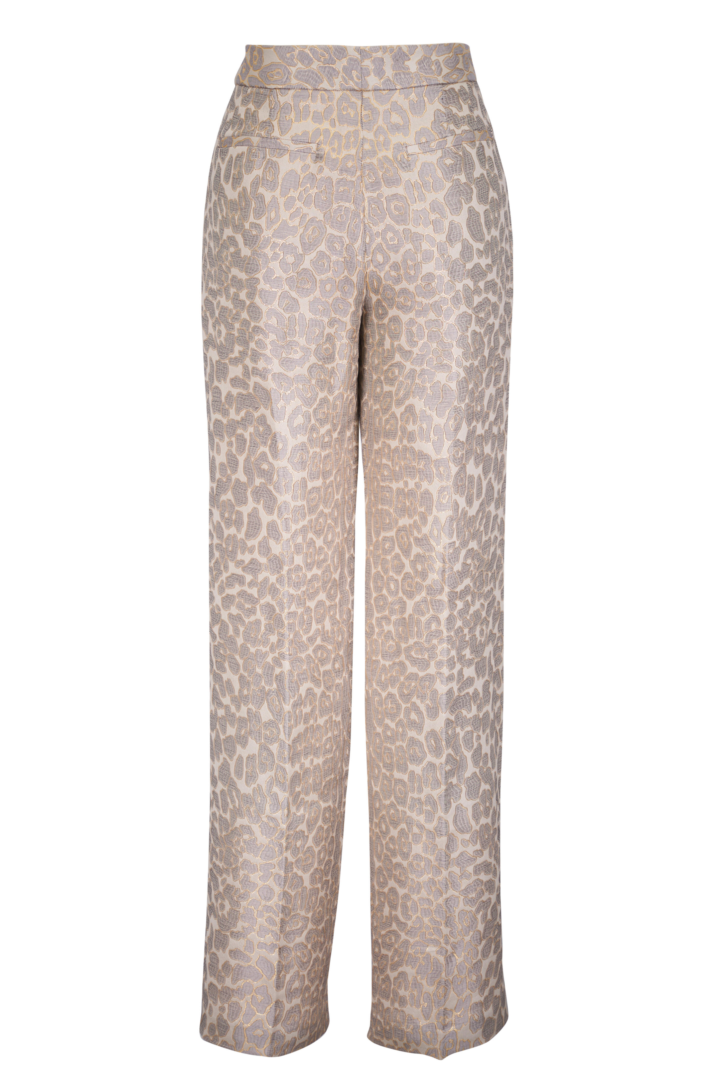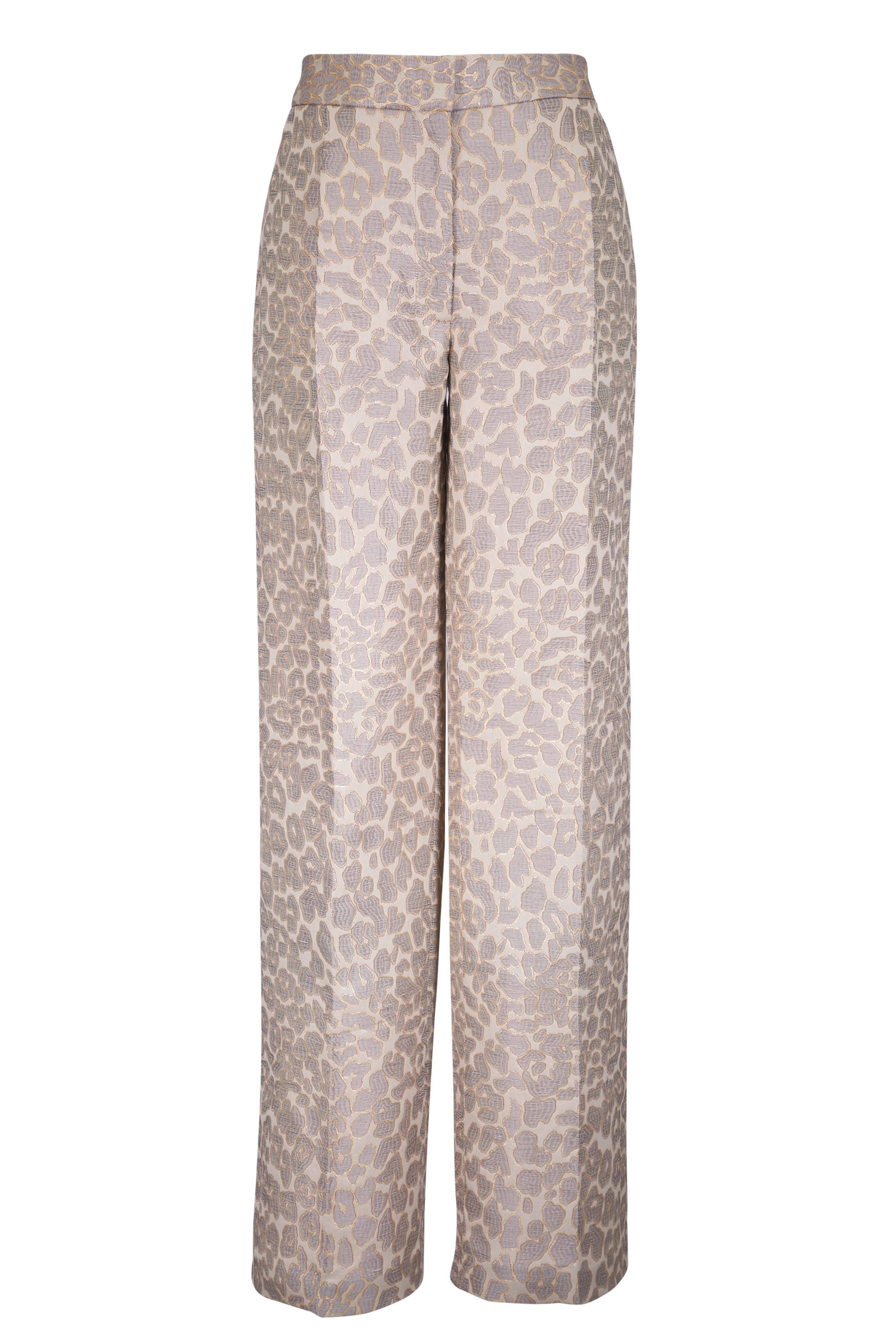 Banks Pale Gray Leopard Jacquard Pleat Pant