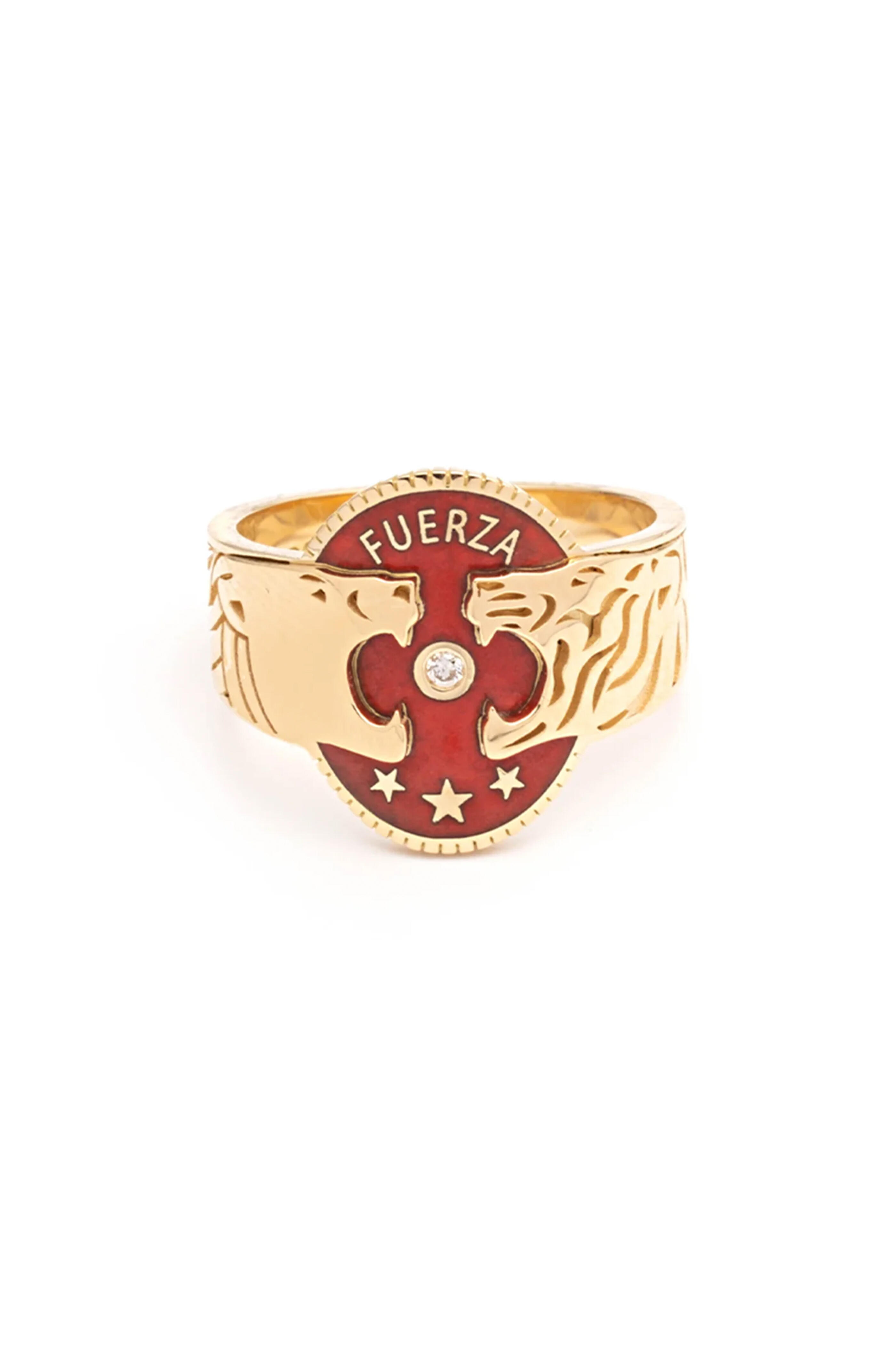 18k Yellow Gold. Champleve Enamel. Size 6. Diamond weight: 0.020 ct.