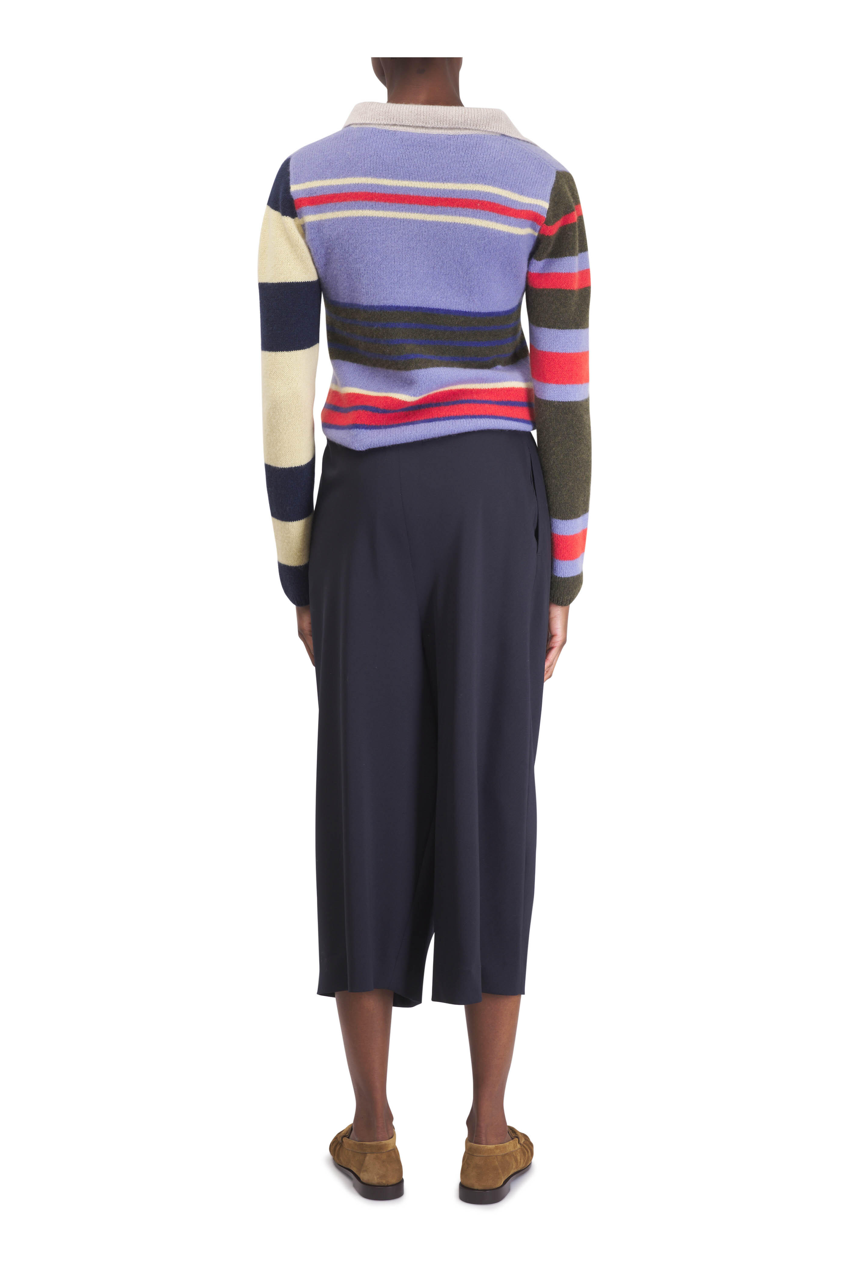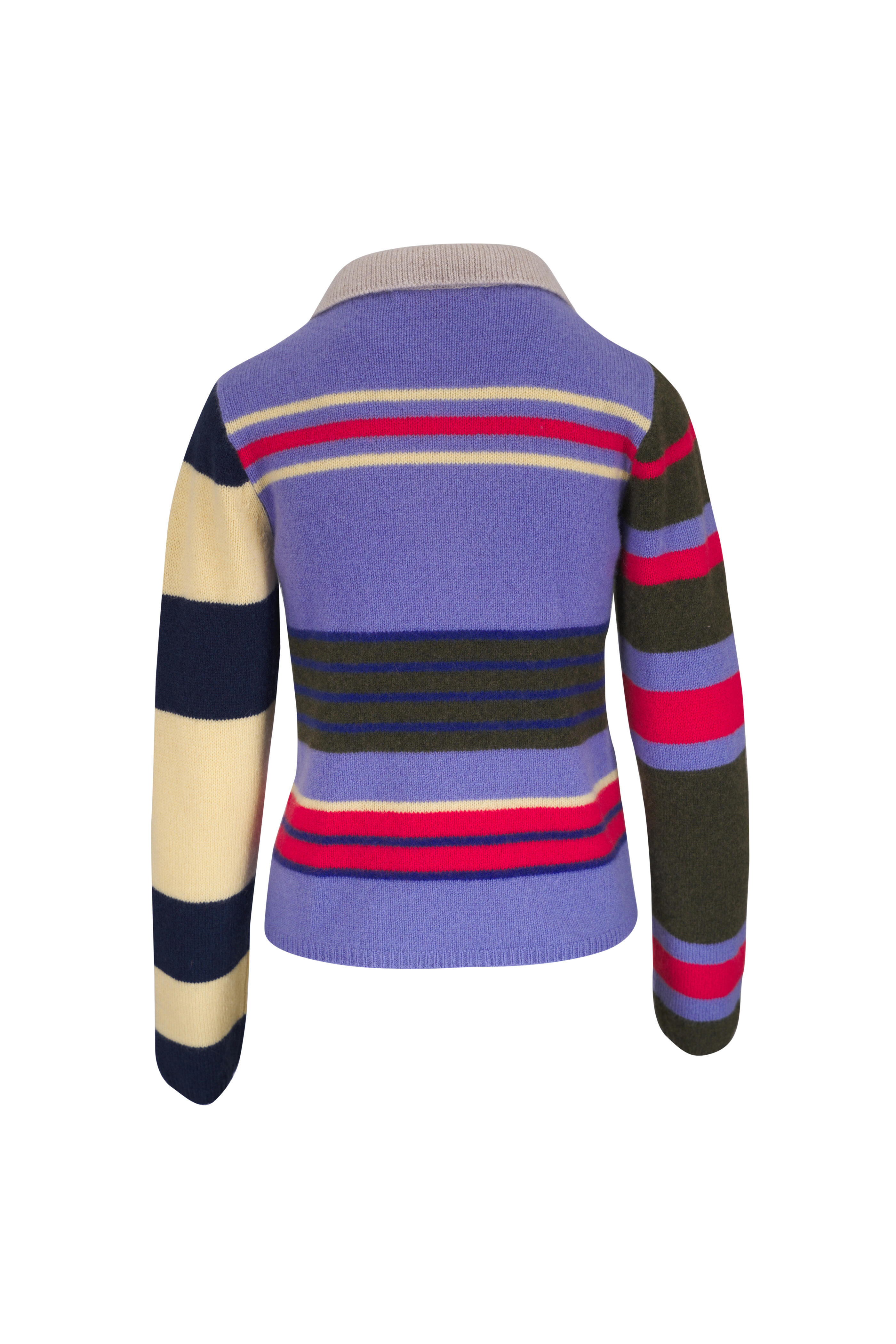 Spread collar. Three button placket. Ribbed trims. Imported. Shoulder to hem 23" (size S). 100% cashmere. Dry clean.