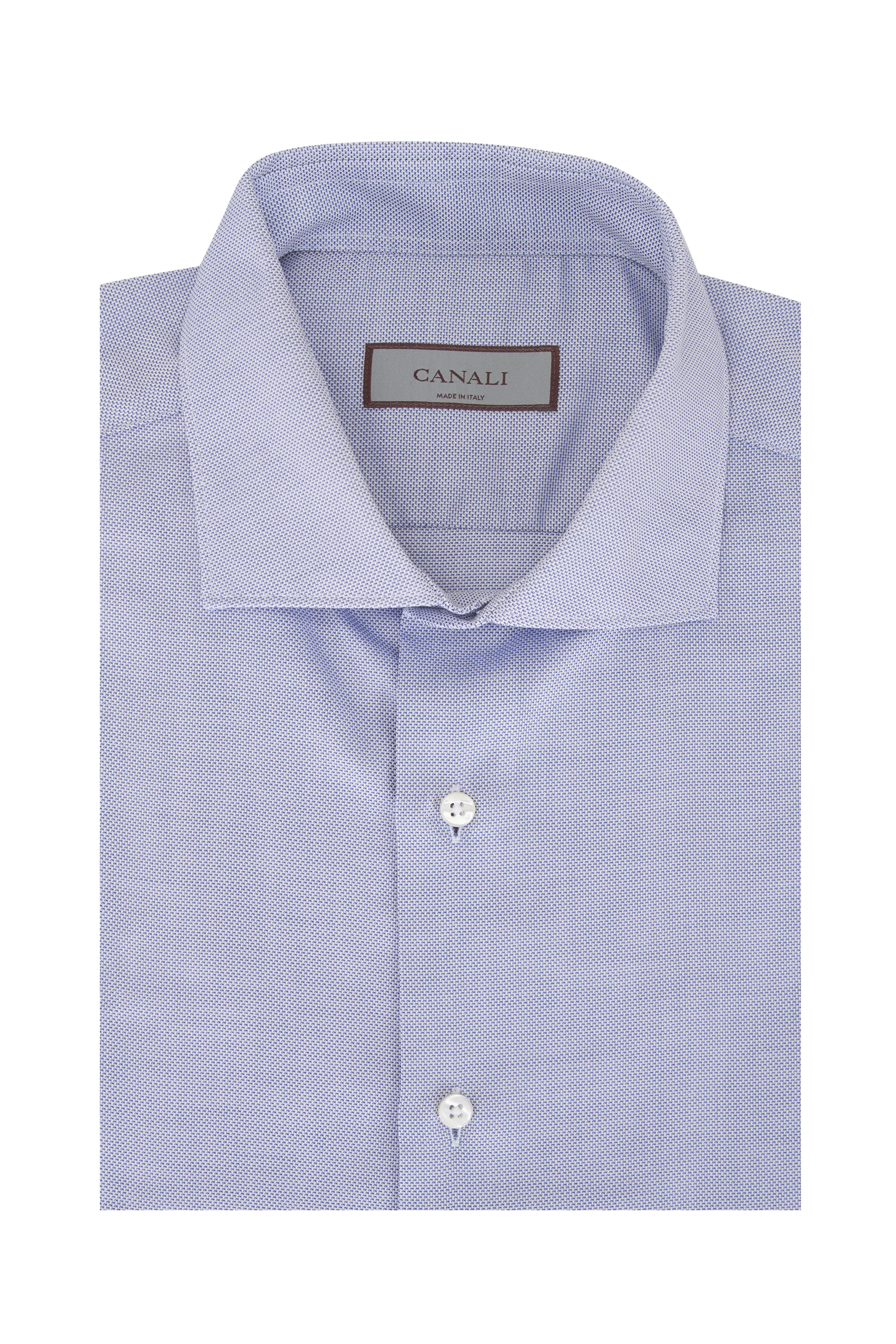 Spread collar. French front button placket. Single button mitered cuffs. Made in Italy. 100% cotton. Machine wash.