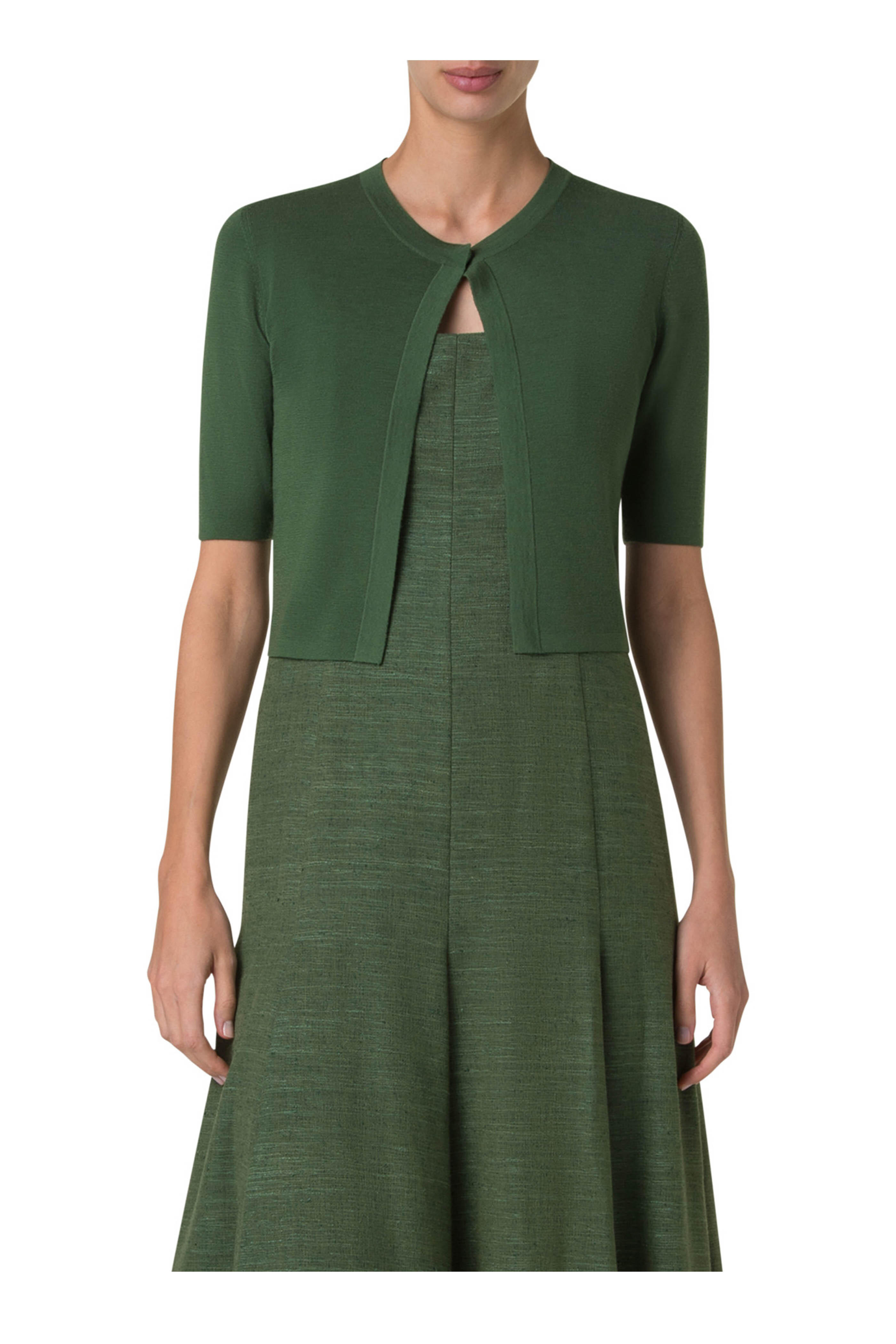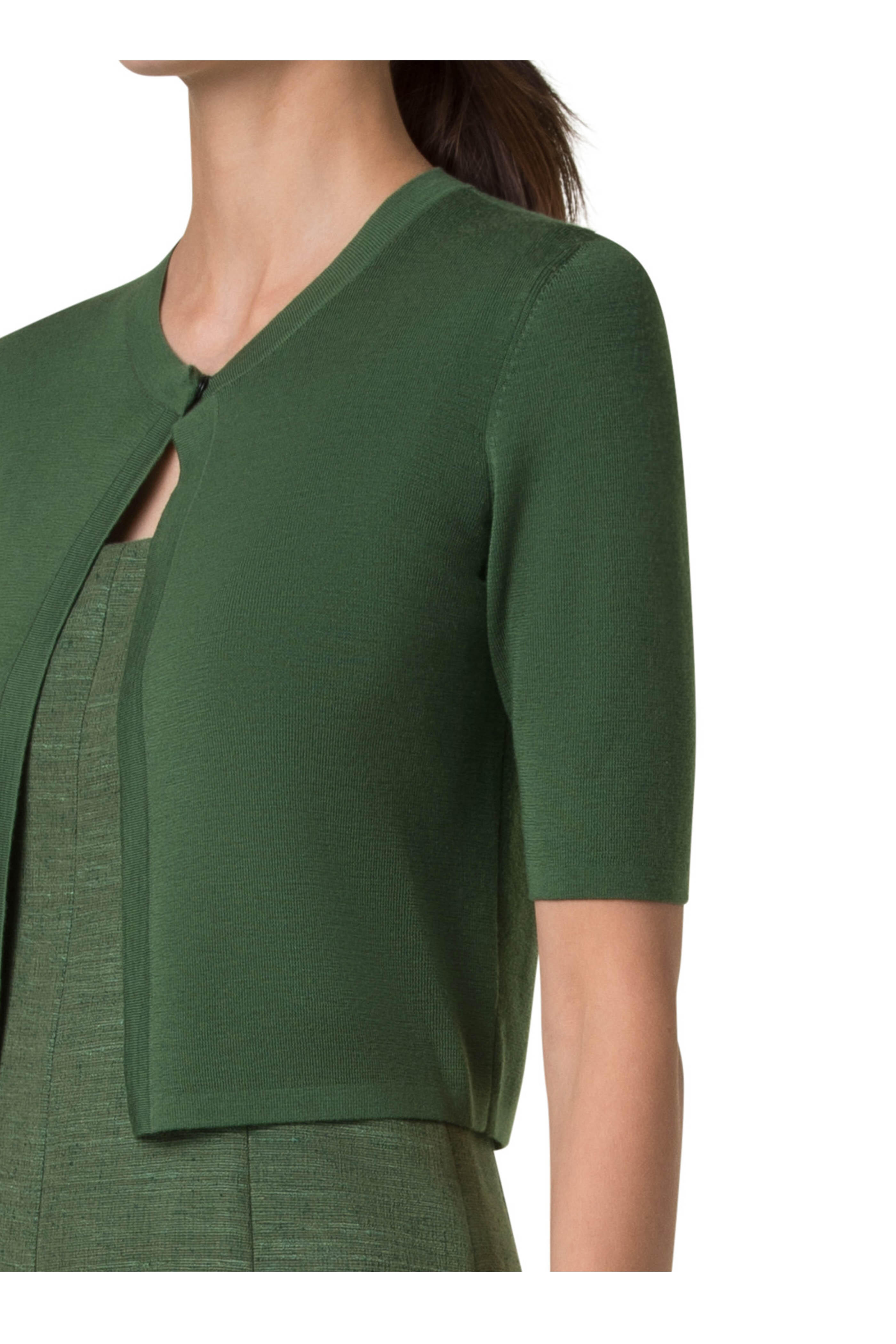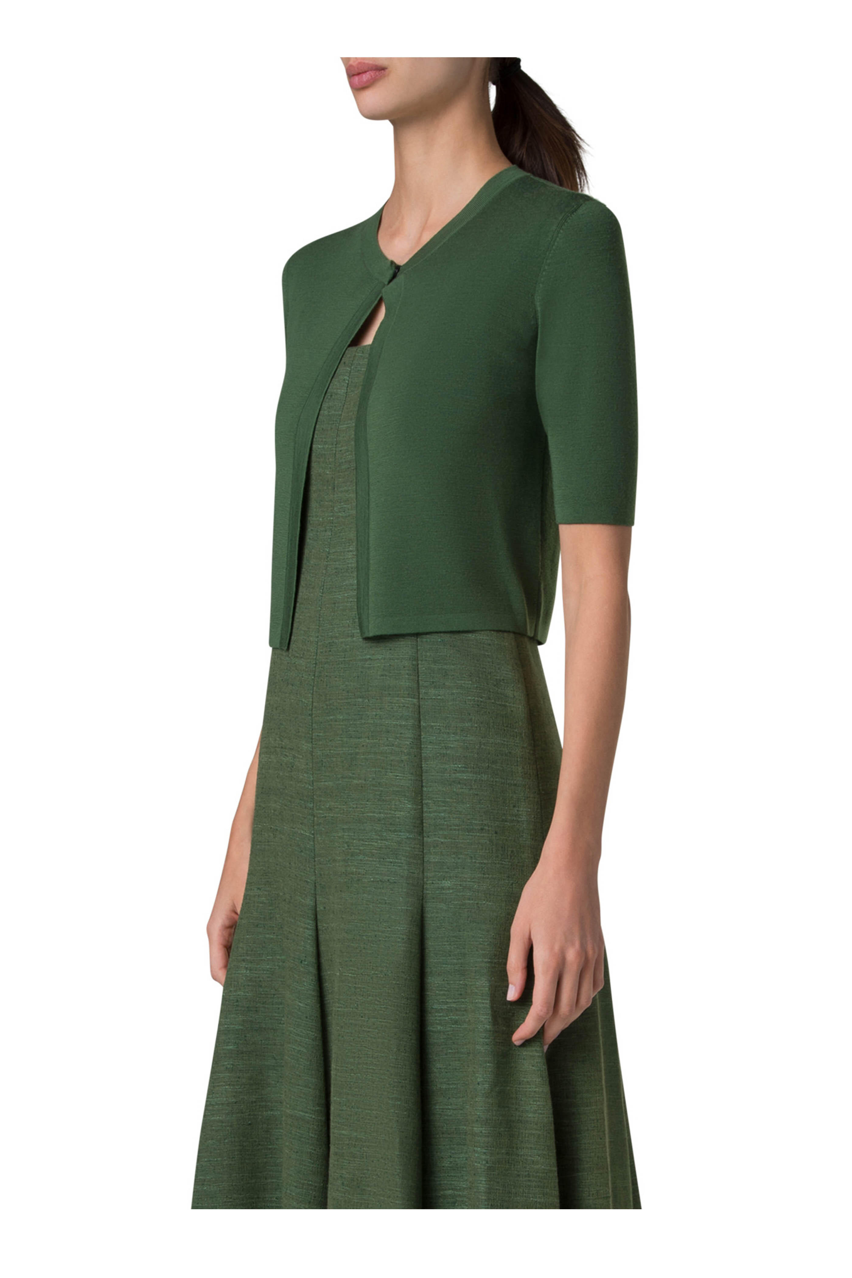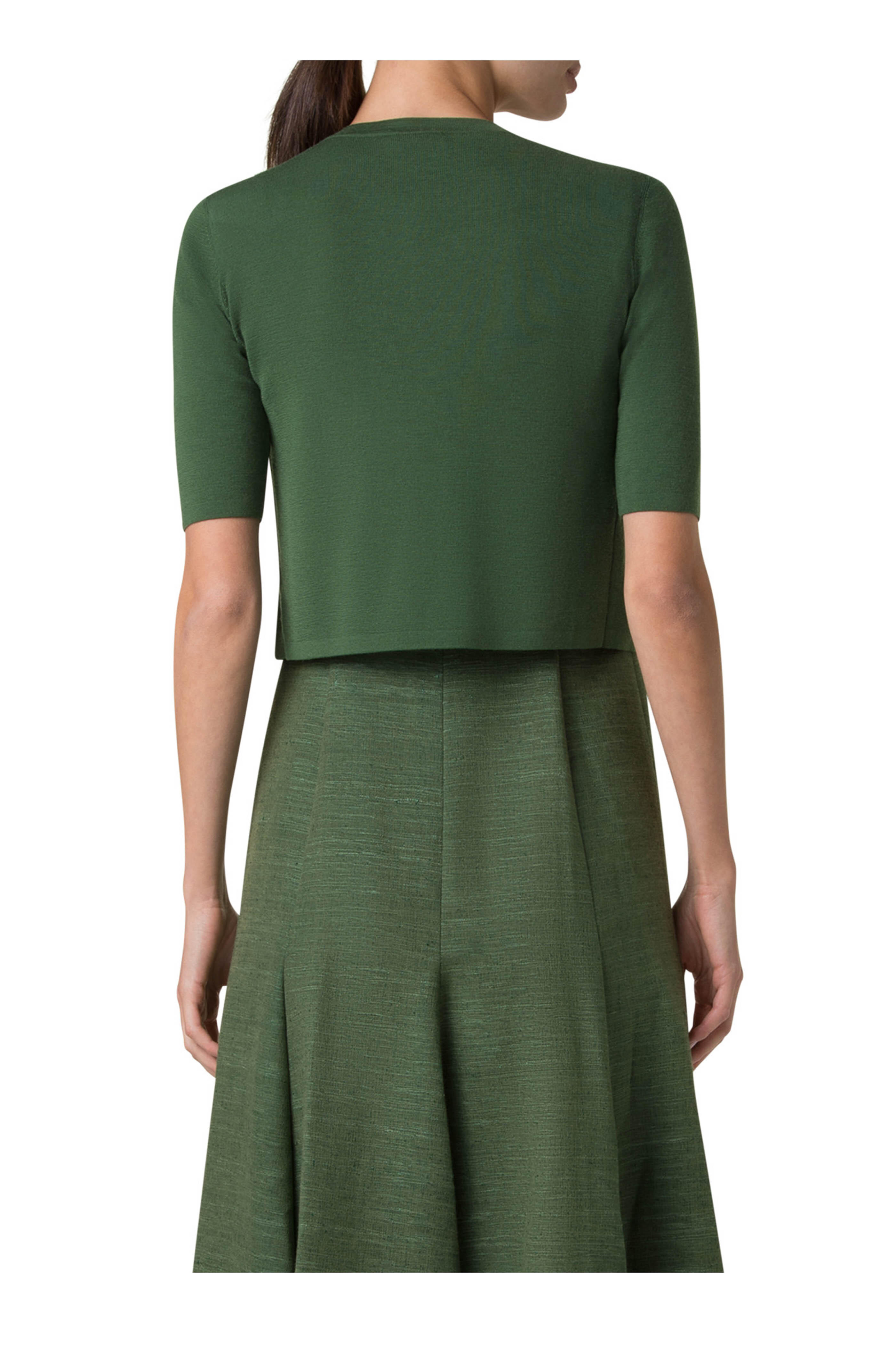 Green Merino Wool Cropped Cardigan