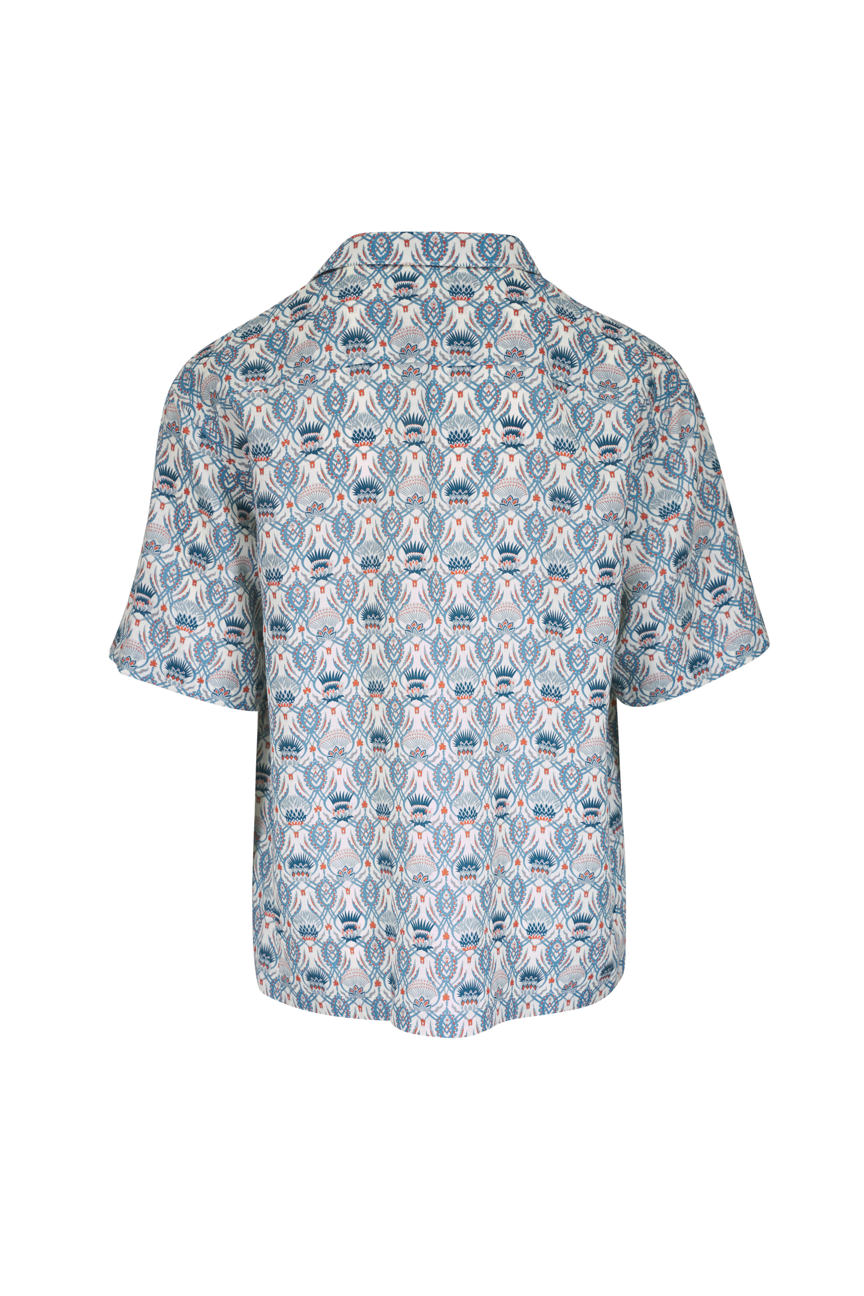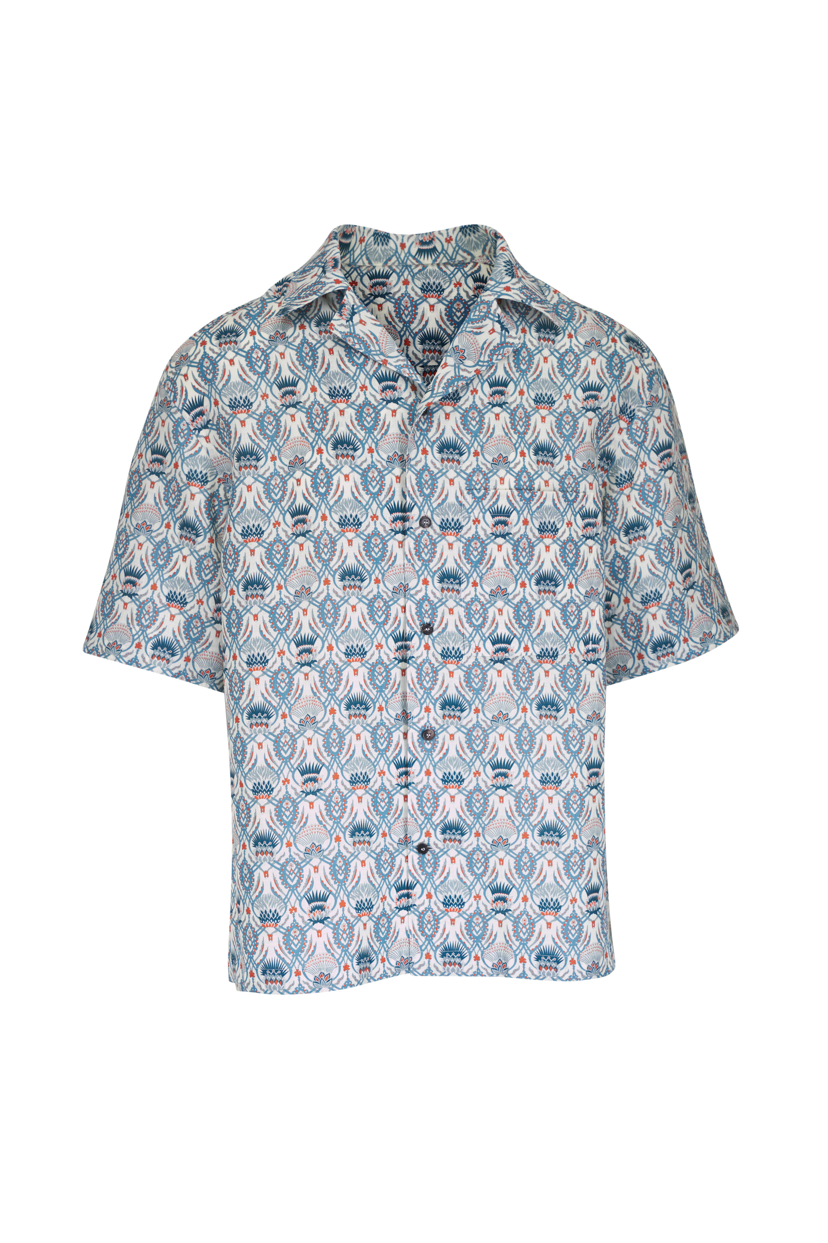 Federico Blue & Rust Floral Print Linen Camp Shirt