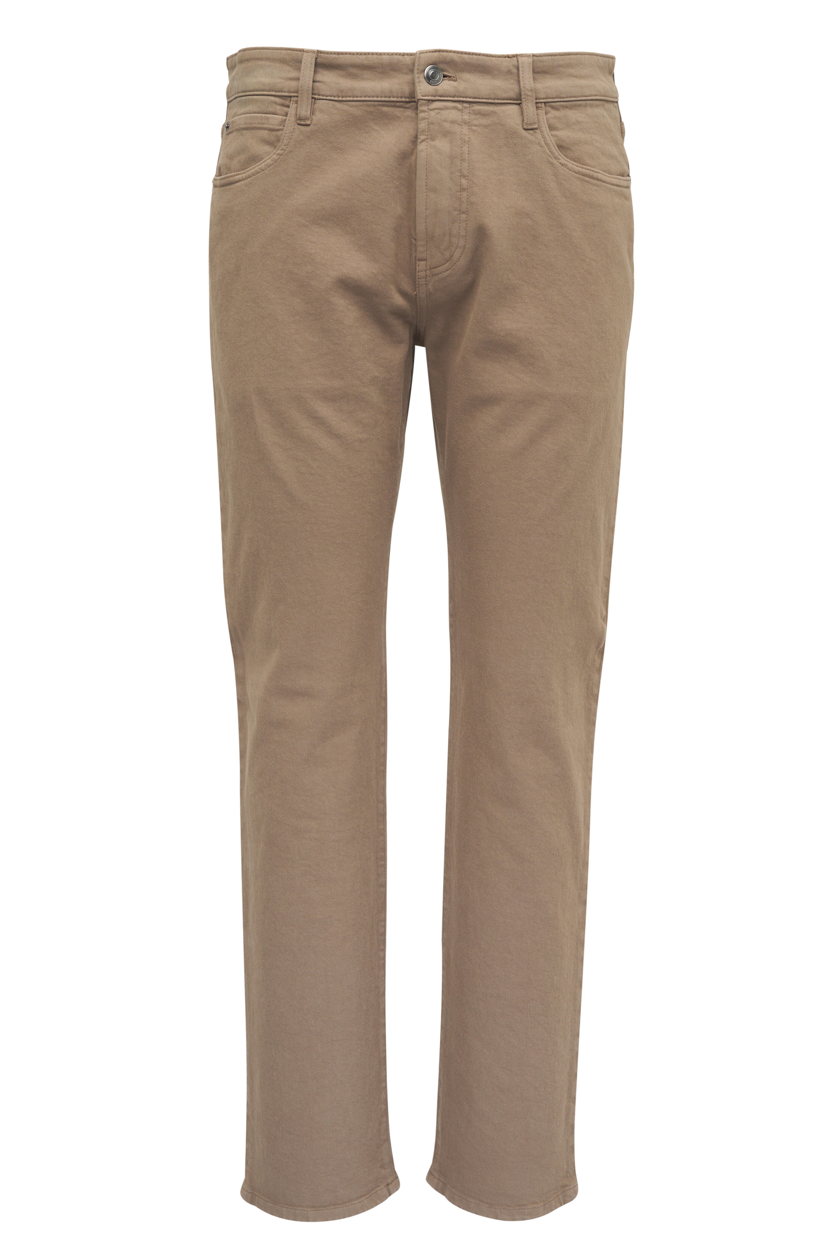 Zip fly; button closure. Belt loops. Five pocket styling. Made in Italy. Color: Smoked Wood. Regular fit. 99% cotton, 1% elastane. Machine wash.