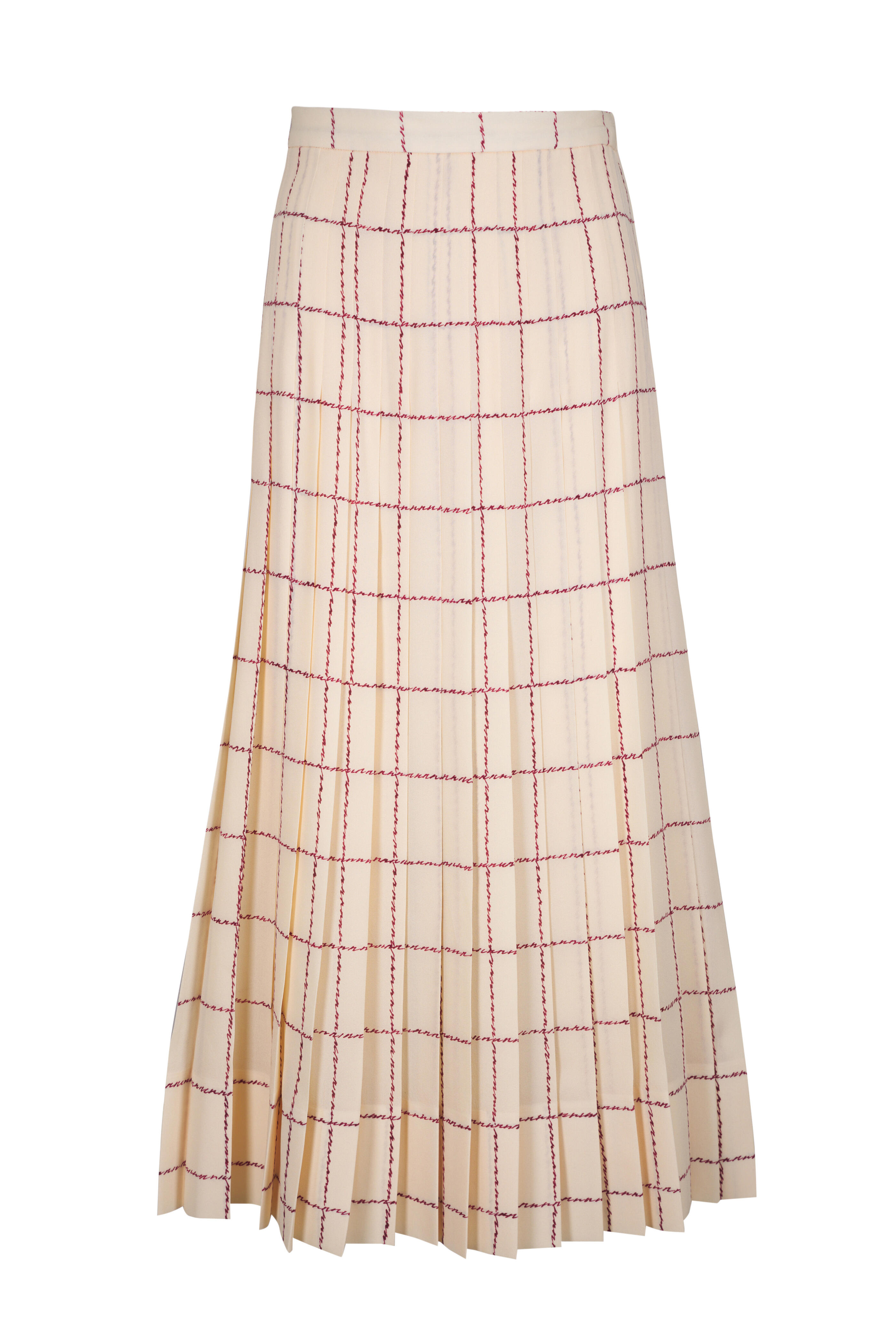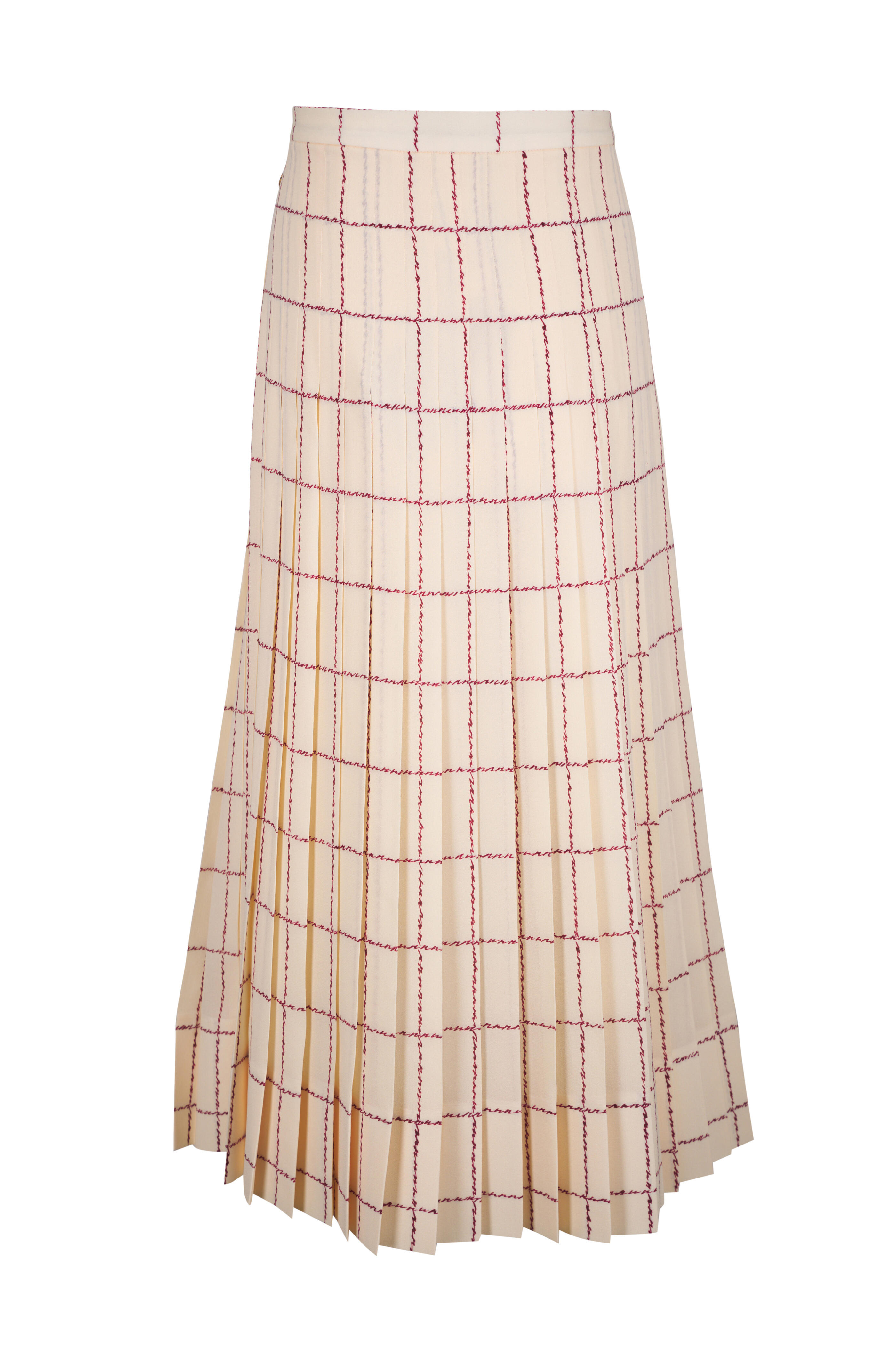 Side zip closure; hook and eye. Pleated. Made in Italy. 100% silk; unlined. Dry clean.