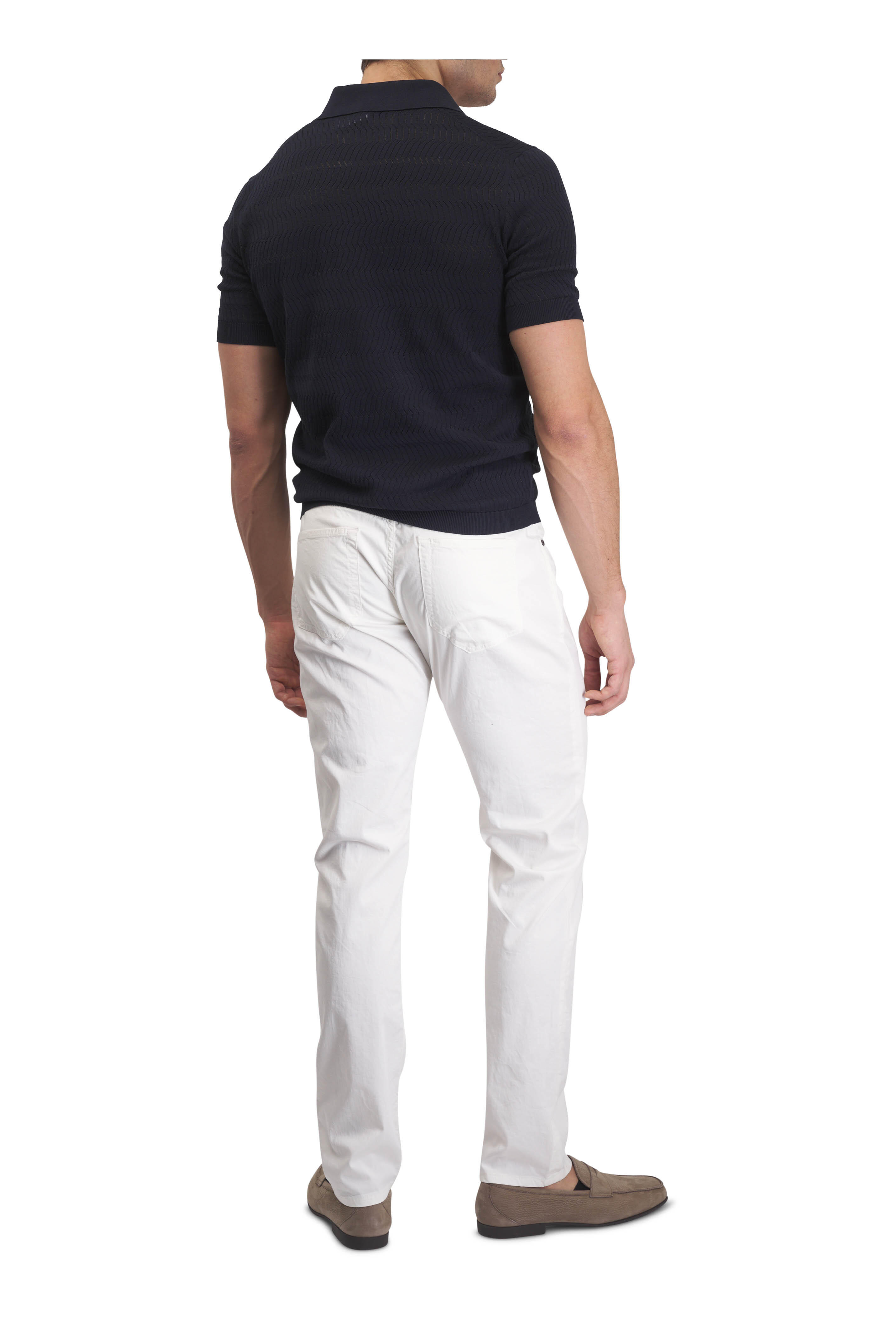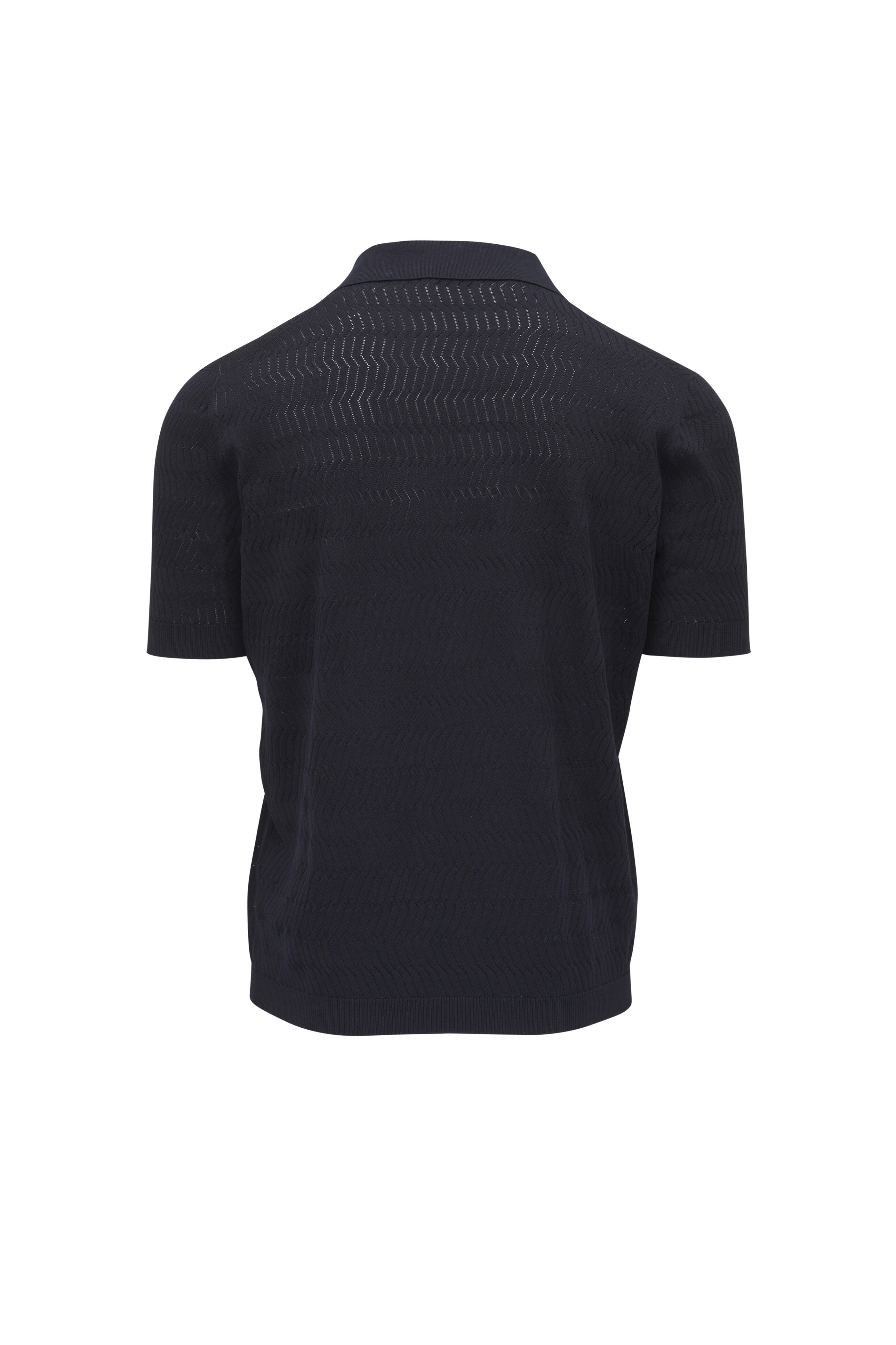 Navy Textured Cotton & Silk Polo