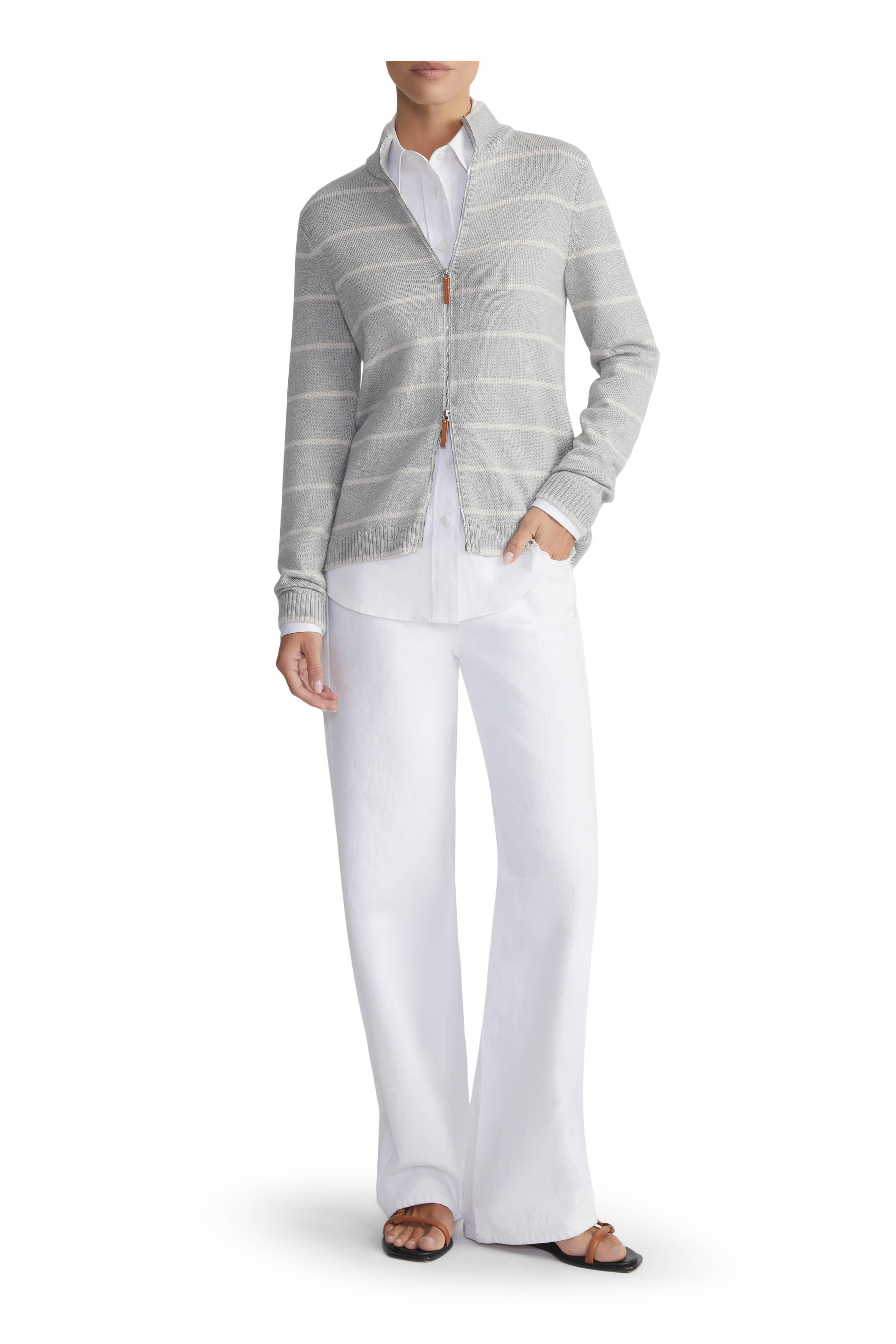 Dove Cotton & Silk Tape Stripe Fitted Bomber