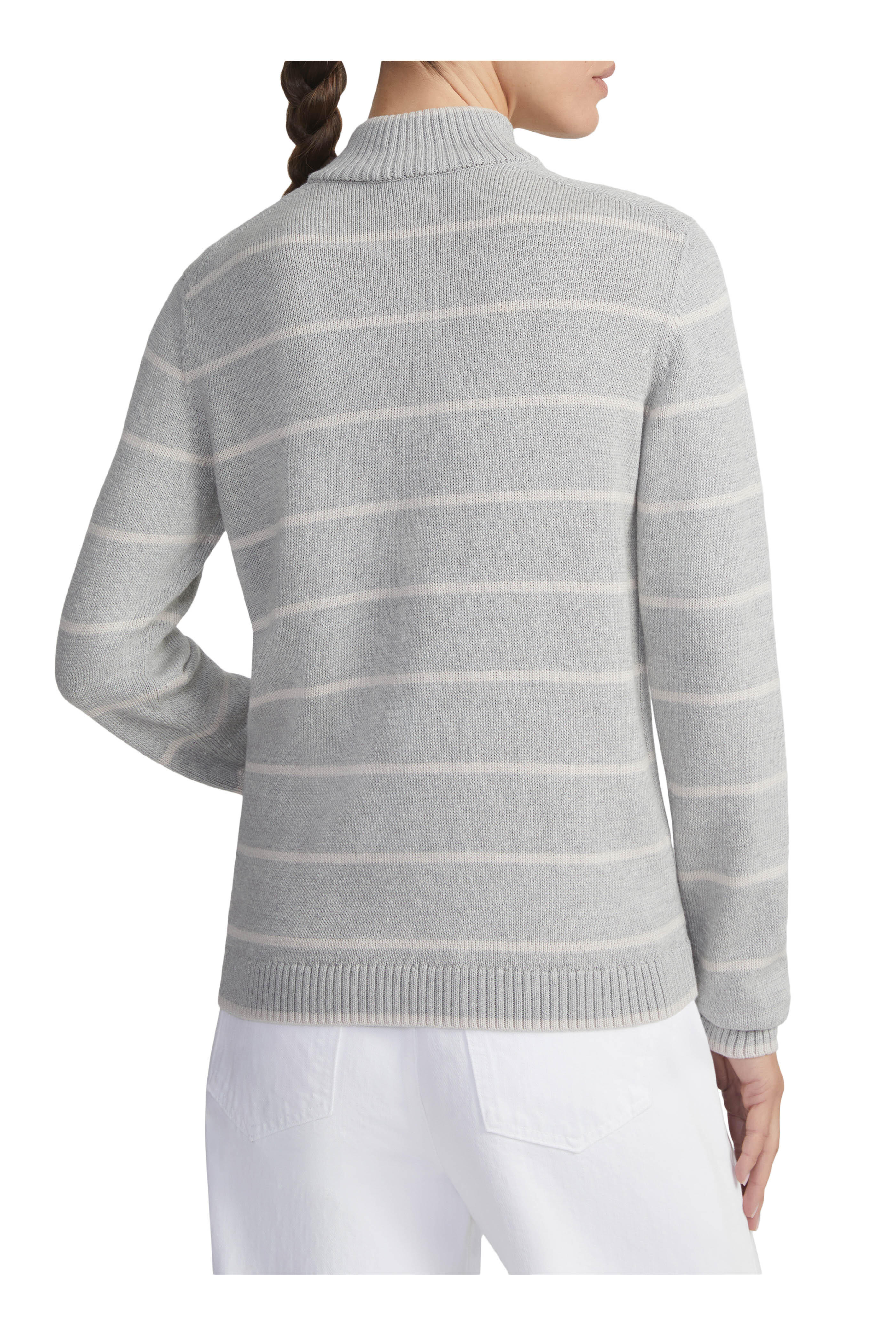 Mock neckline. Two-way zip placket. Ribbed trims. Made in Italy. 70% cotton, 30% silk. Dry clean.