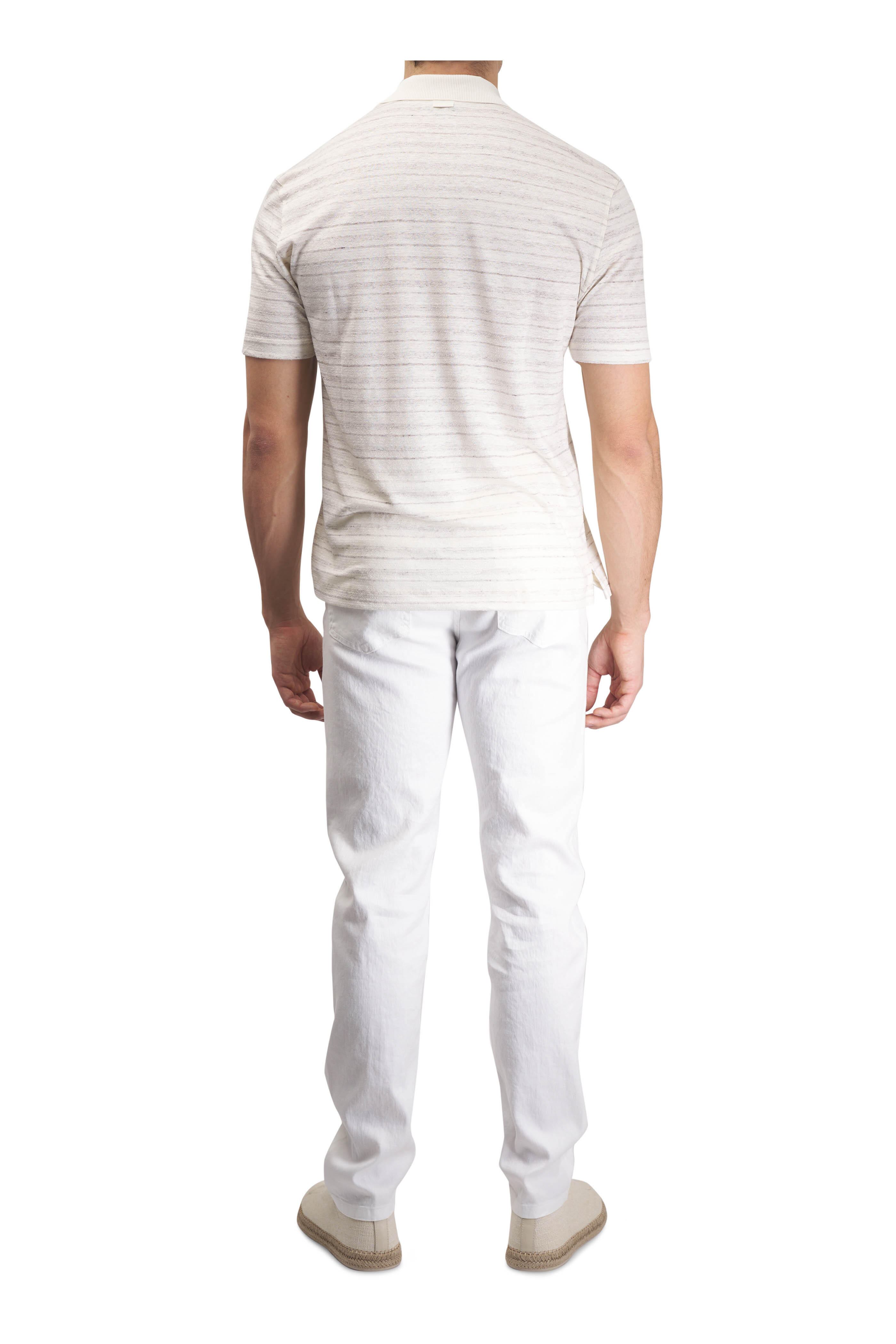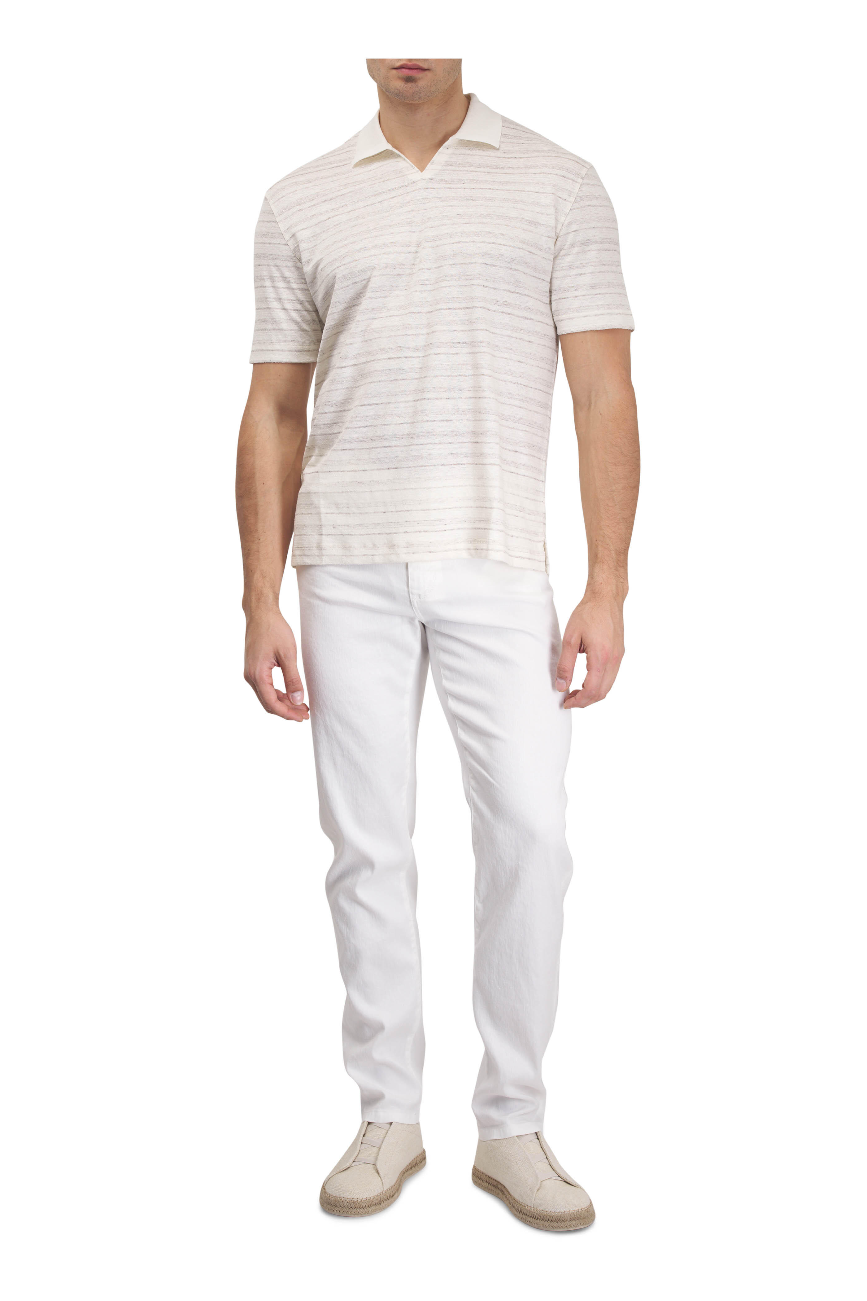 Johnny collar. Vented hem. Made in Italy. 75% linen, 21% silk, 4% polyamide.