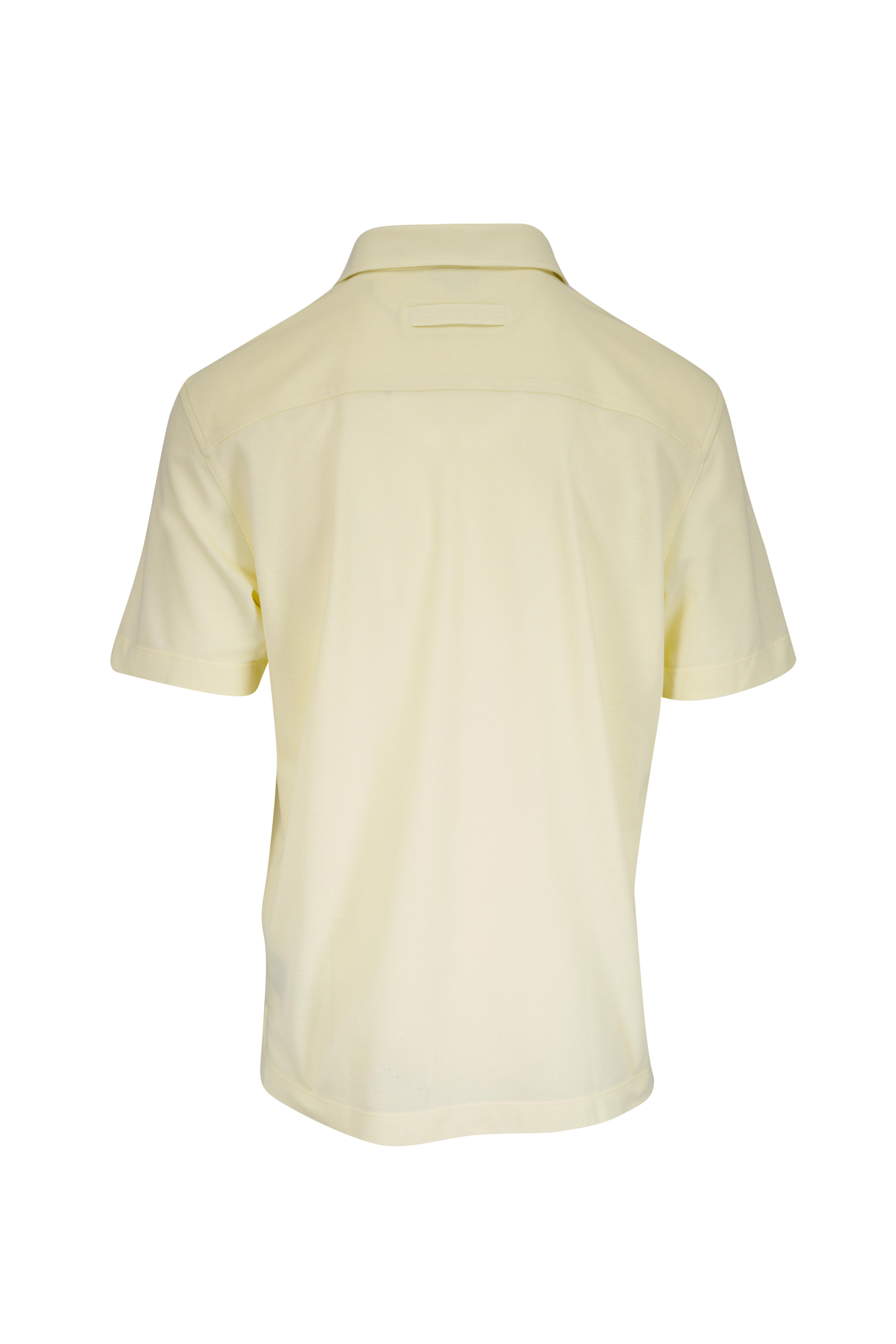 Spread collar. Three button placket. Vented hem. Imported. 100% cotton. Machine wash.