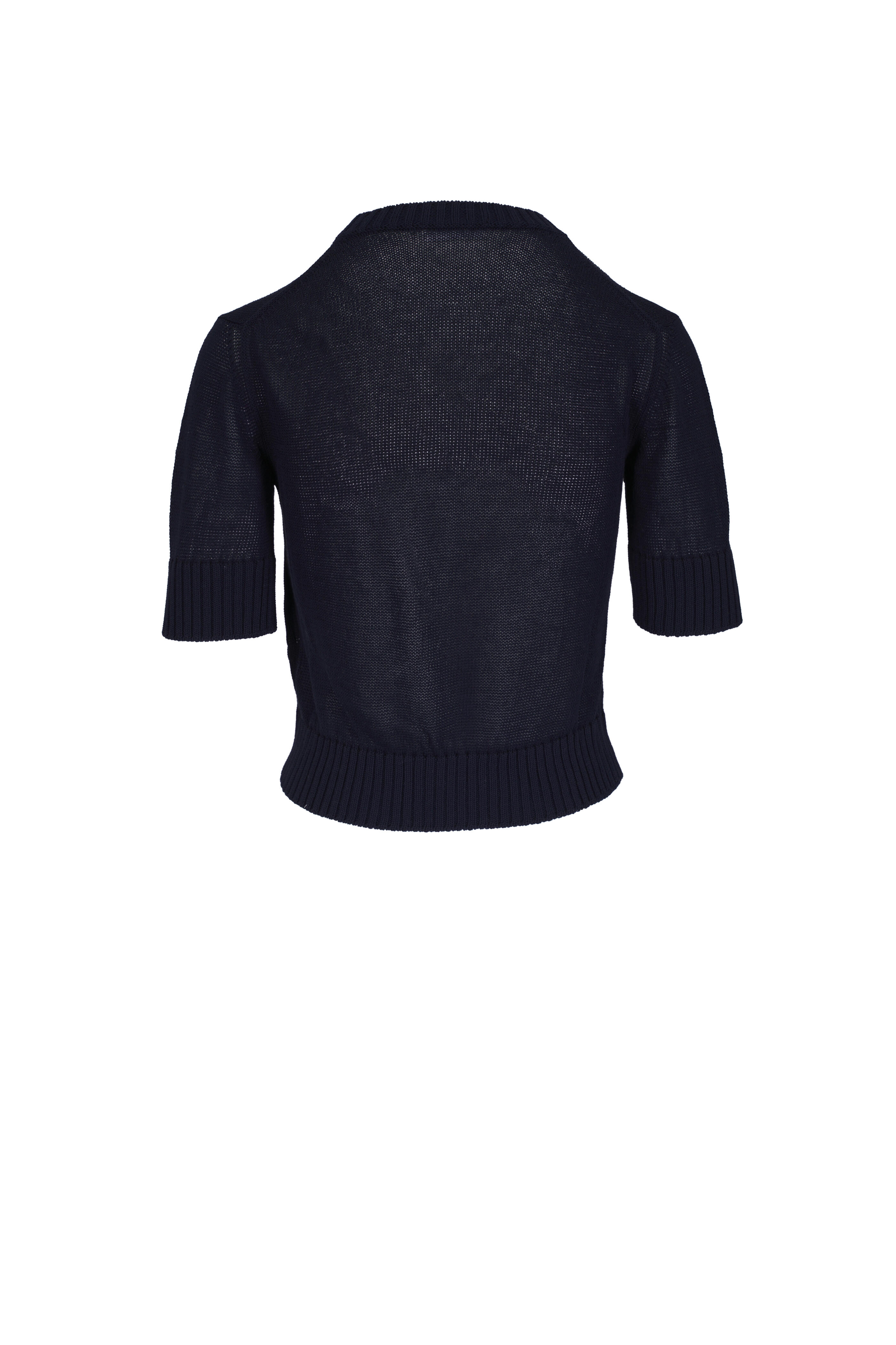 Crew neckline. Ribbed trim. Made in Italy. 100% cotton. Dry clean.