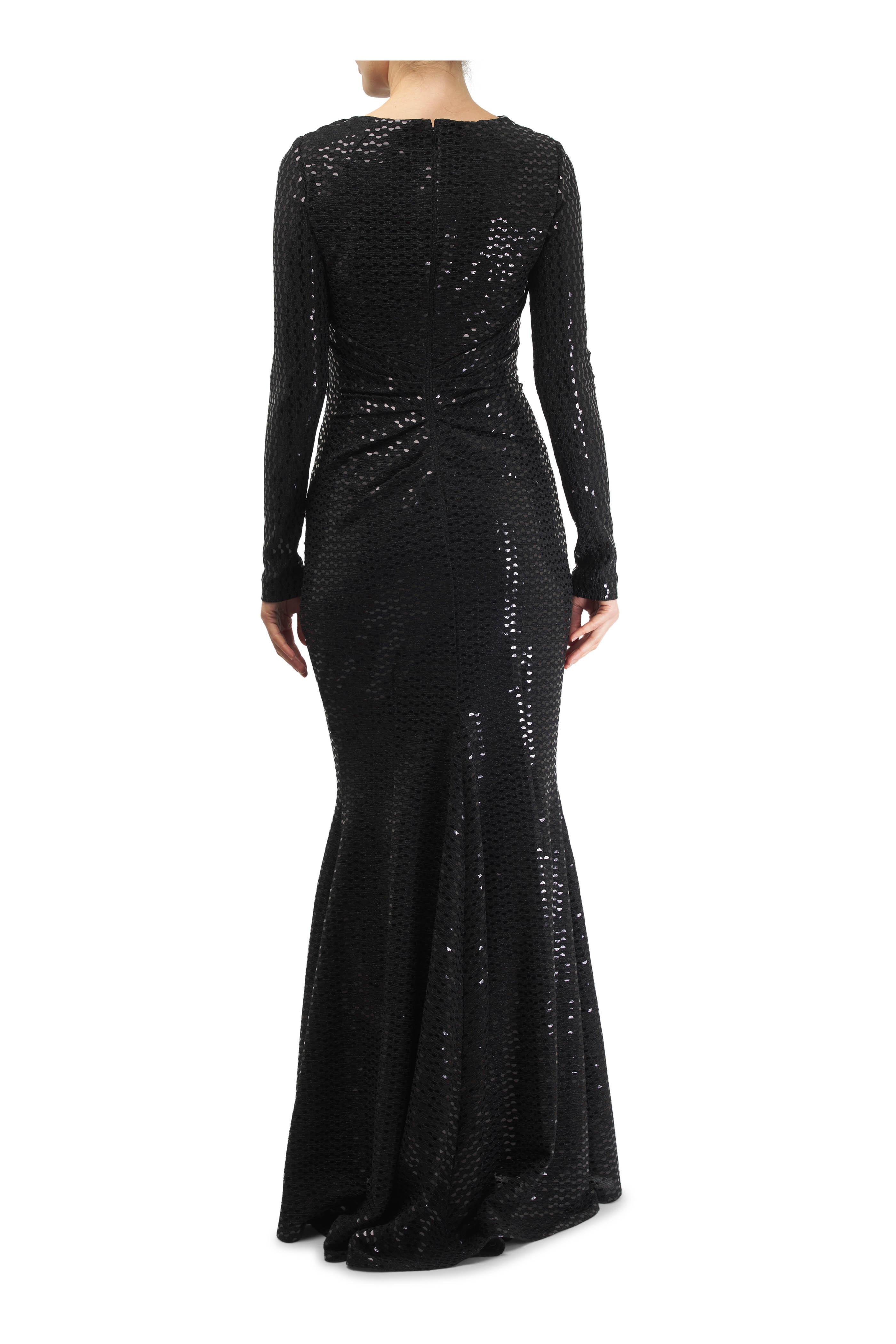 Fully lined. Ruched and draped neckline. Concealed back zip. Ruched bodice. Sequin detailing. Made in Germany. Floor length. 100% polyester. Dry clean.