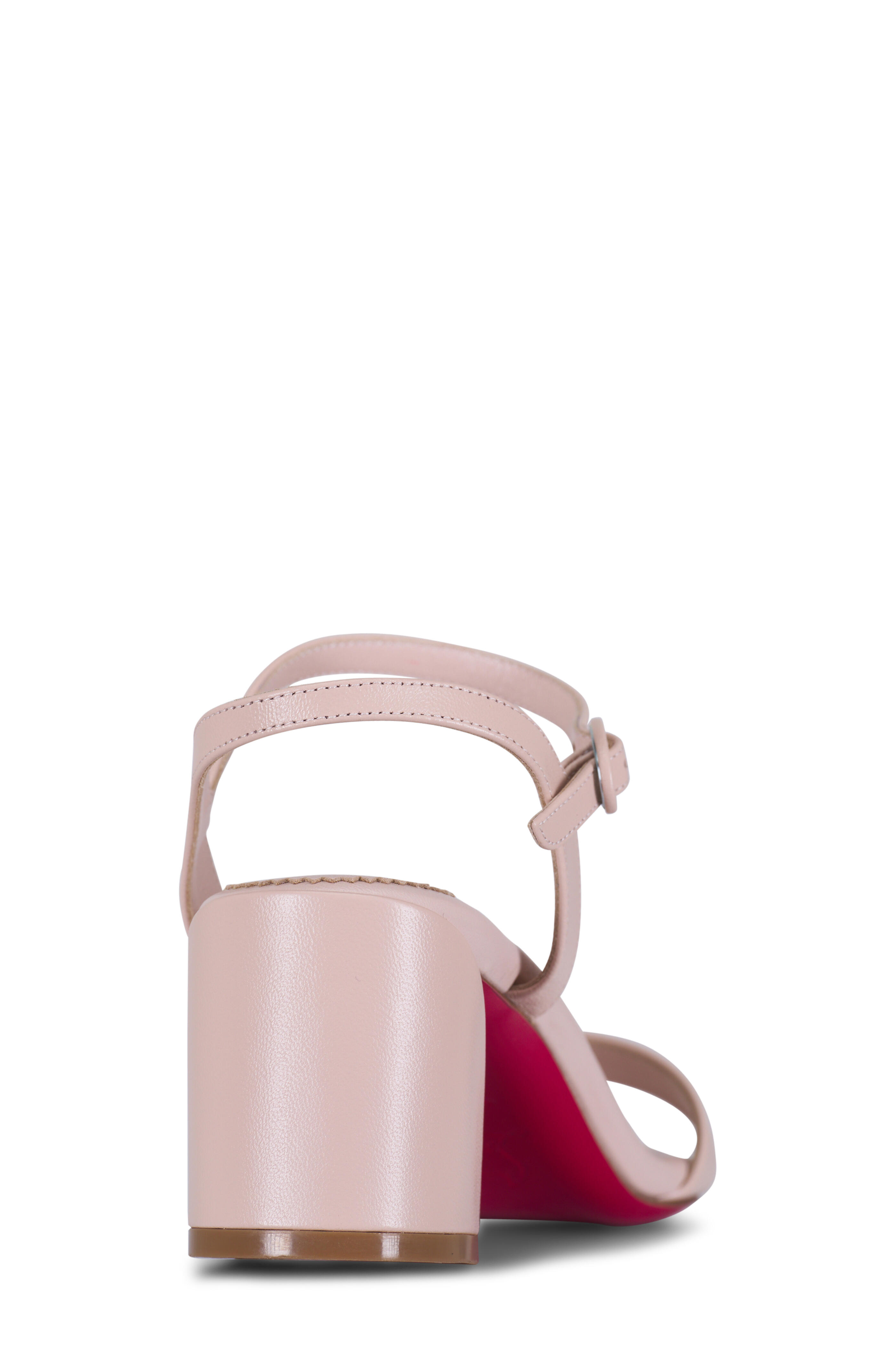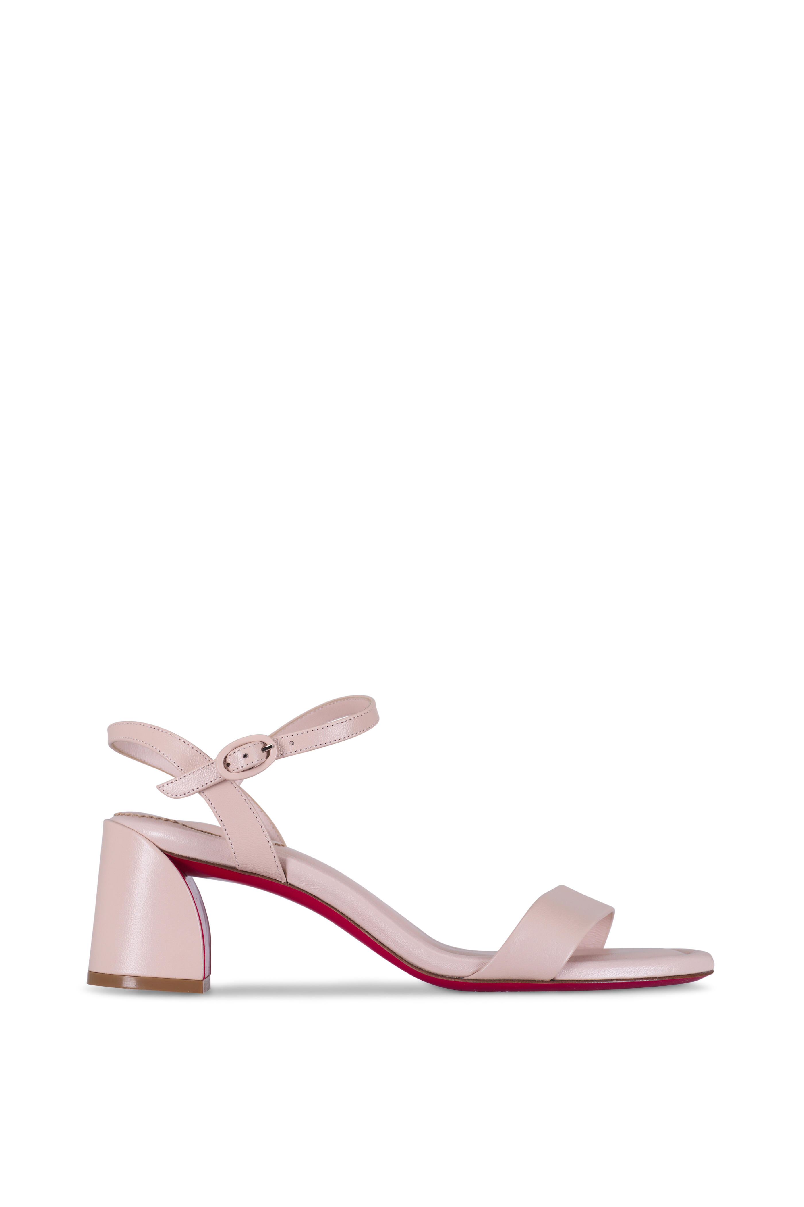 Leather upper. Open toe. Adjustable buckle ankle strap. Self-covered block heel. Signature red lacquer sole. Made in Italy. Heel measurement: 55mm.
