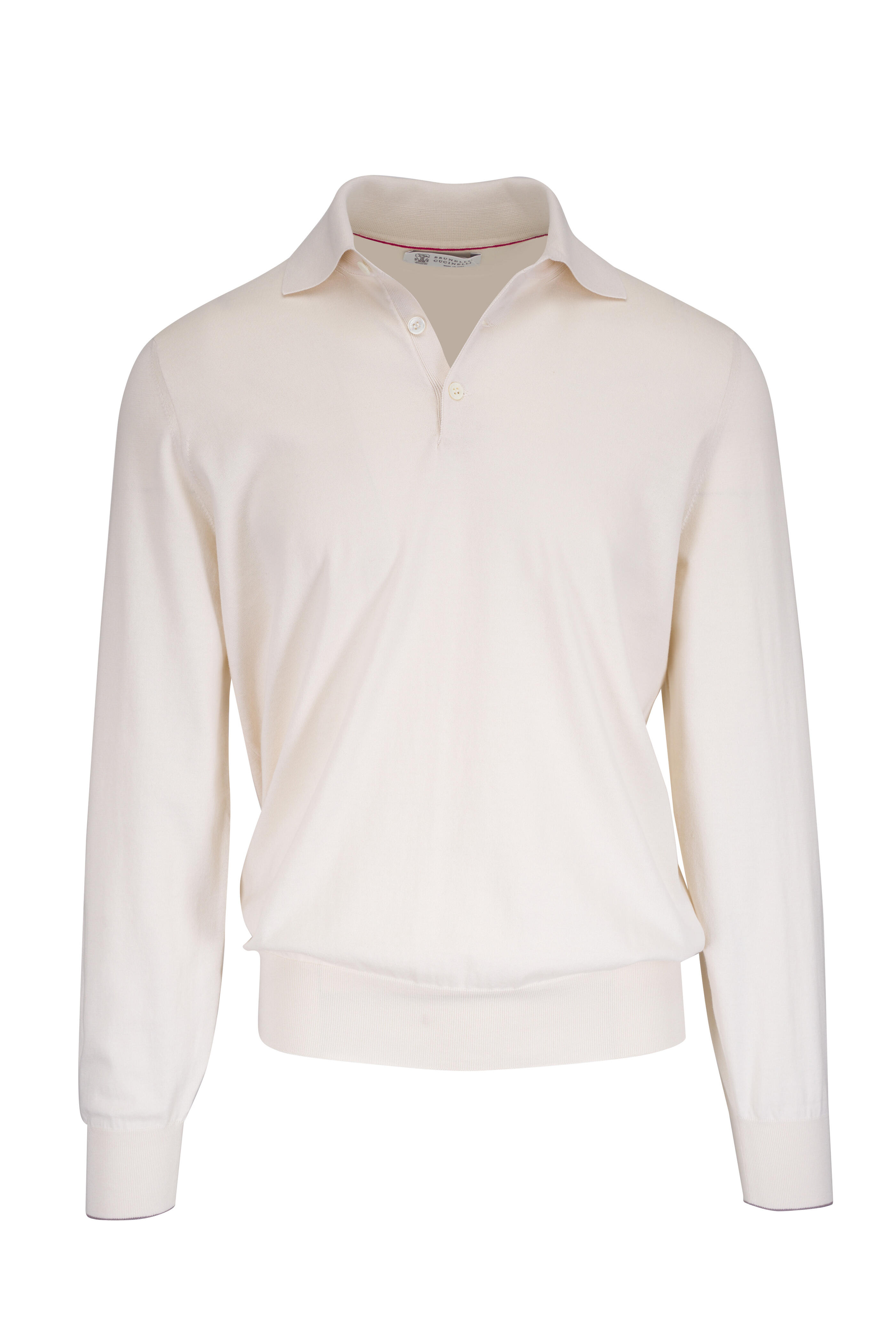 Off White Cotton Long Sleeve Polo