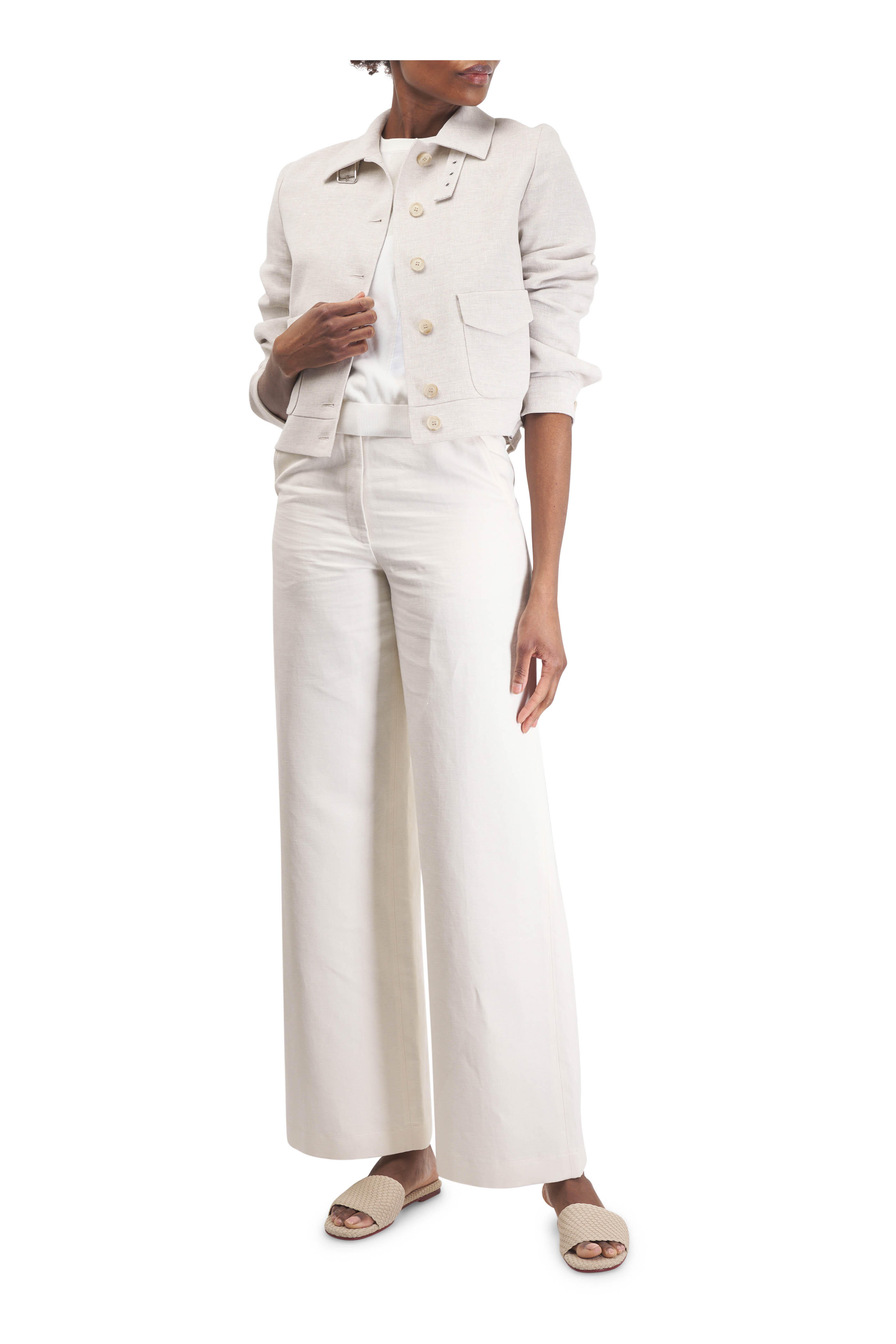 Crew neckline. Ribbed knit trim. Fabric from Italy. Approximately 21" shoulder to hem (measurements taken from size 6). 95% cotton, 5% polyamide. Dry clean.