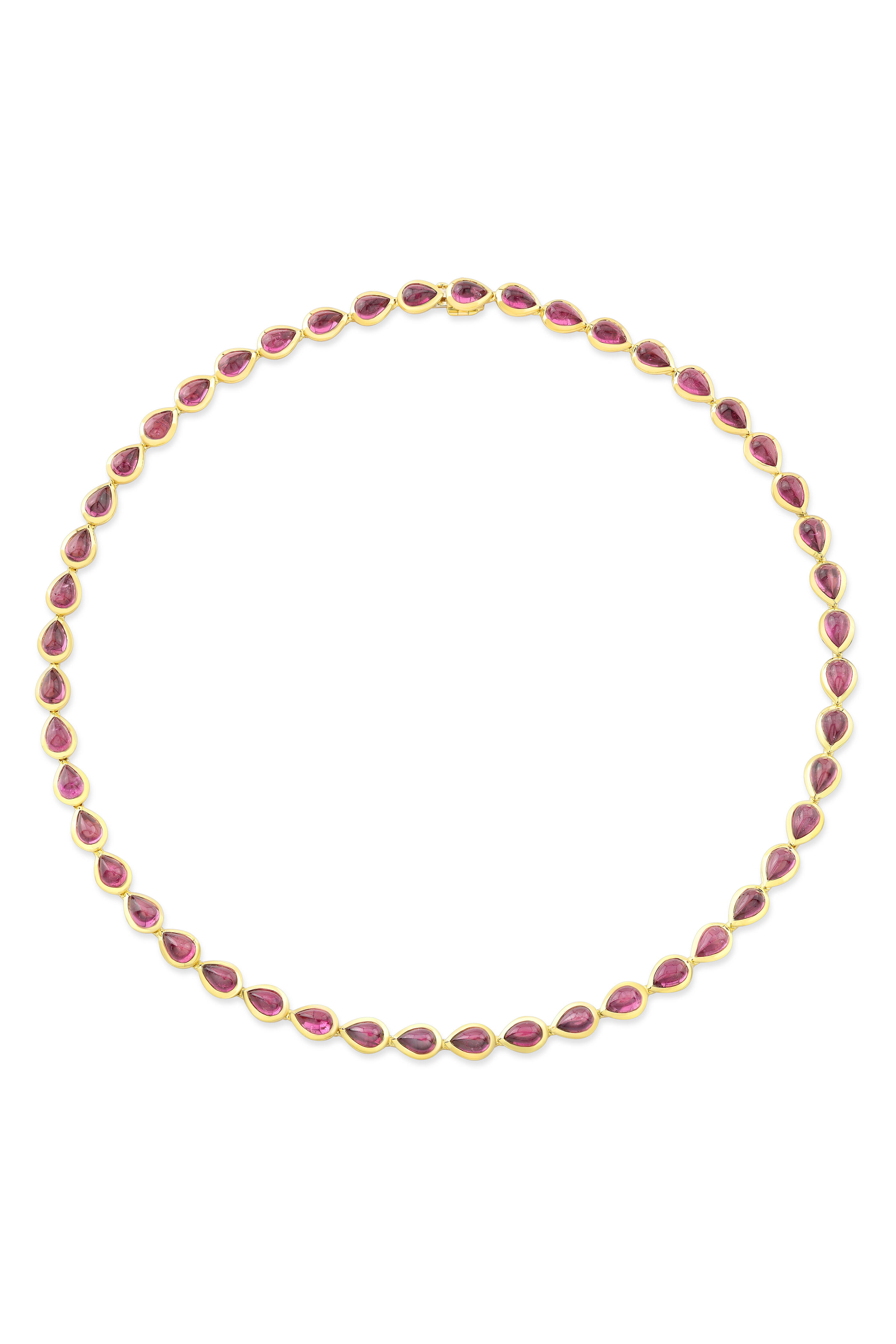 18k Yellow Gold Pink Tourmaline Bezel Necklace