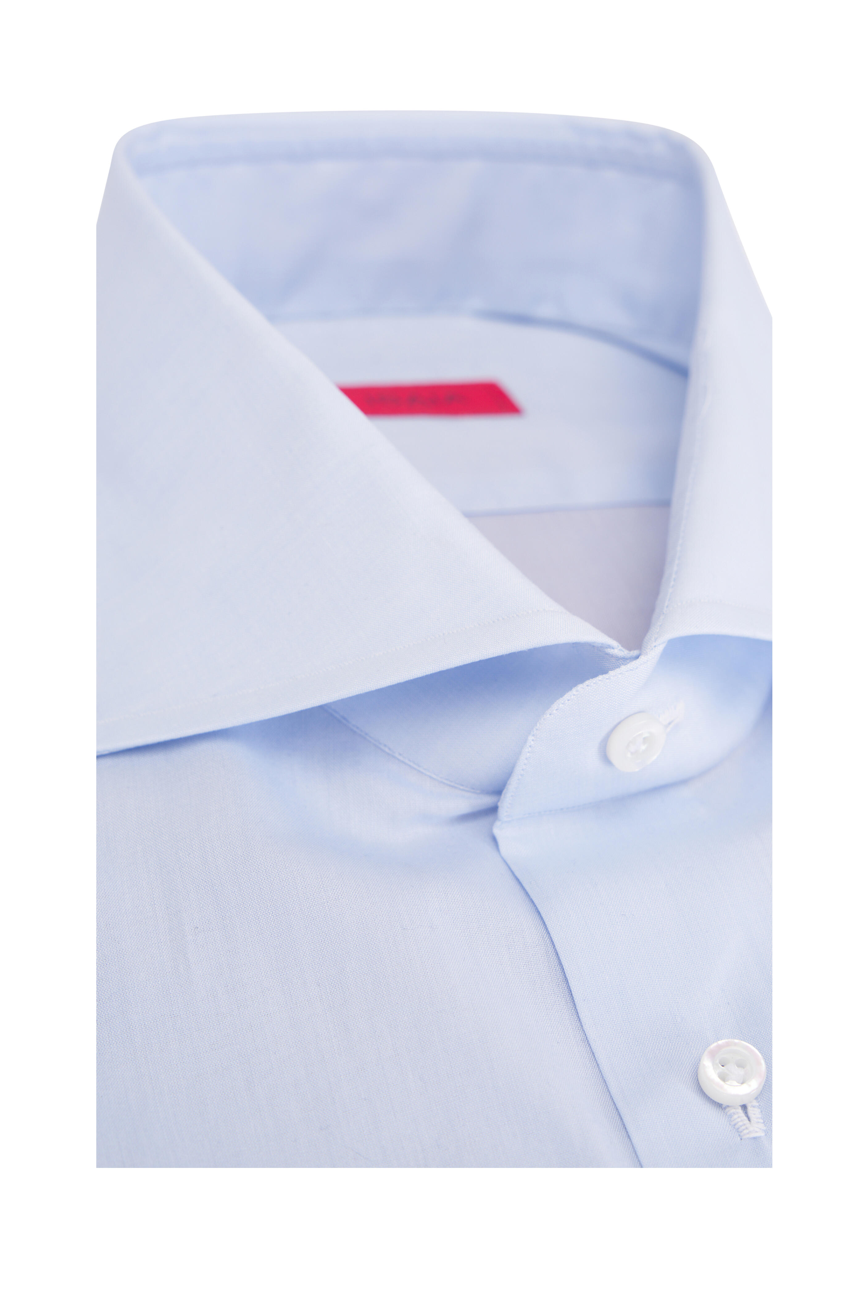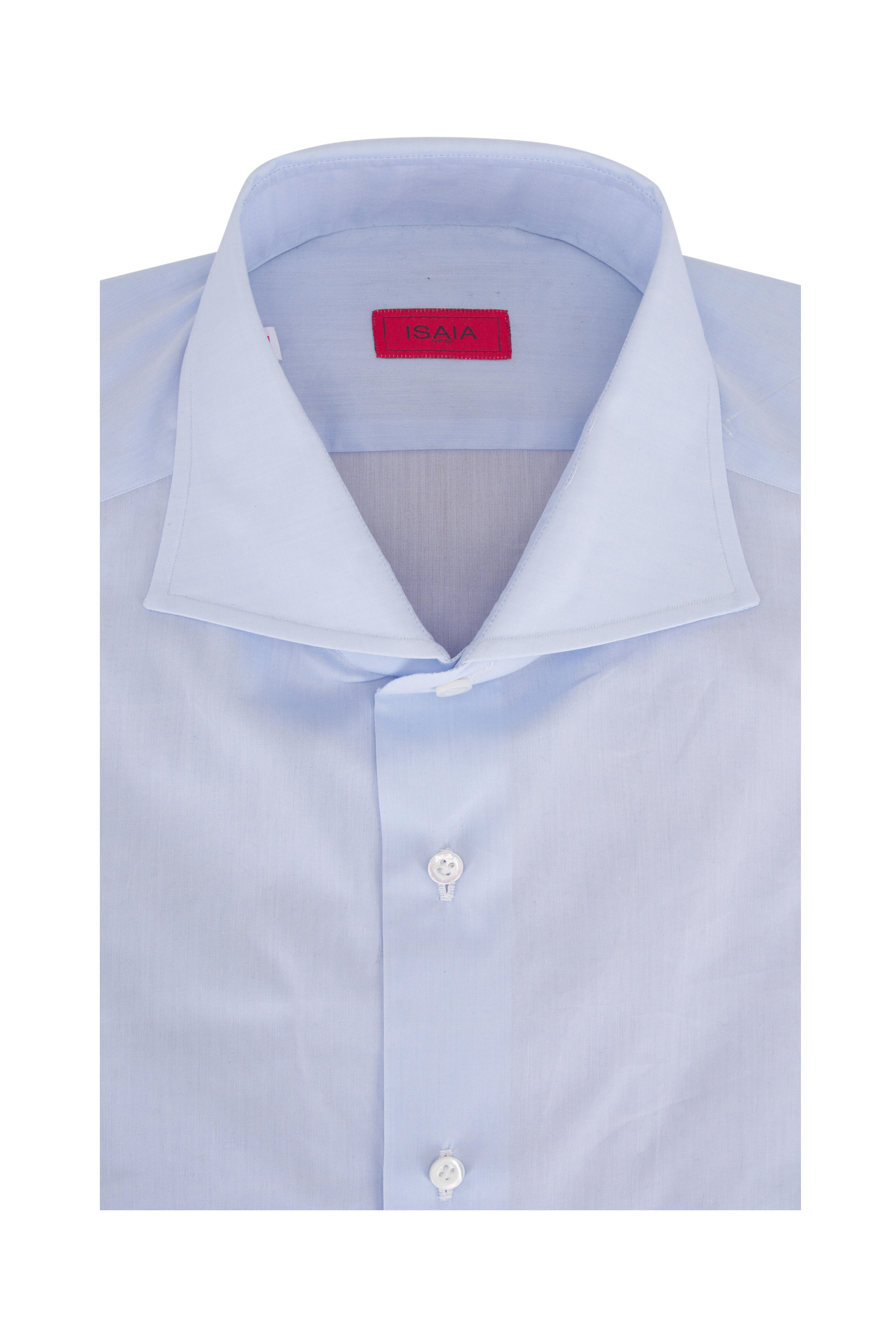 Spread collar. Front button placket. Single button mitered cuffs. Made in Italy. 100% cotton. Machine wash.