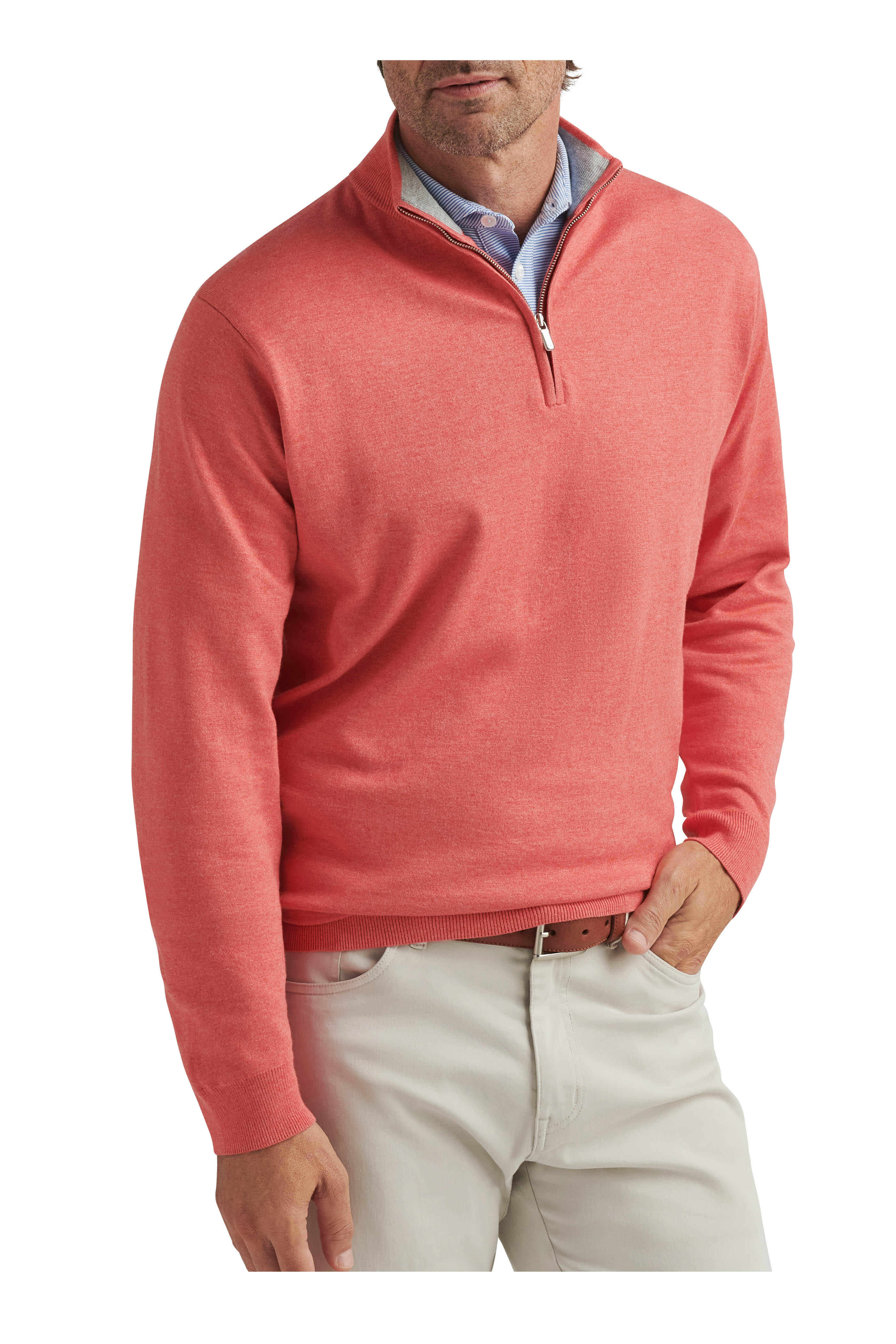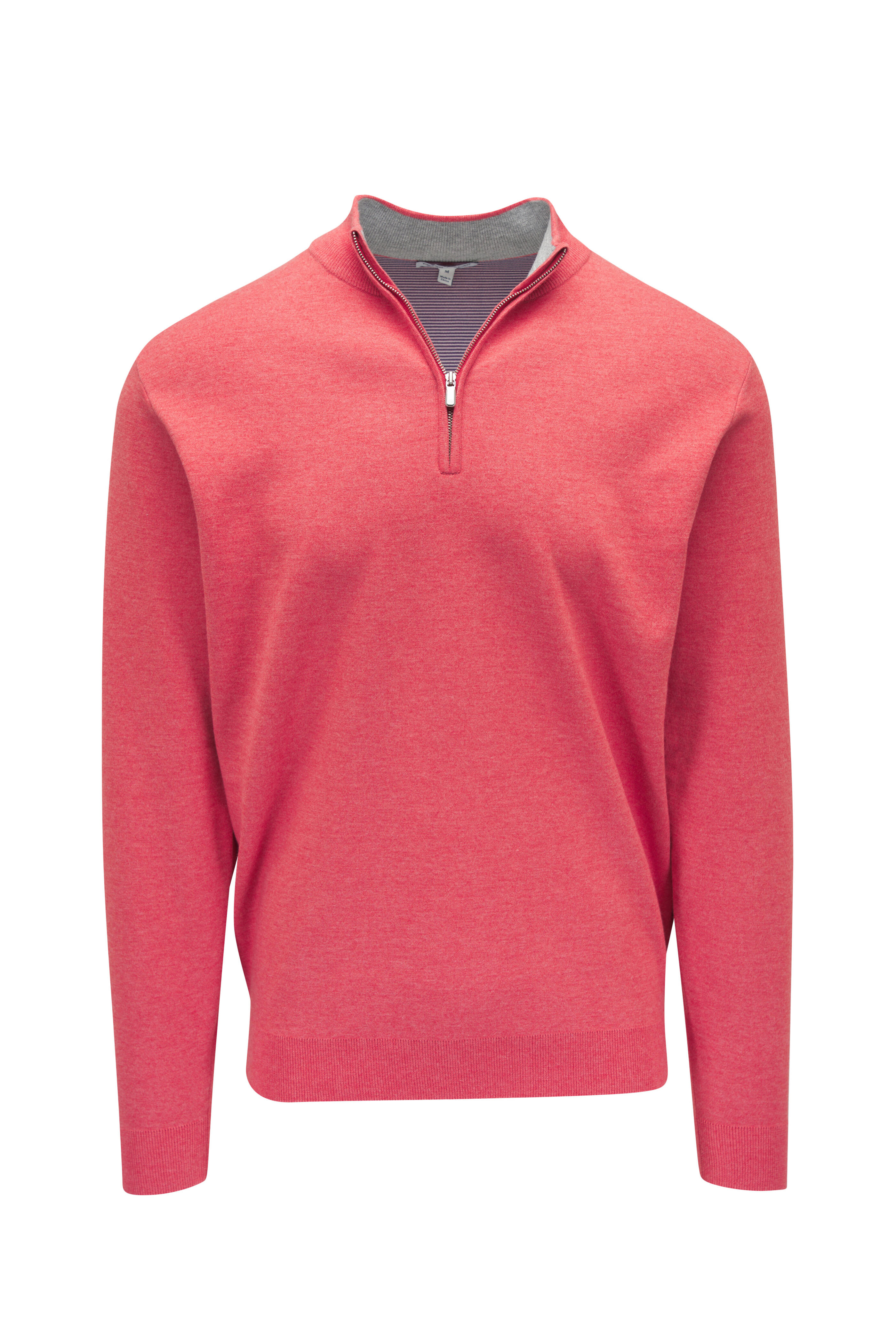 Mock neck. Quarter zip closure. Ribbed knit trims. Straight hem. Imported. 57% polyester, 40% cotton, 2% nylon, 1% spandex. Hand wash.