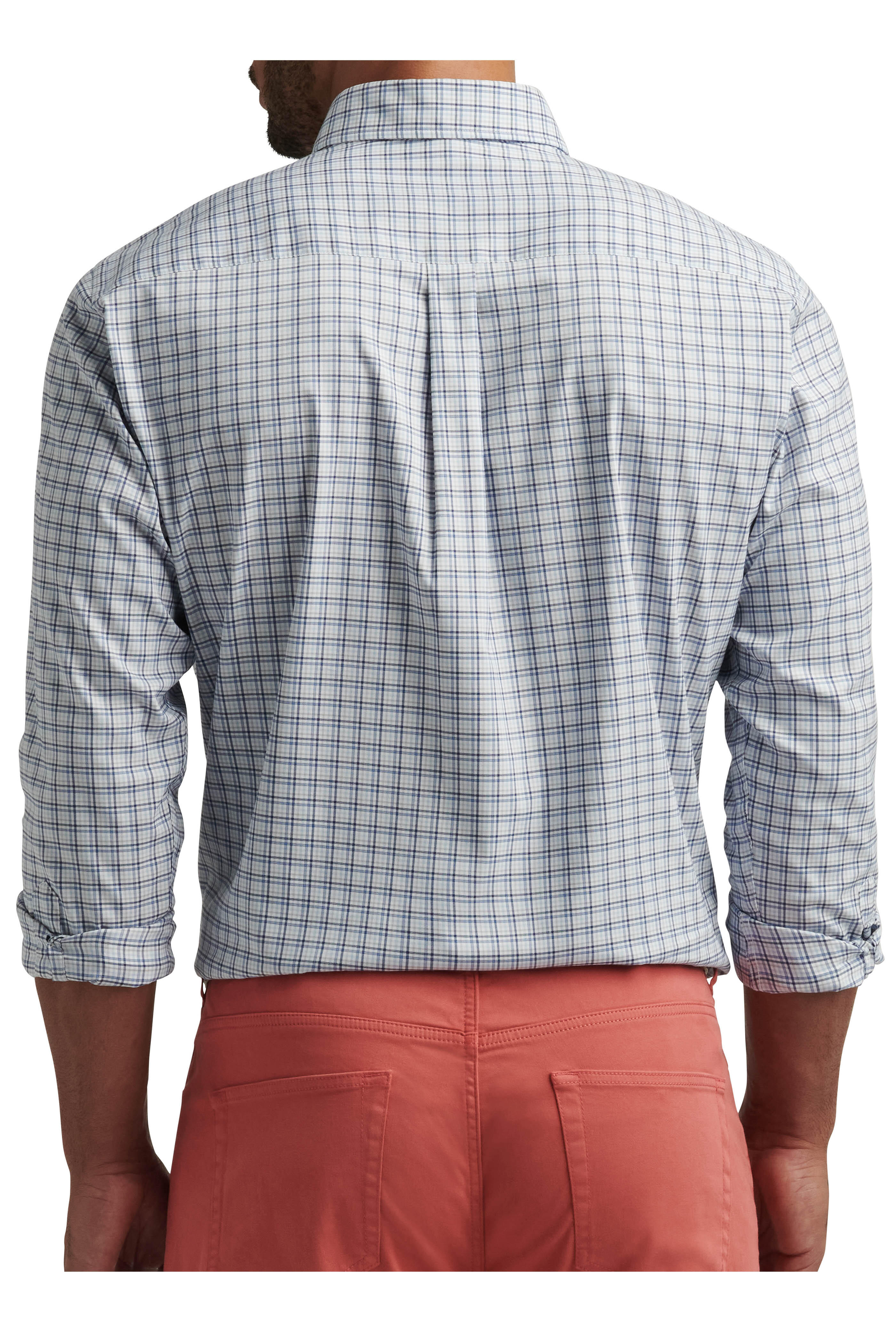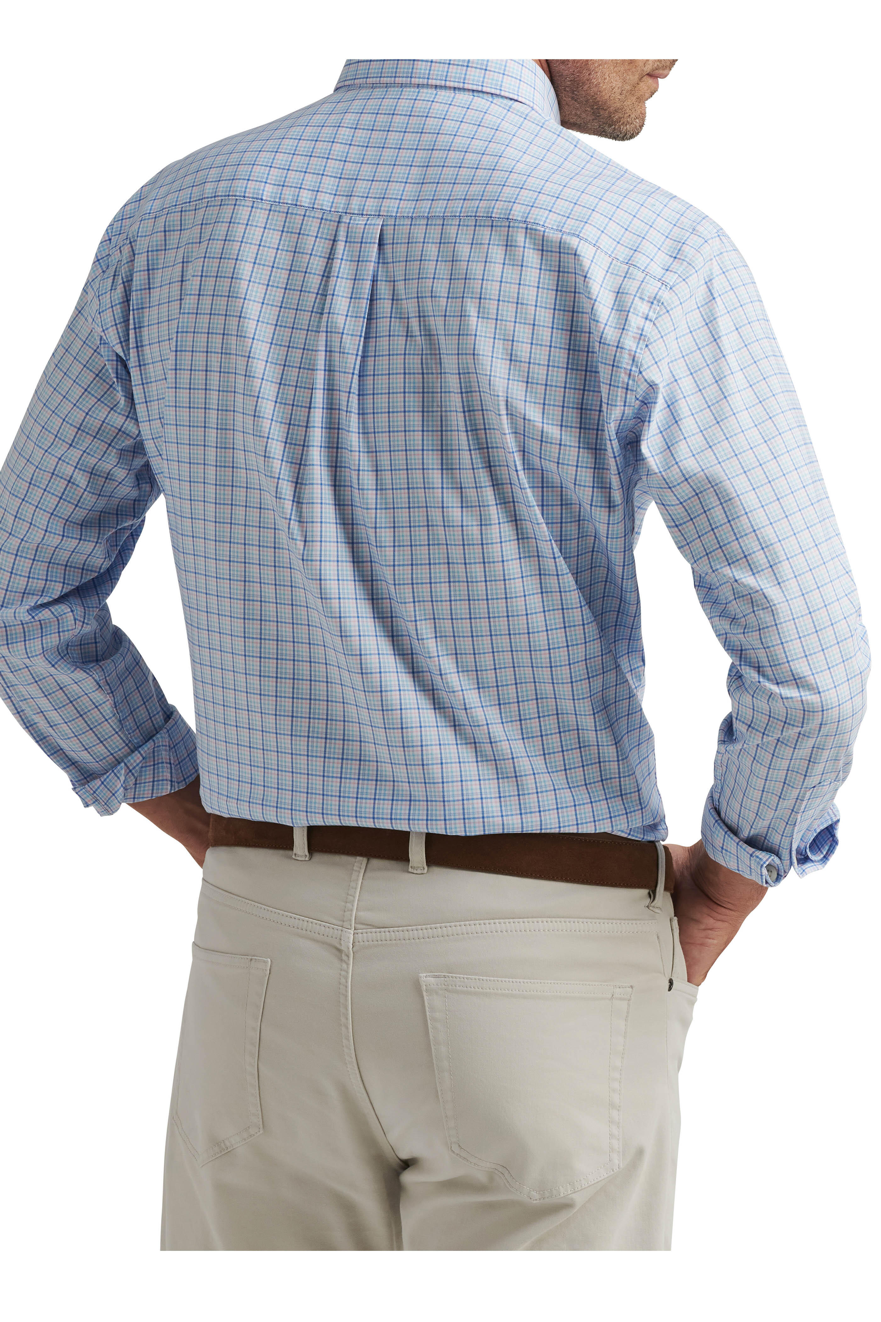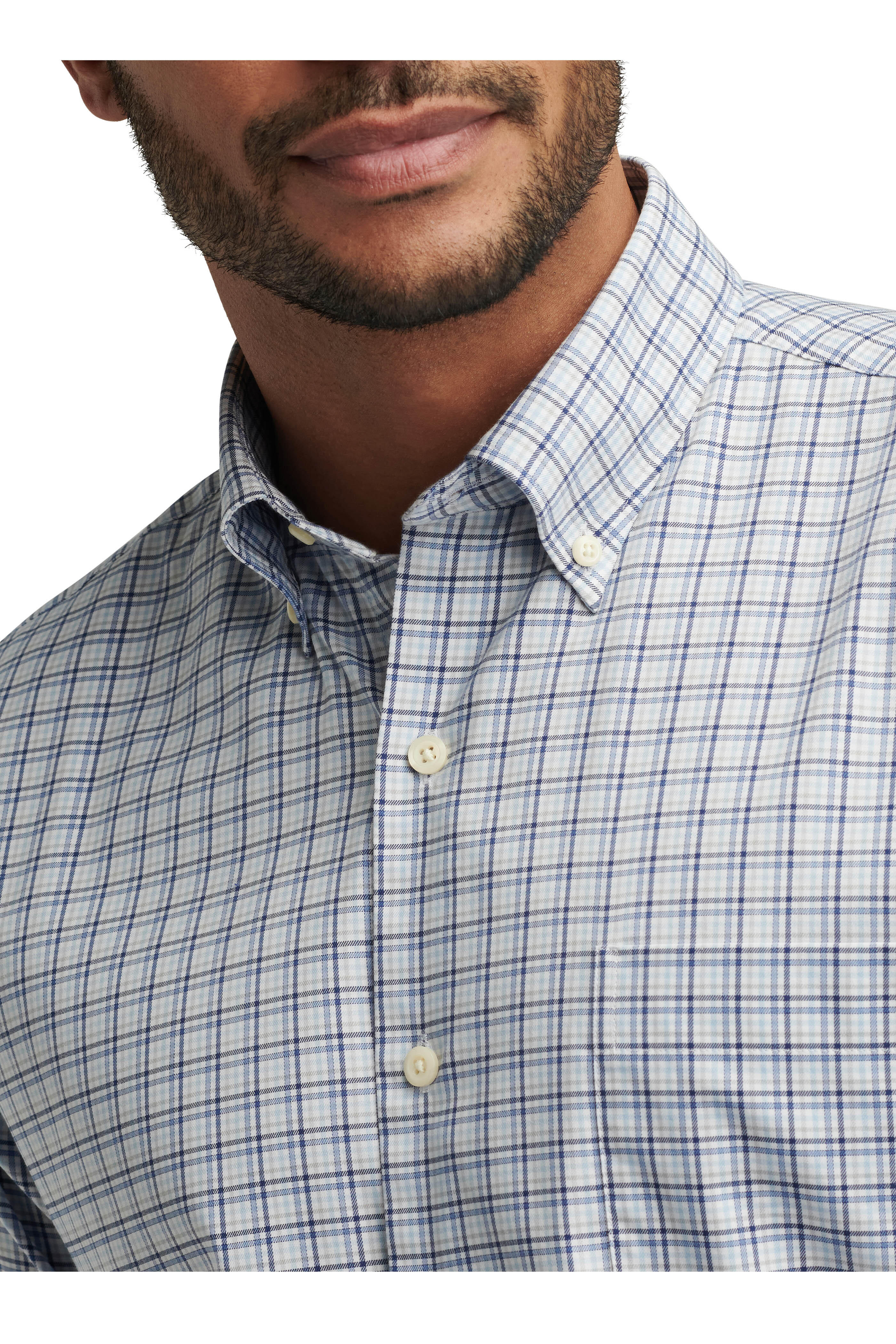 Pointed button-down collar. French front button placket. Chest patch pocket. Double button barrel cuffs. Imported. 42% cotton, 36% nylon, 17% lyocell, 5% spandex. Machine wash.