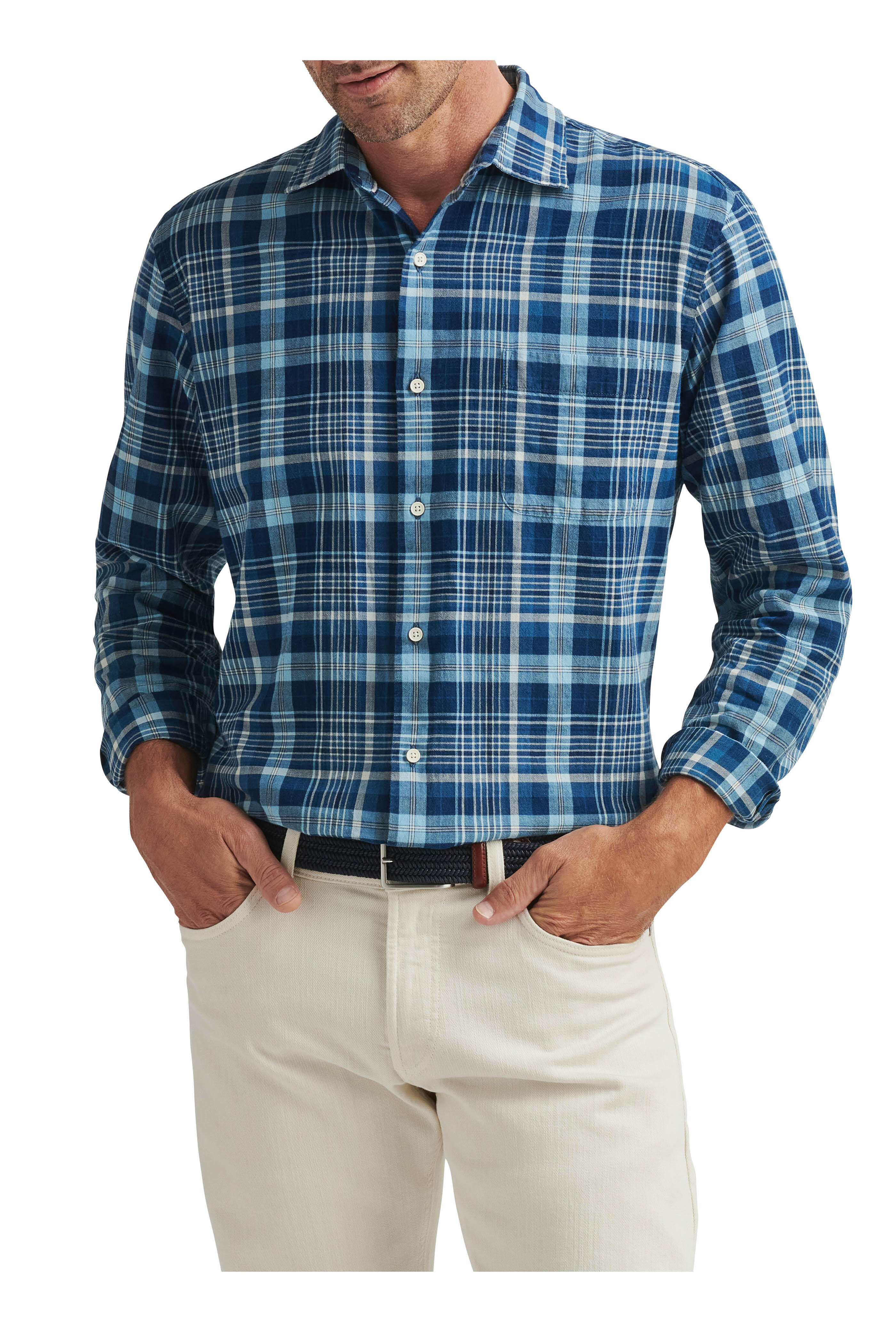 Spread collar. French front button placket. Chest patch pocket. Double button barrel cuffs. Imported. 100% cotton. Machine wash.