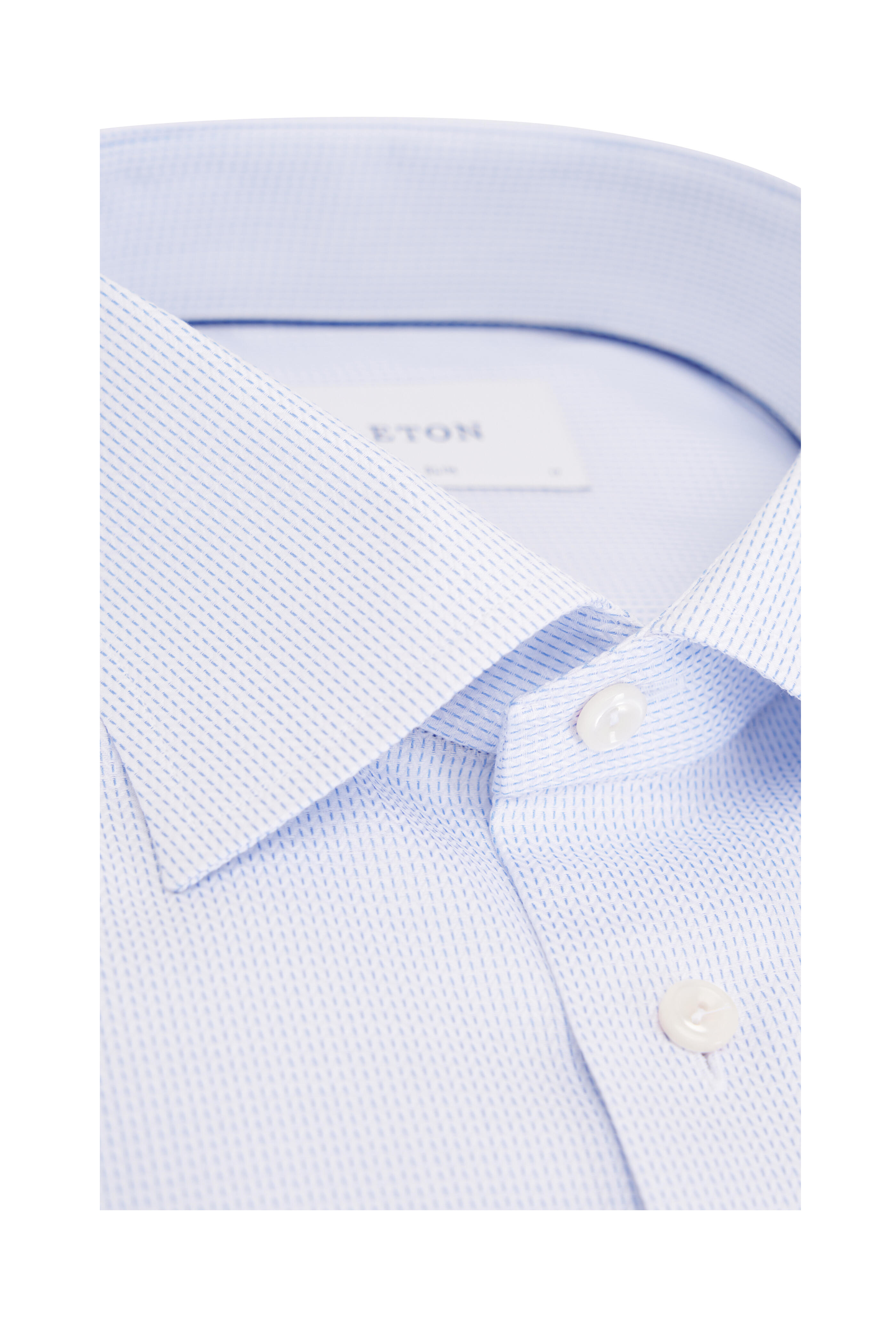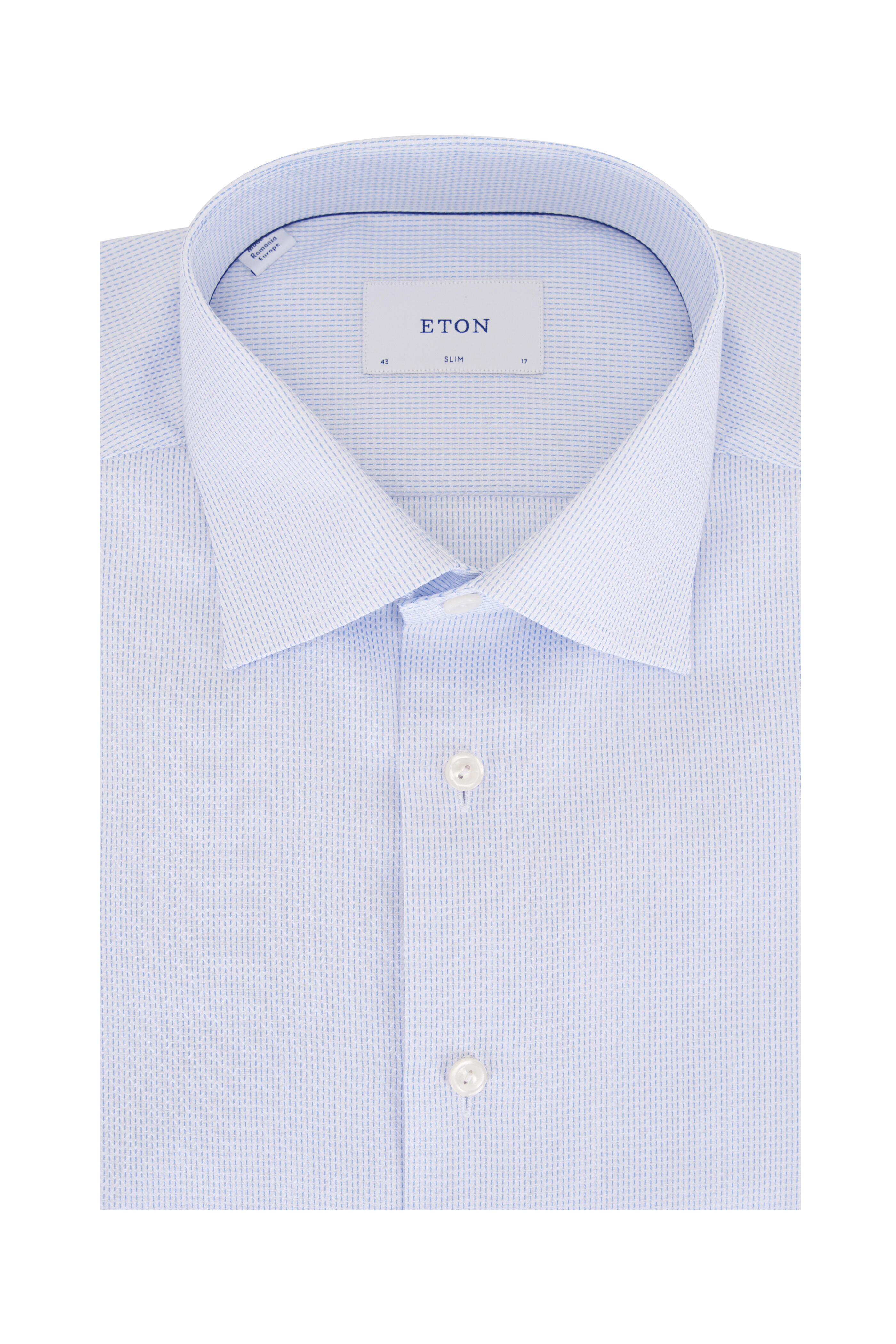 Spread collar. French placket. Single button mitered cuffs. Imported. Slim fit. 100% cotton. Machine wash.