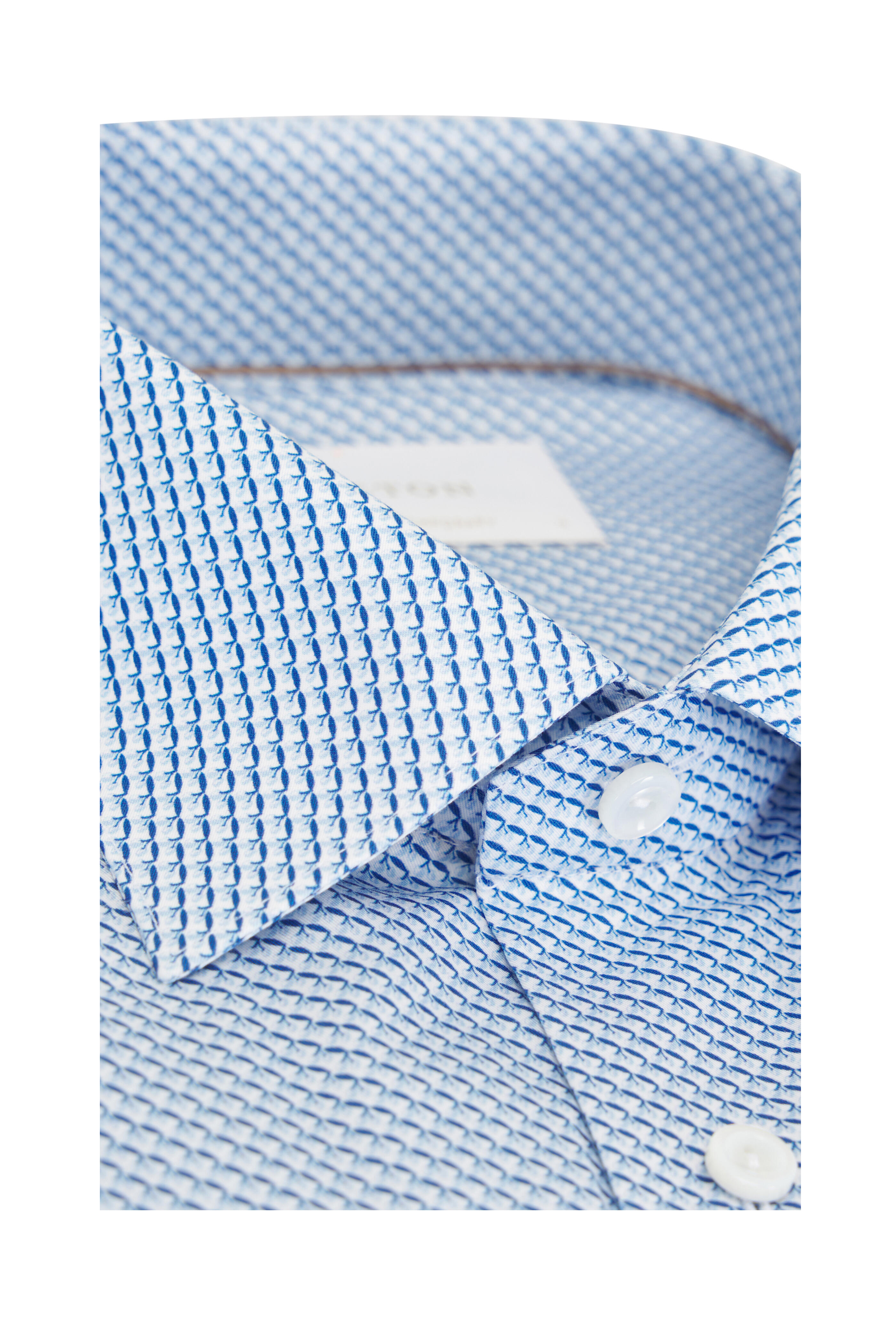 Light Blue Micro Olive Print Cotton Dress Shirt