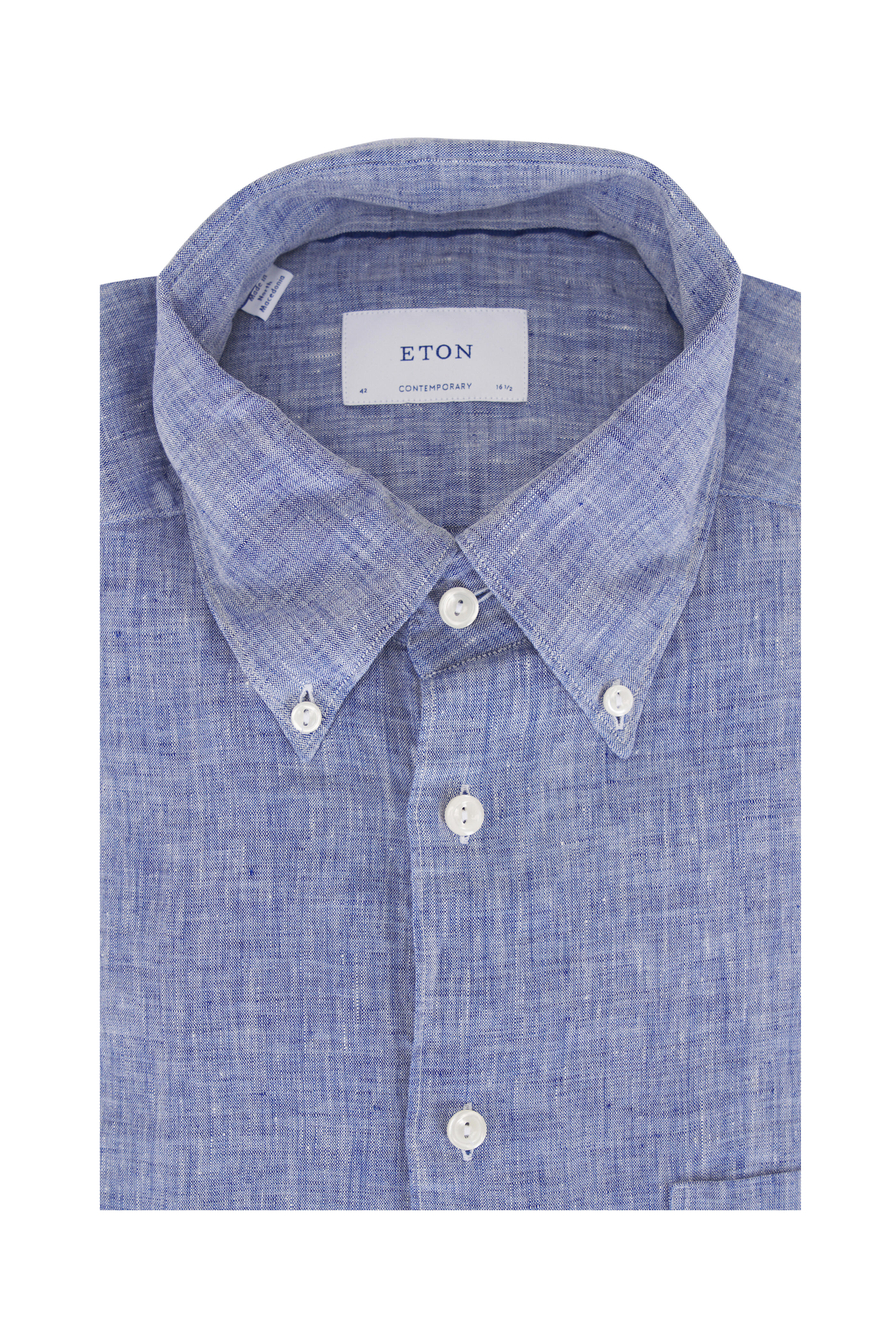 Button-down collar. French front button placket. Chest patch pocket. Single button barrel cuffs. Imported. Contemporary fit. 100% linen. Machine wash.