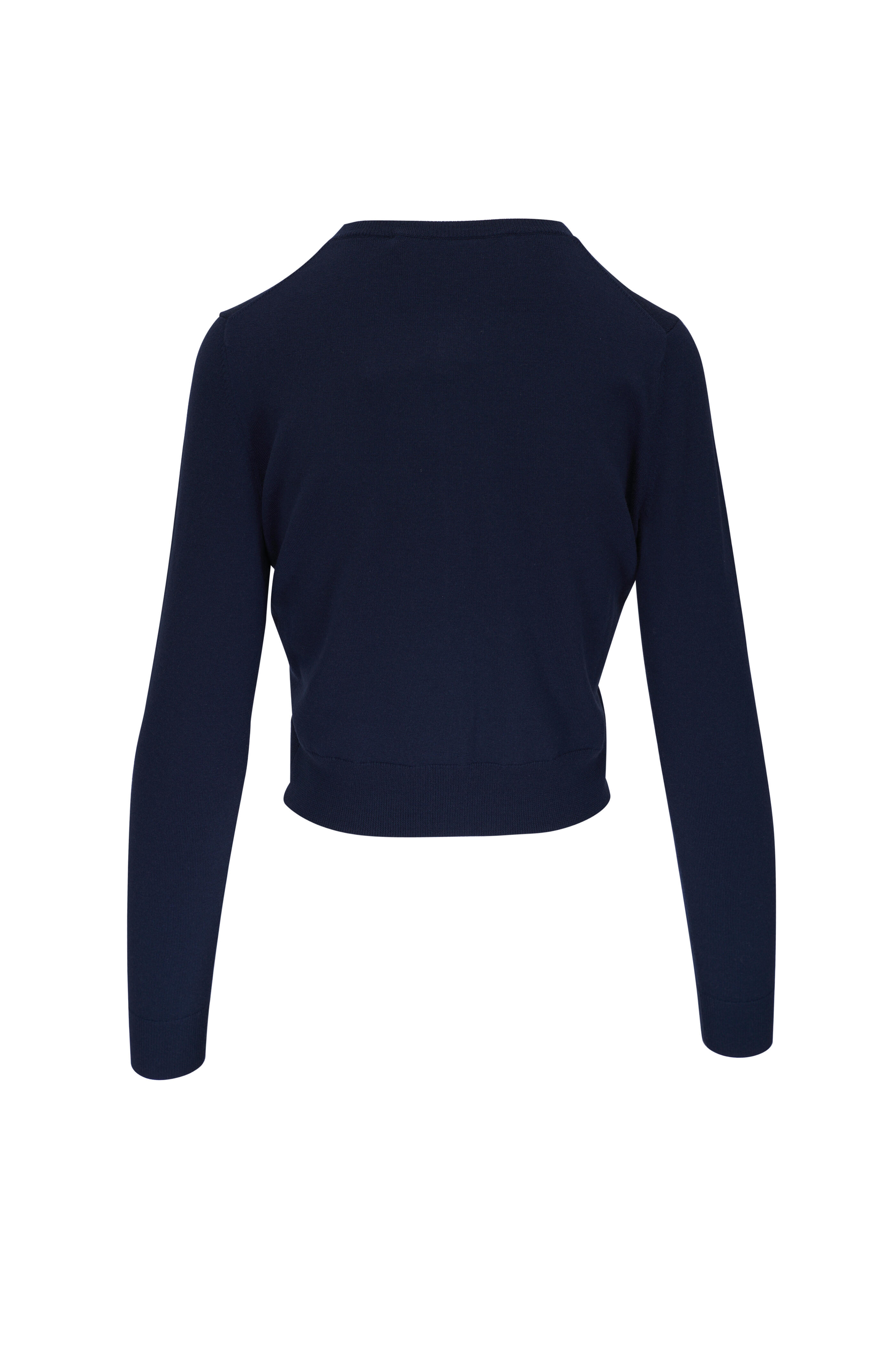 Navy Fine Merino Wool Crewneck Cardigan