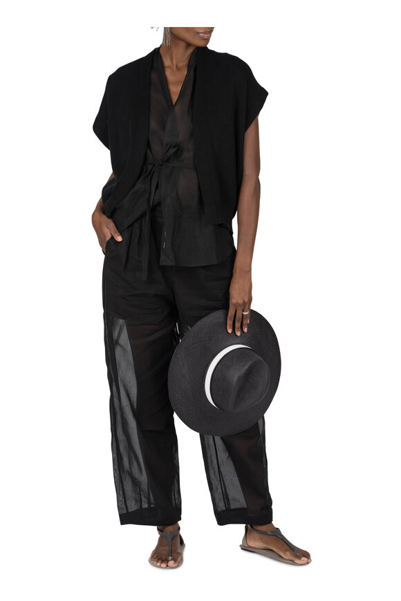 Open front. Self-tie waist closure. Drop shoulders. Ribbed knit trim. Monili detailing. Made in Italy. 100% cotton; lined. Hand wash.