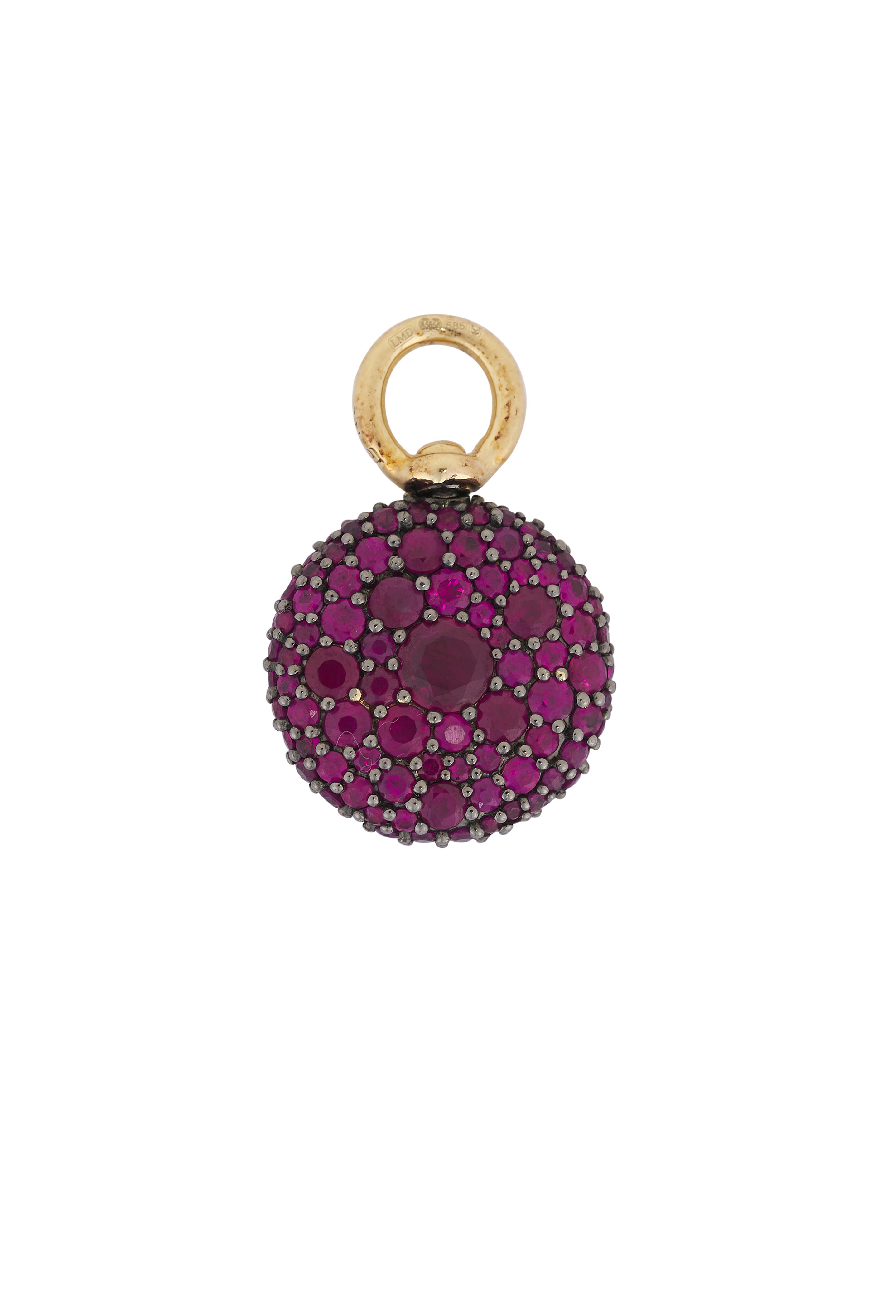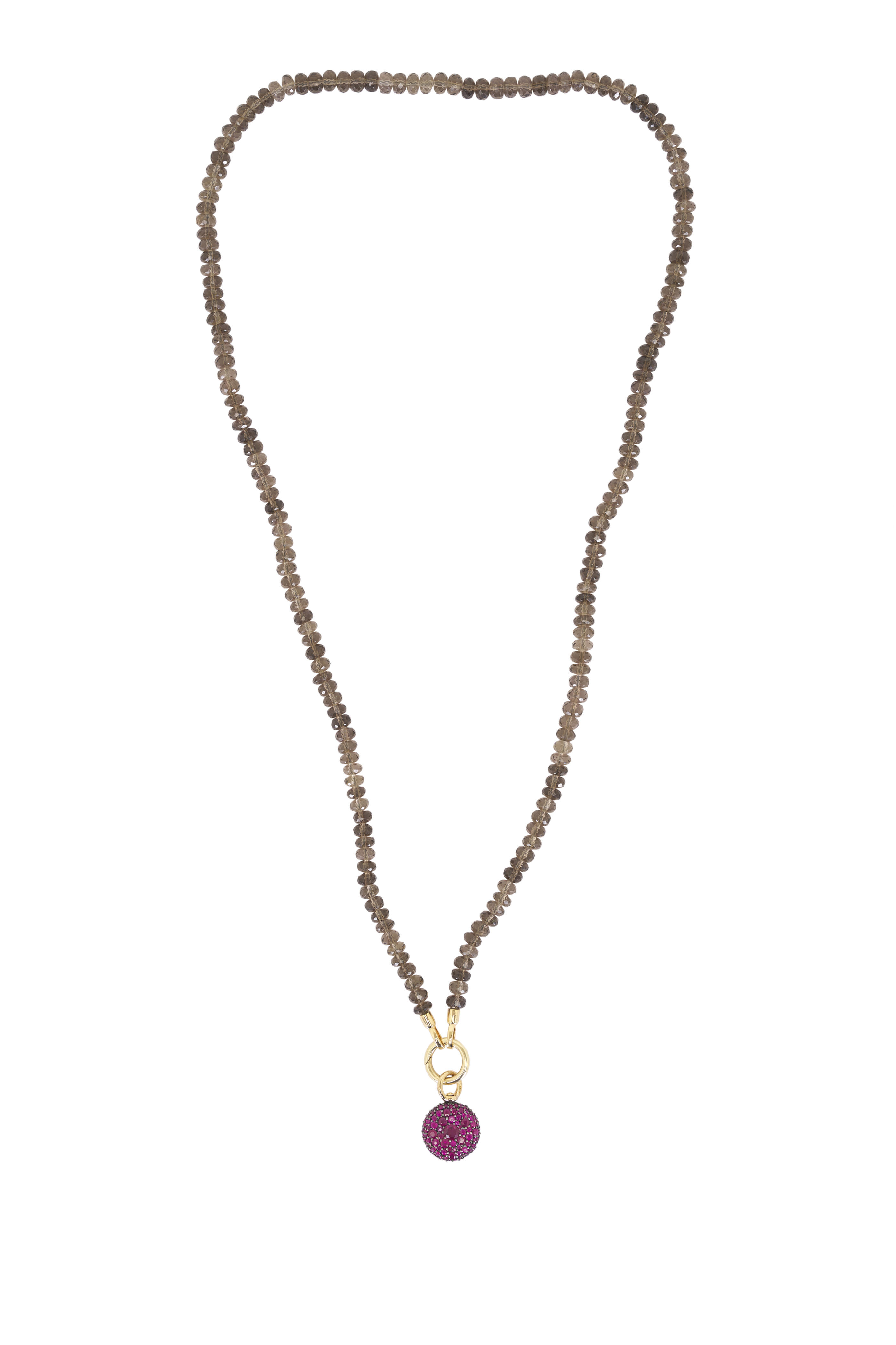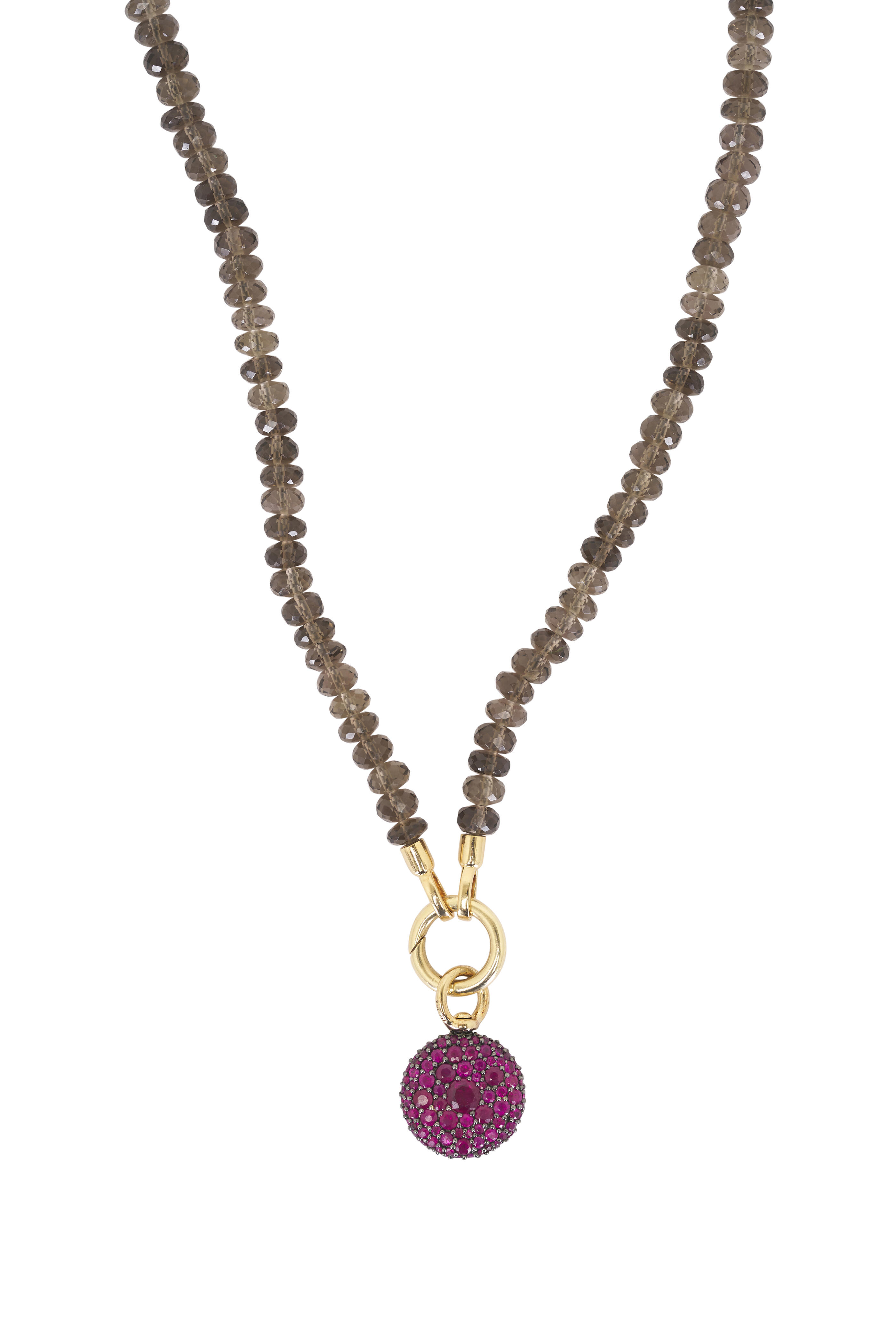 14k Yellow Gold. Smoky Quartz Beads. Pave Ruby. *necklace sold separately. 5 mm.