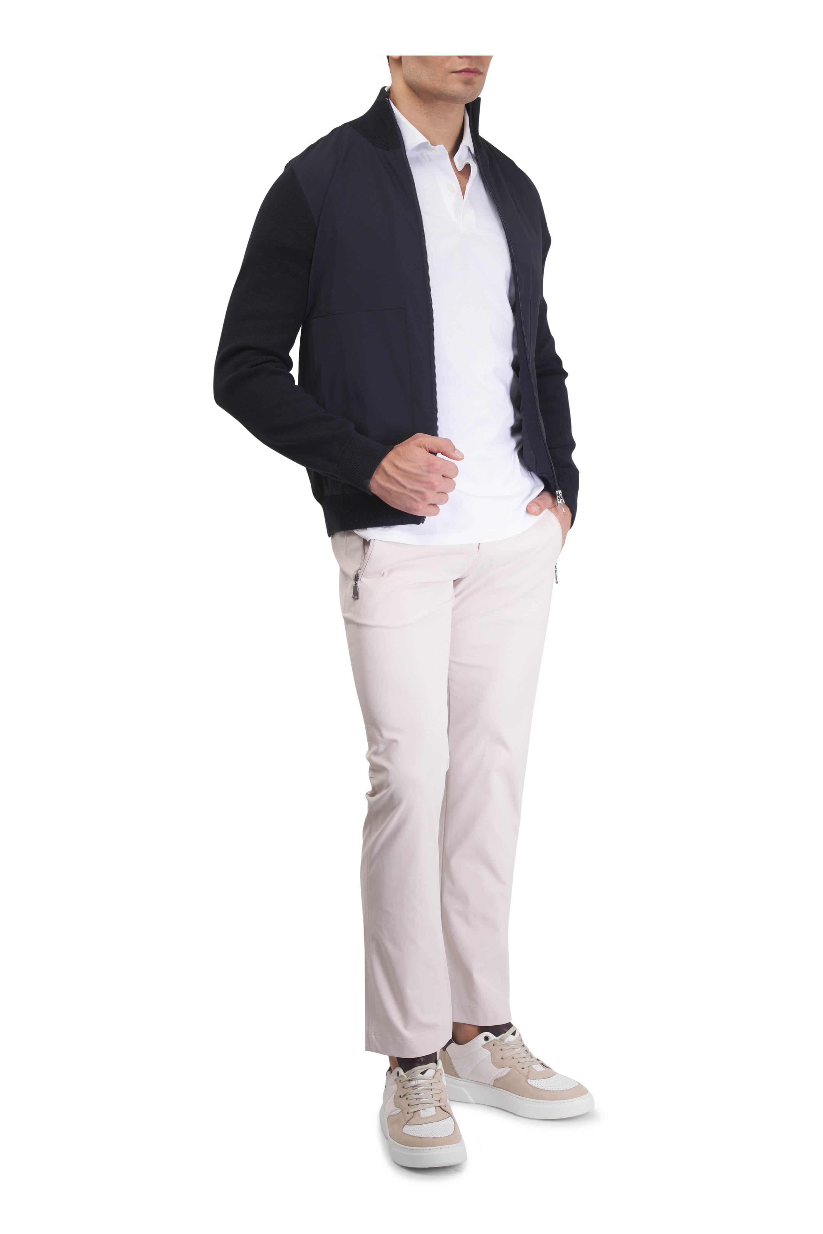 White Stretch Cotton Knit Polo