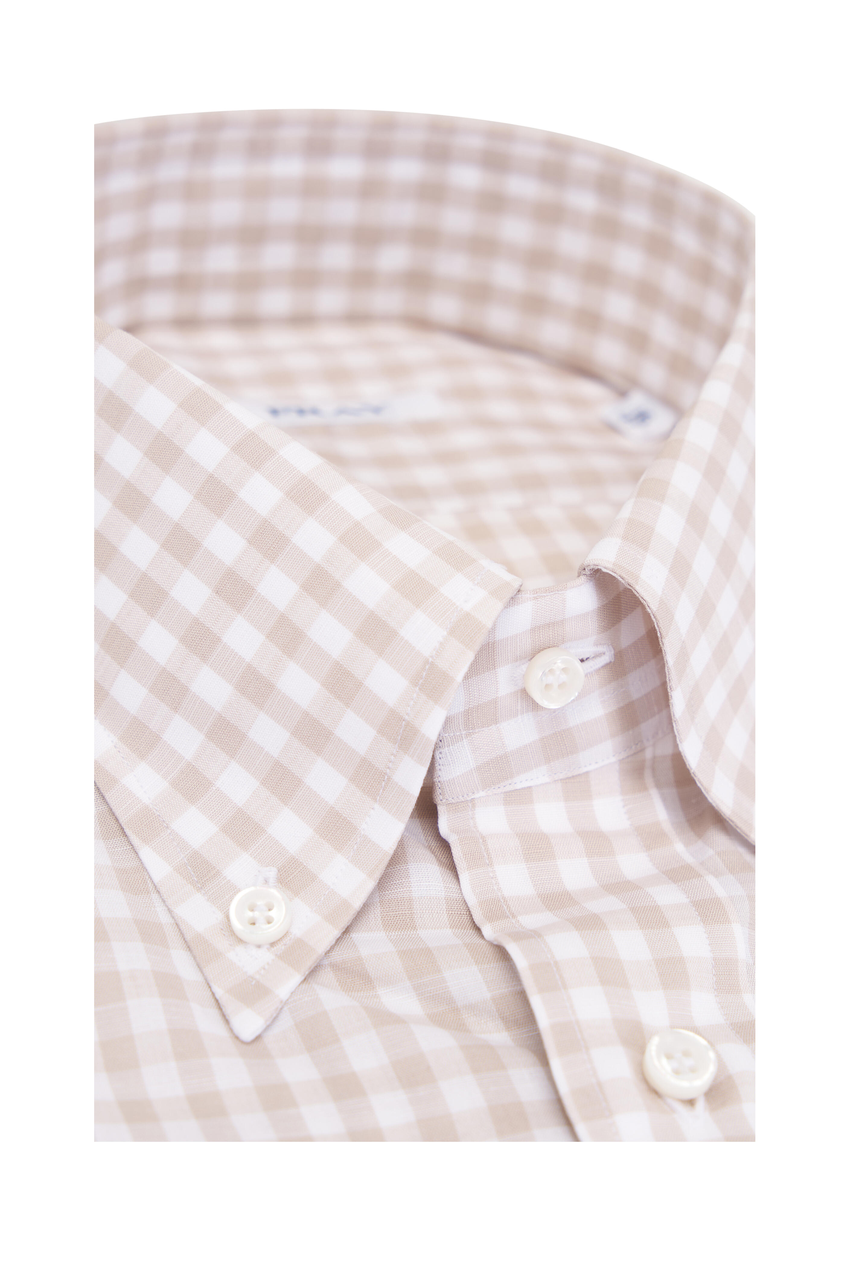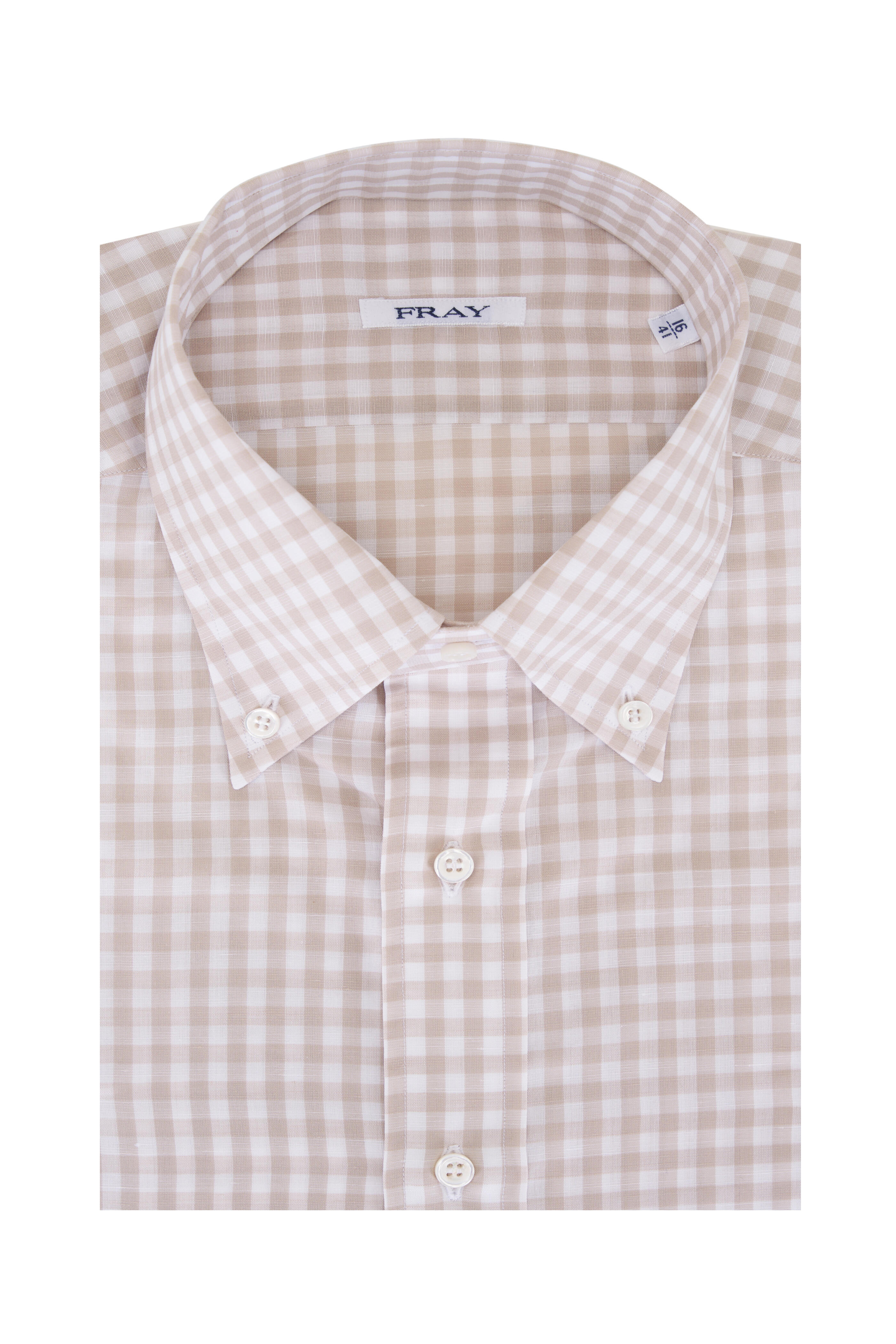 Tan Gingham Plaid Cotton & Linen Dress Shirt