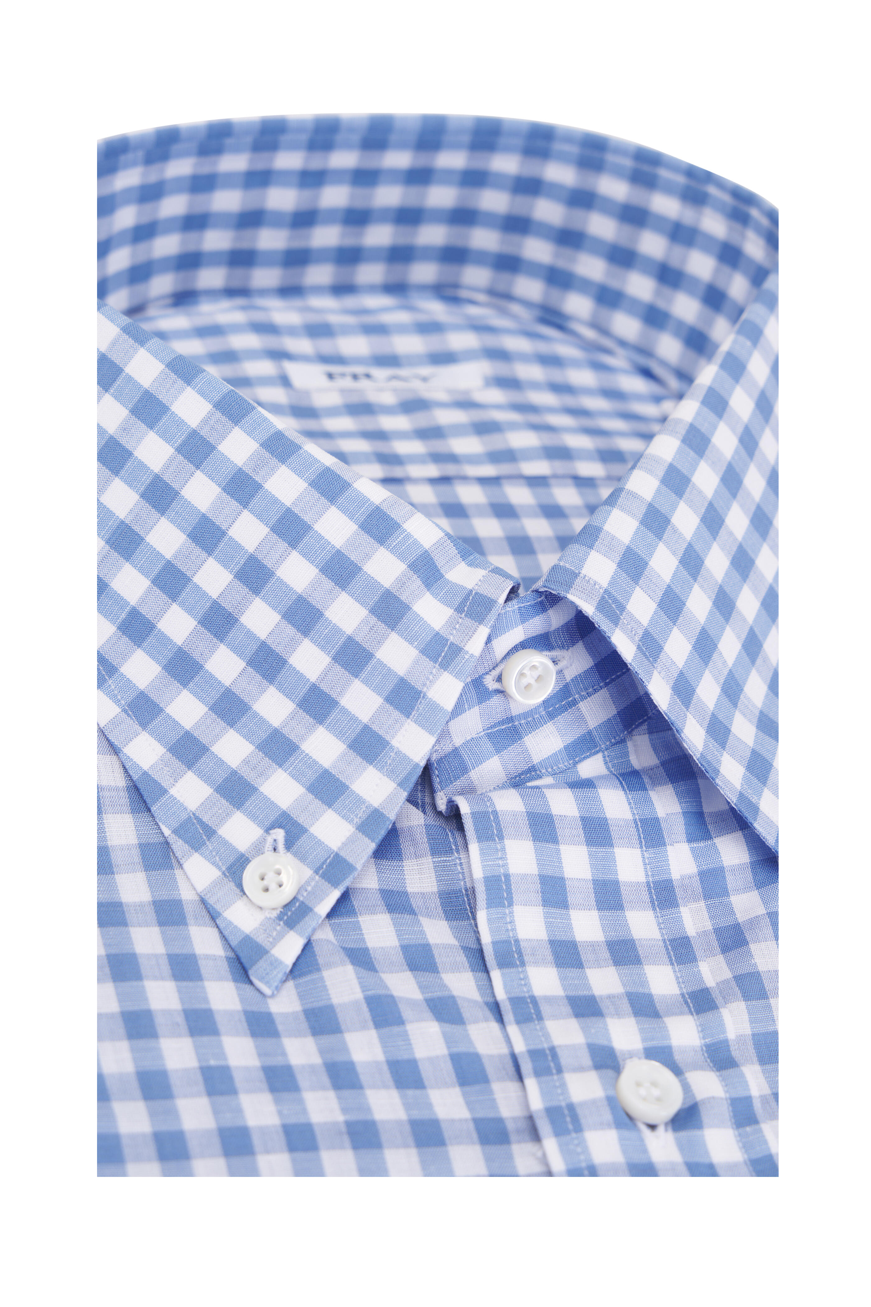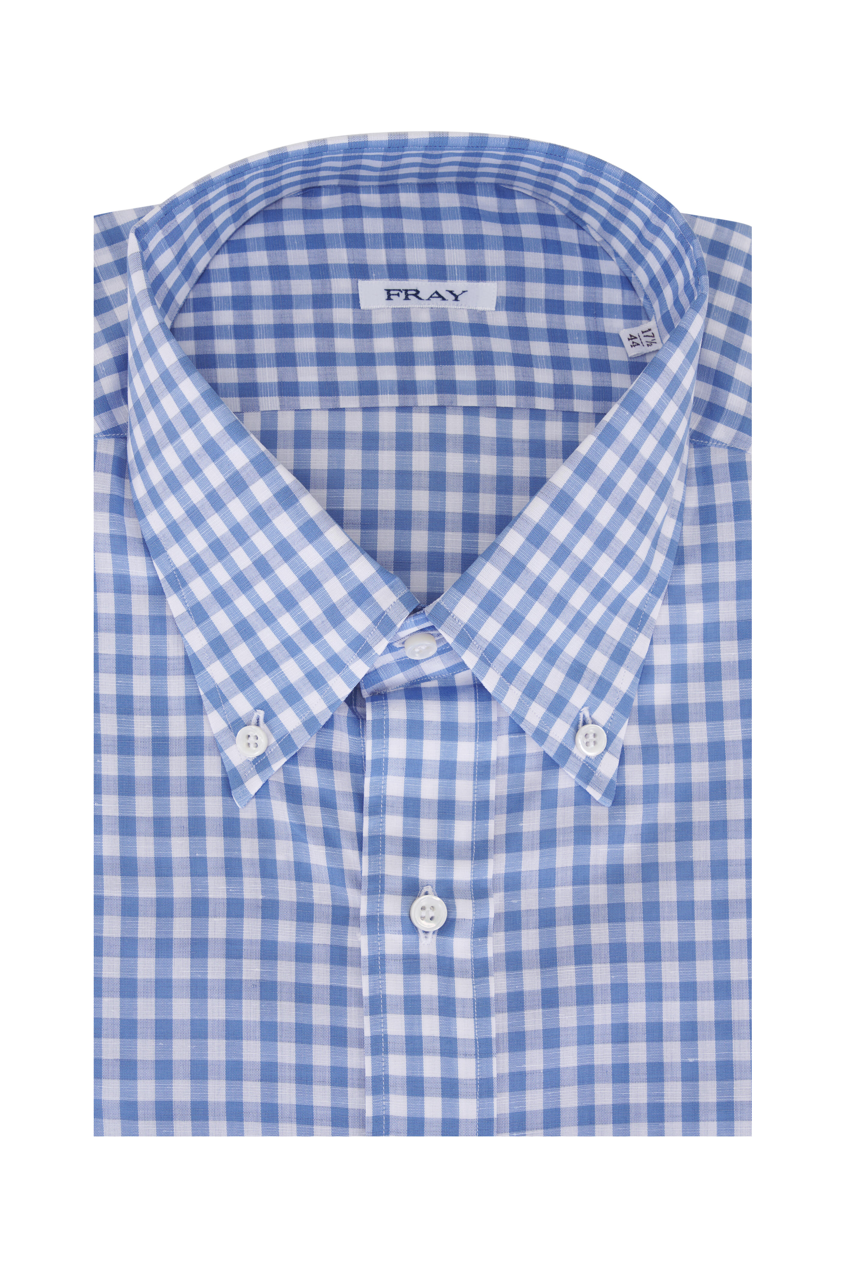 Blue Gingham Plaid Cotton & Linen Dress Shirt