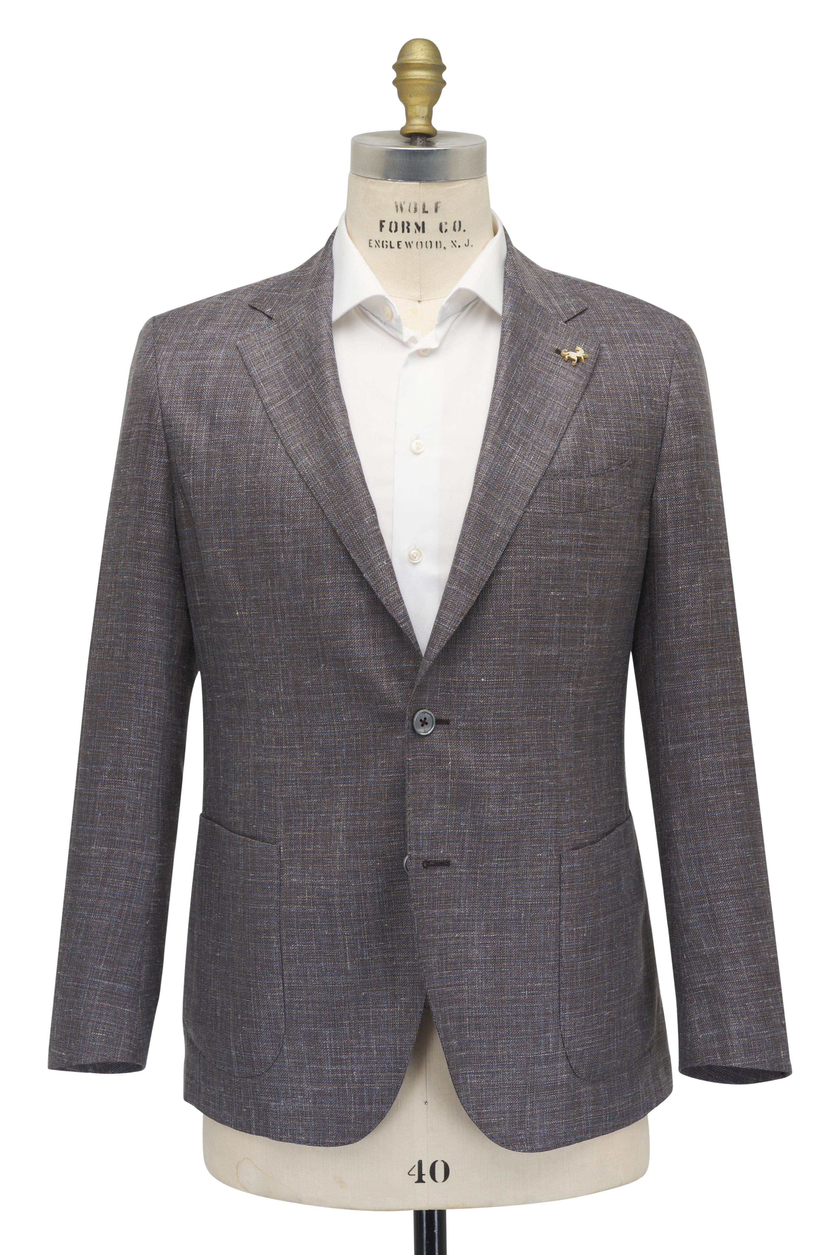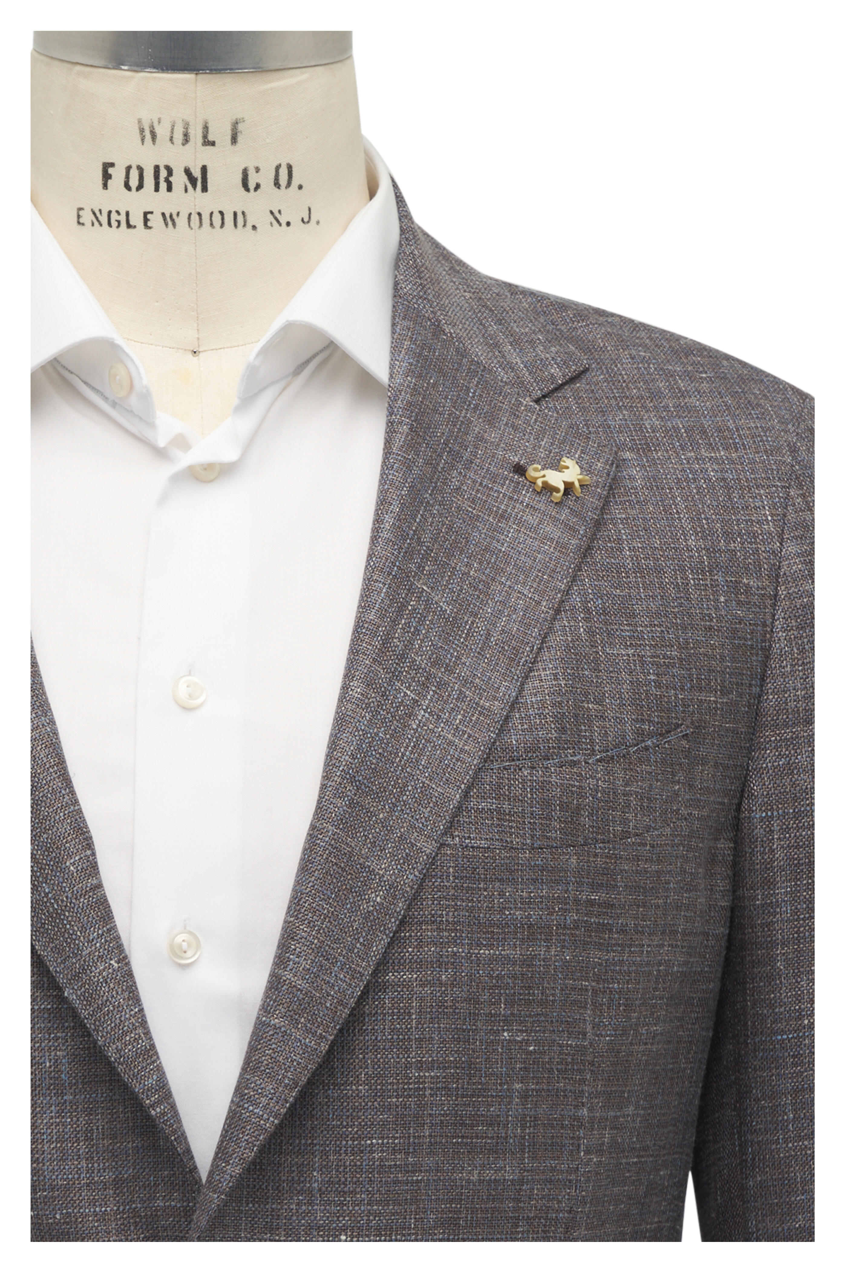 Brown Plaid Wool, Silk & Linen Sportcoat
