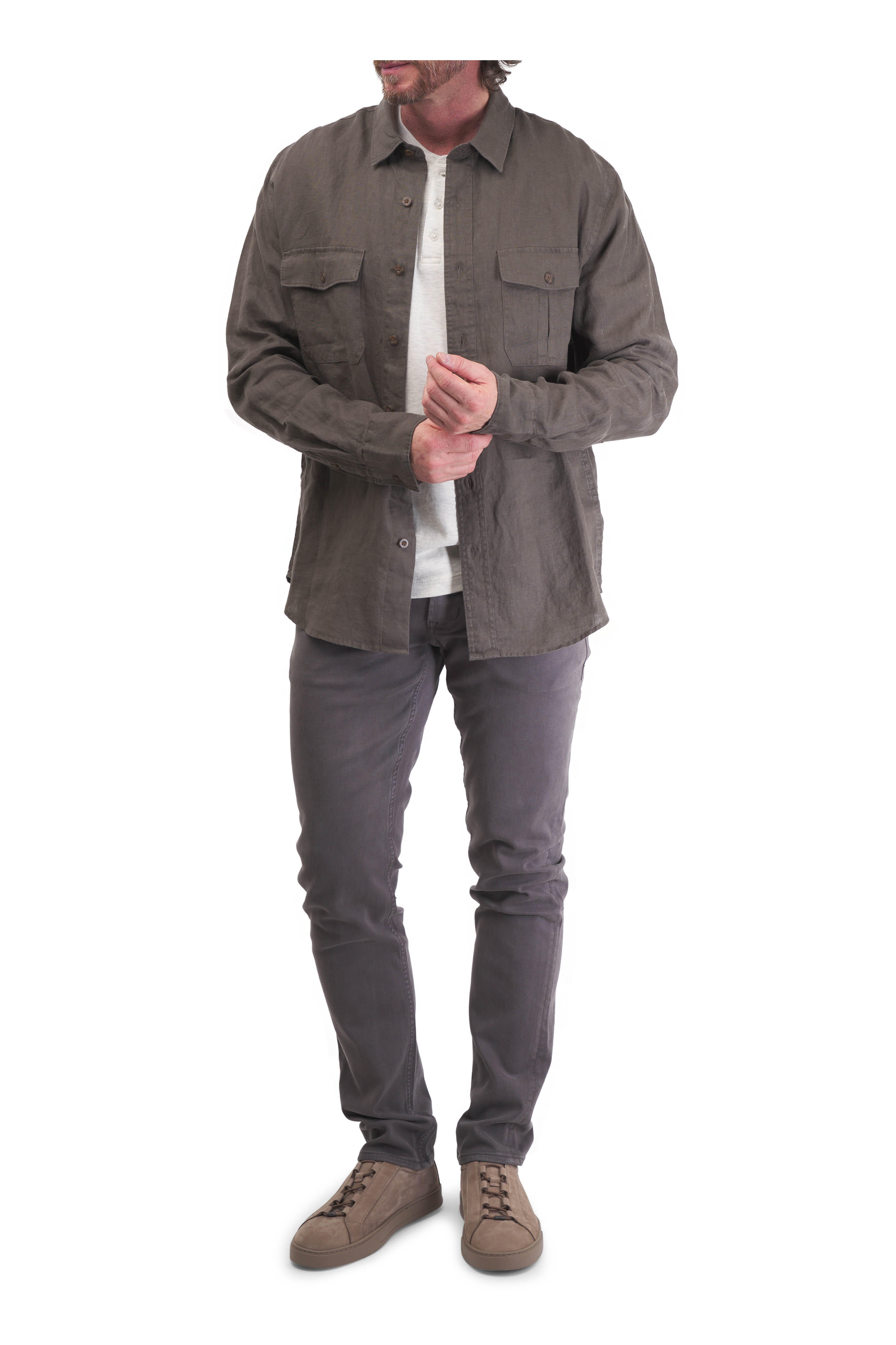 Zip fly with button closure. Banded waistband; belt loops. Five pocket styling. Imported. Inseam 34". 58% cotton, 18% lyocell, 17% modal, 6% elasterall-p. Machine wash.