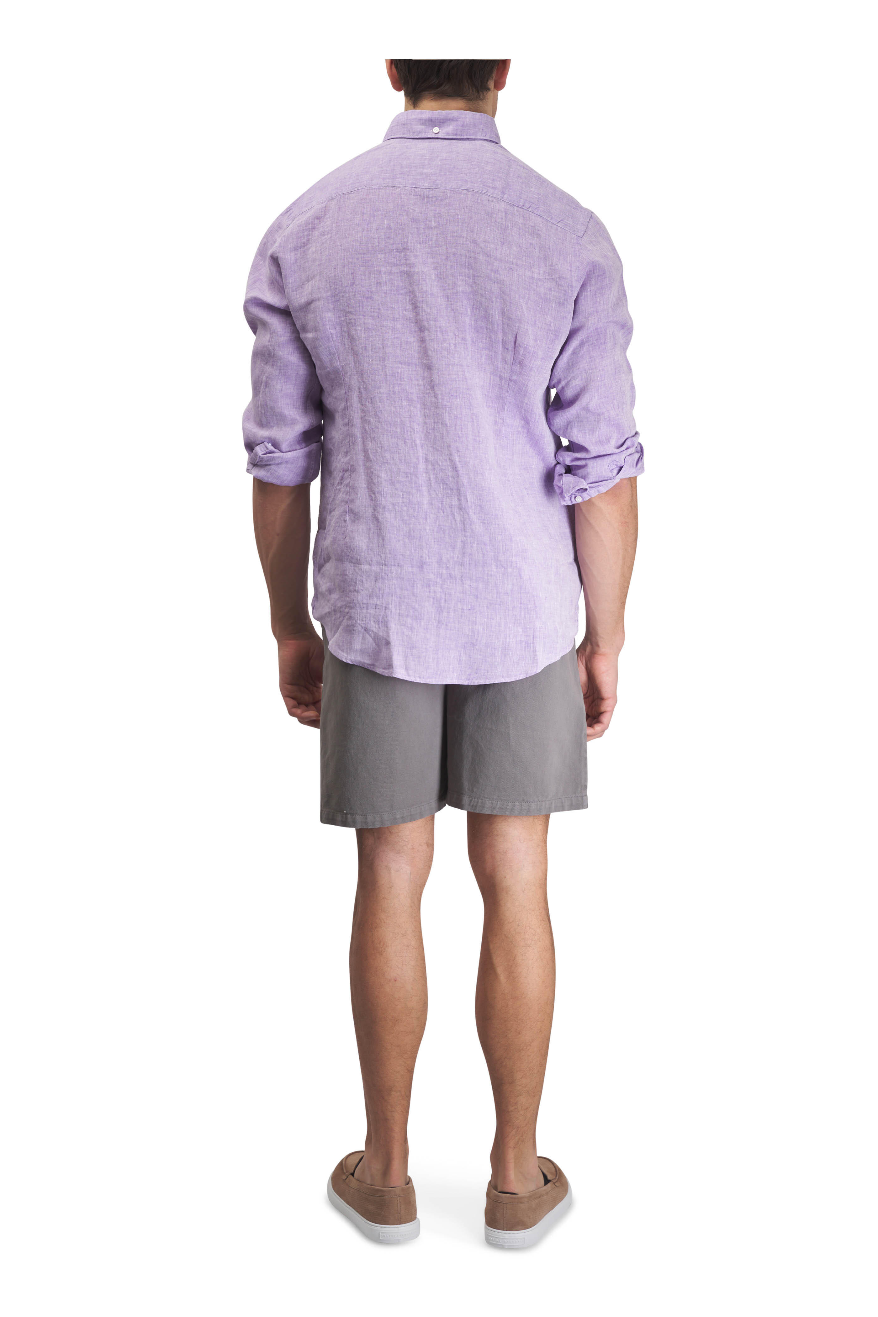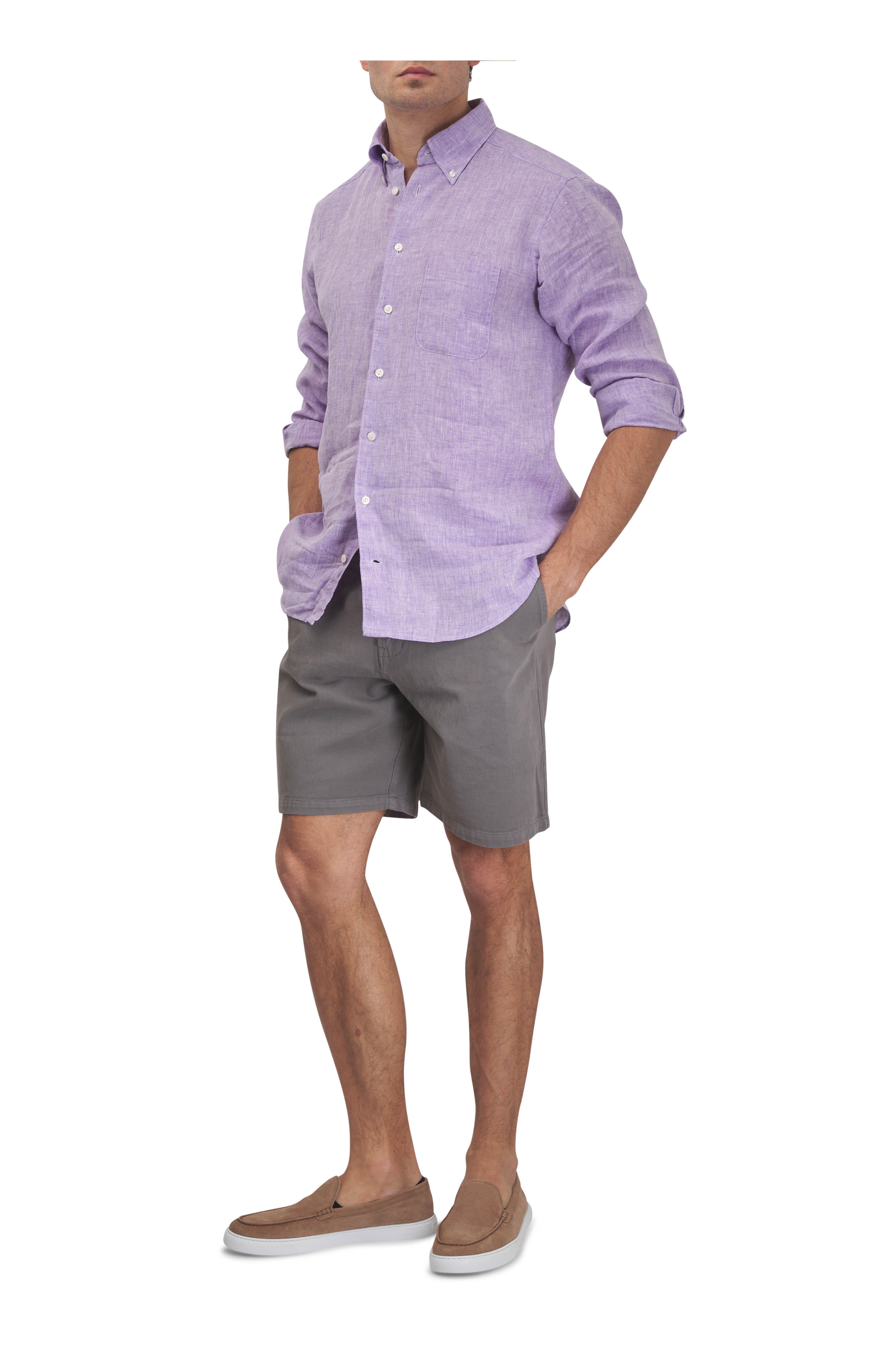 Zip fly; hook-and-eye closure. Banded waist; belt loops. Front slip pockets; back welt pockets. Imported. Inseam: 8". 100% cotton. Machine wash.