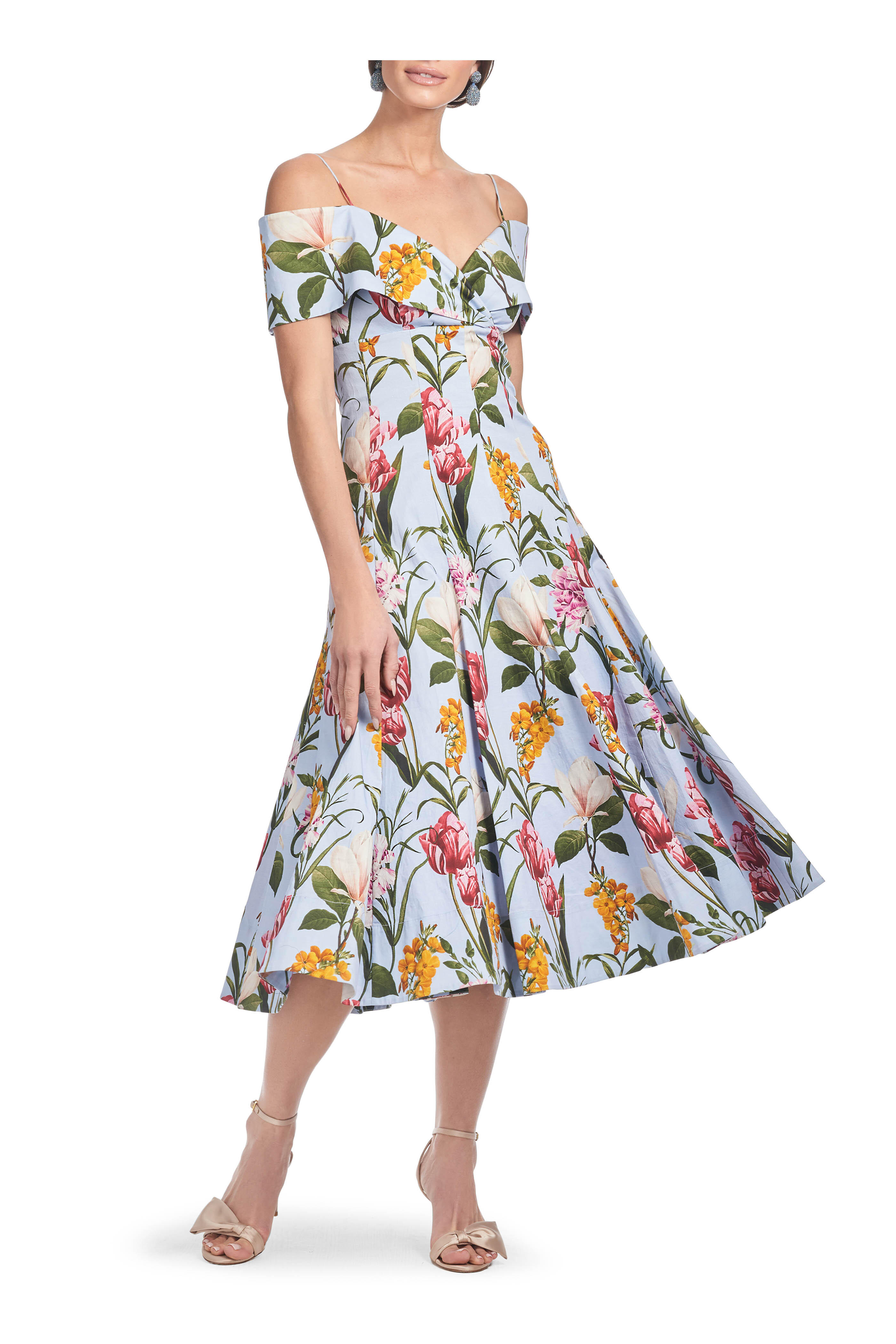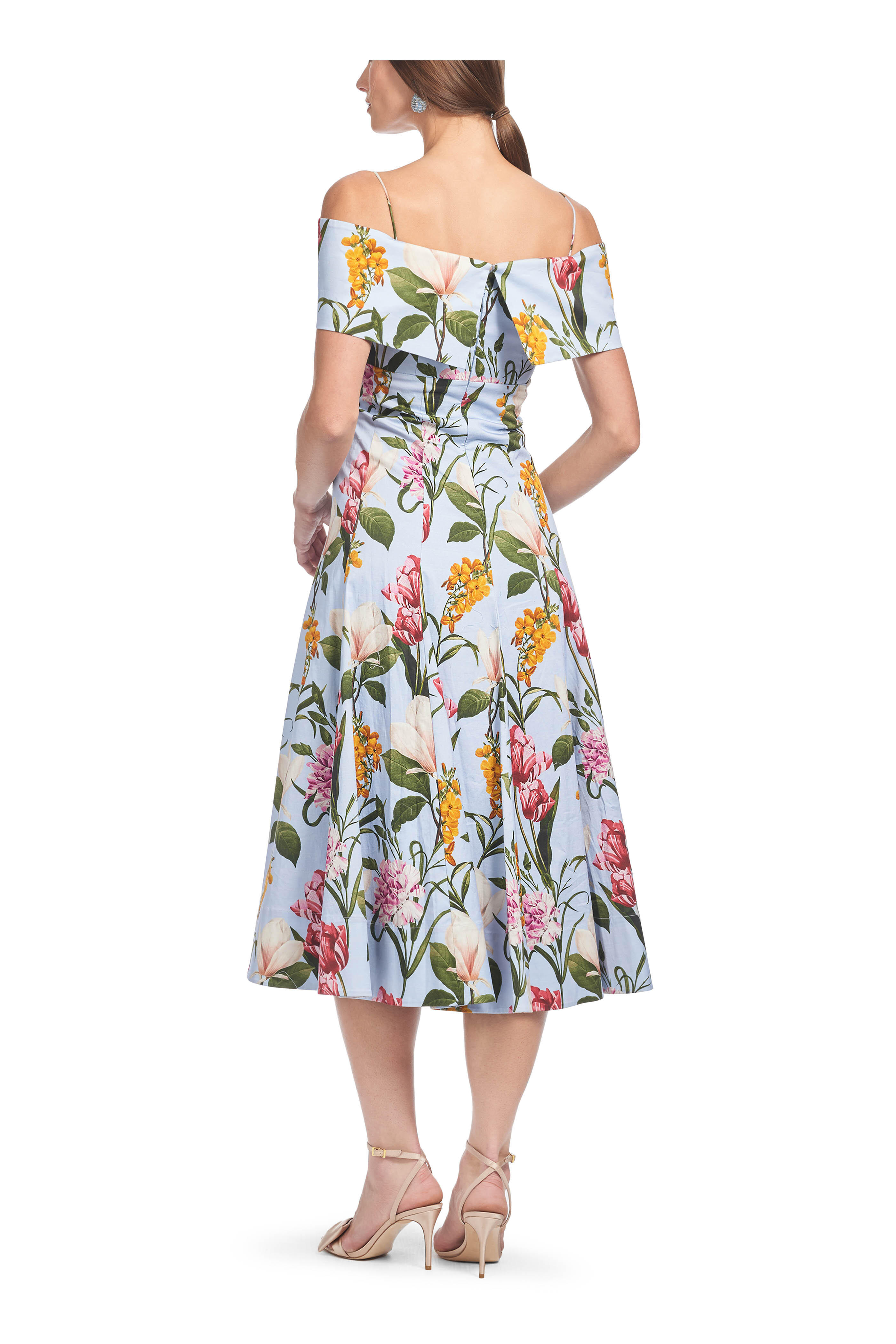 Sweetheart neckline. Back zip closure. Adjustable straps. Accordion pleats. Imported. Approximately 48" shoulder to hem. 97% cotton, 3% spandex; lined. Dry clean.