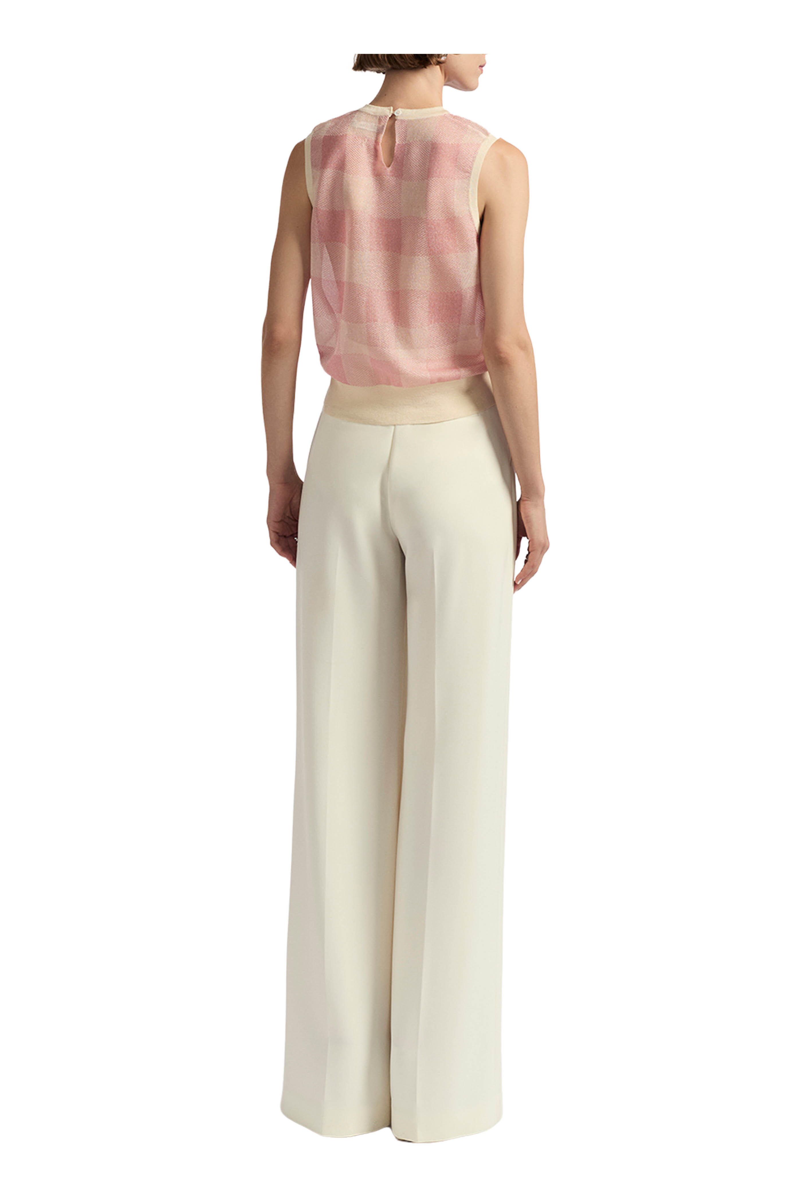 Crew neckline. Back center keyhole button with loop. Ribbed knit trim. Imported. Approximately 21" shoulder to hem (measurements taken from size S). 75% viscose, 25% nylon. Dry clean.