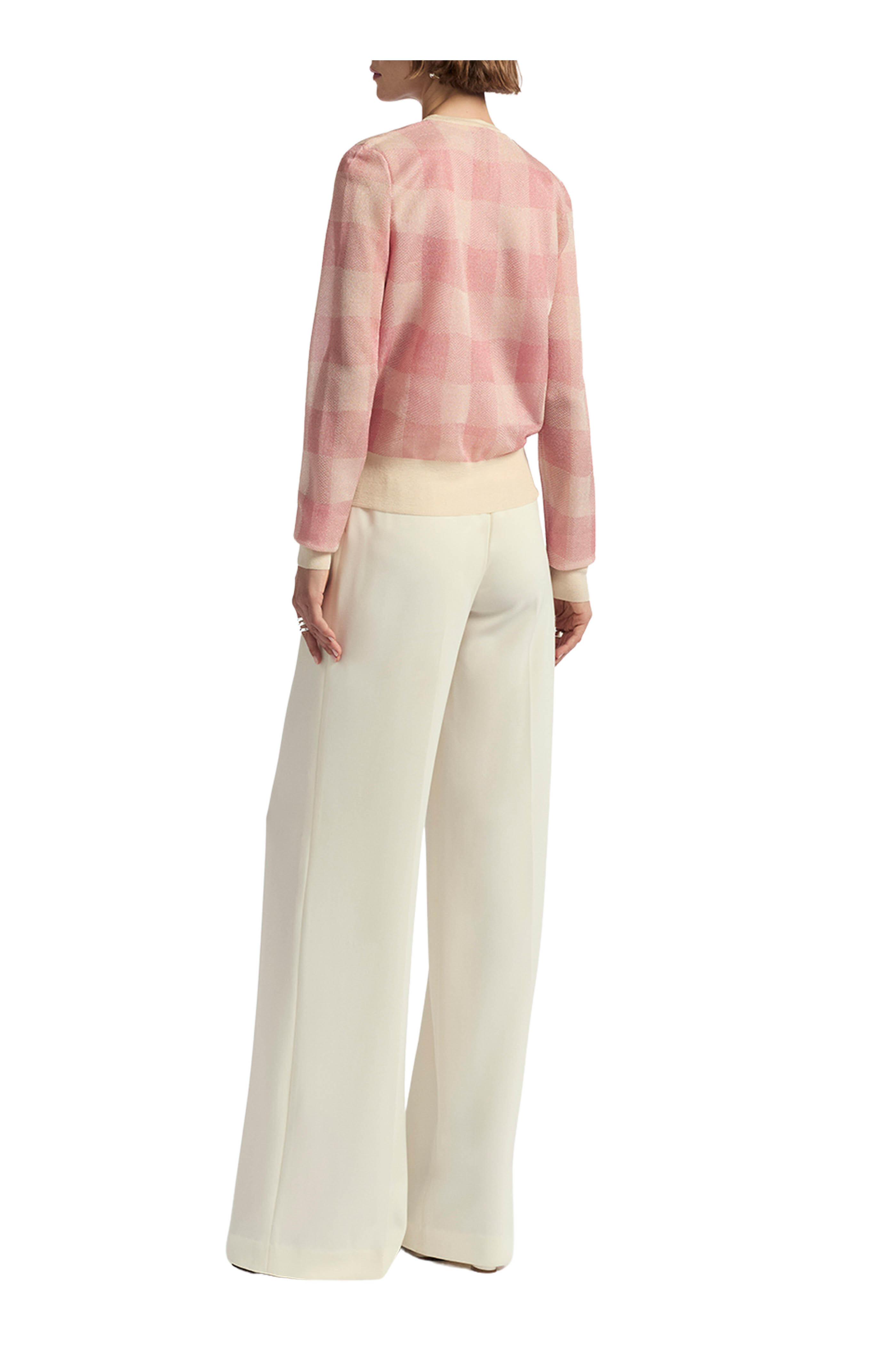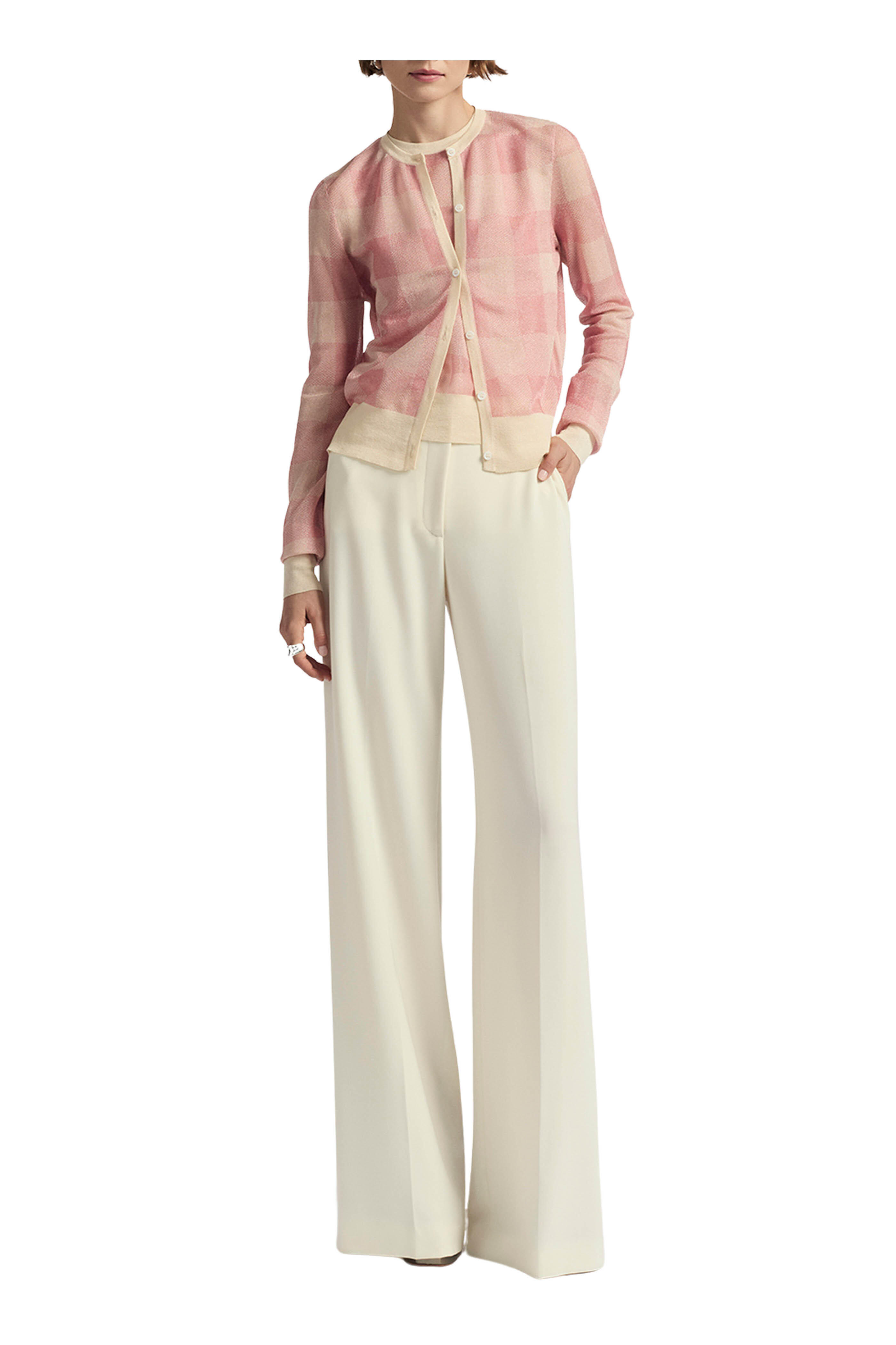 Crew neckline. Front button placket. Ribbed knit trim. Imported. Approximately 20 ½" shoulder to hem (measurements taken from size S). 75% viscose, 25% nylon. Dry clean.