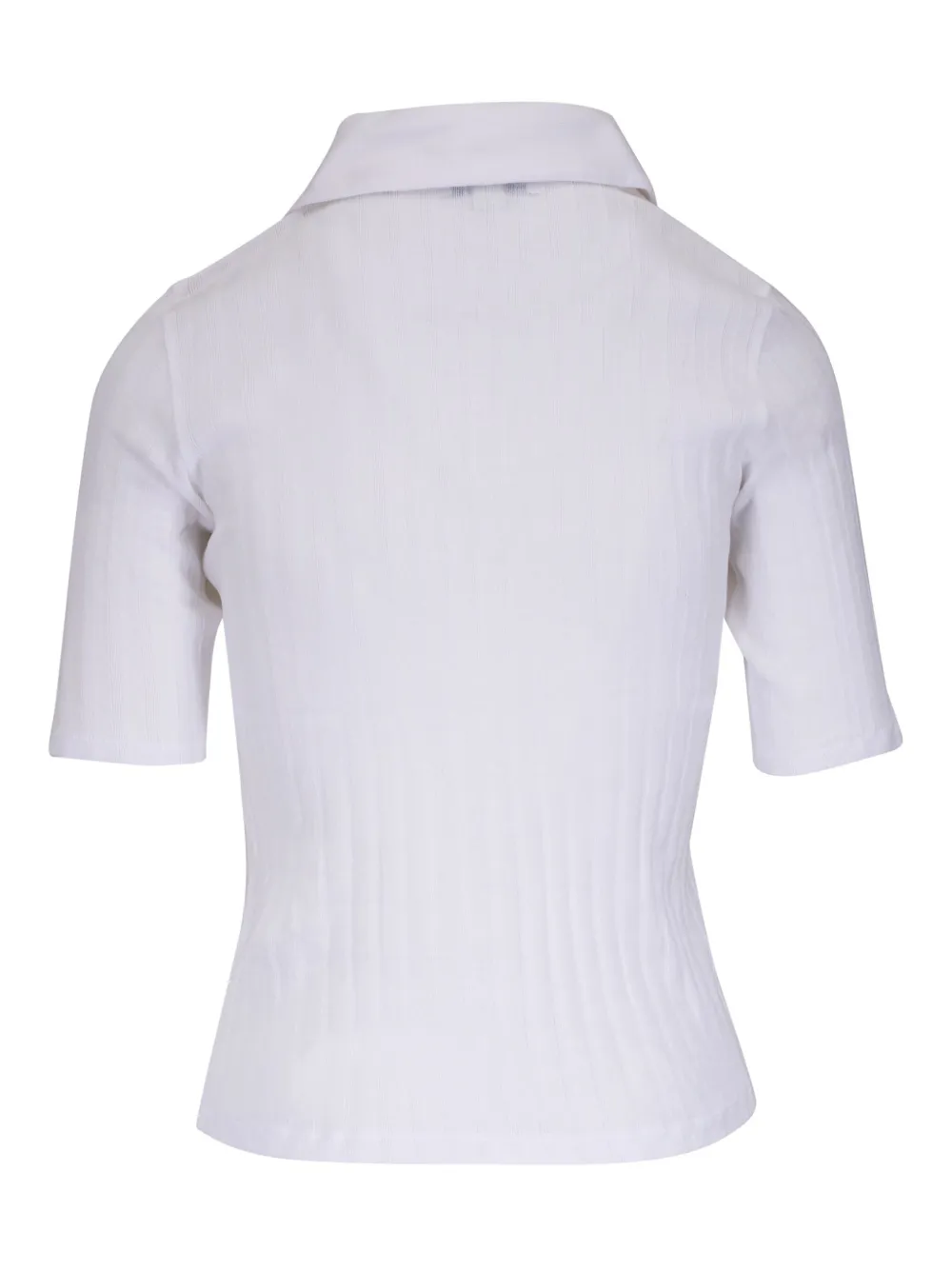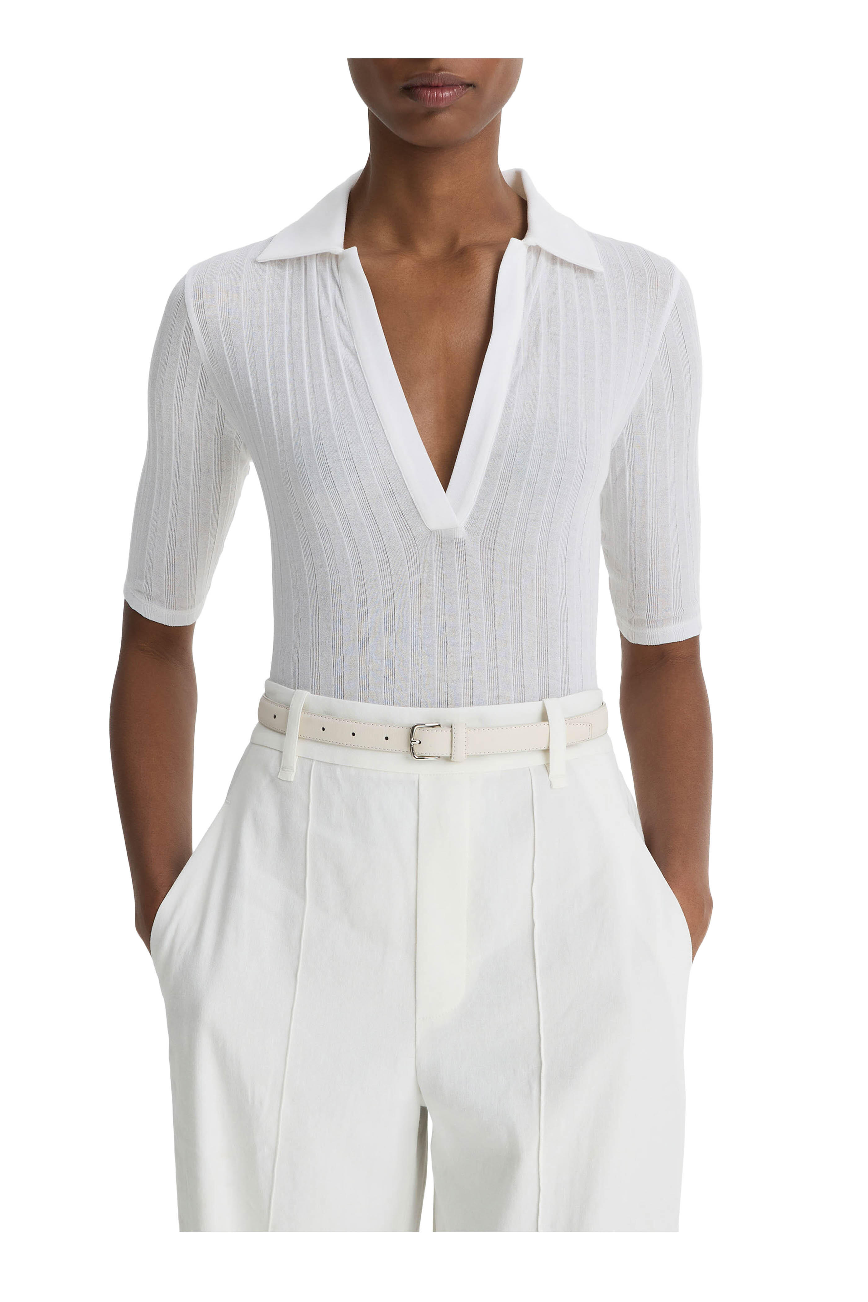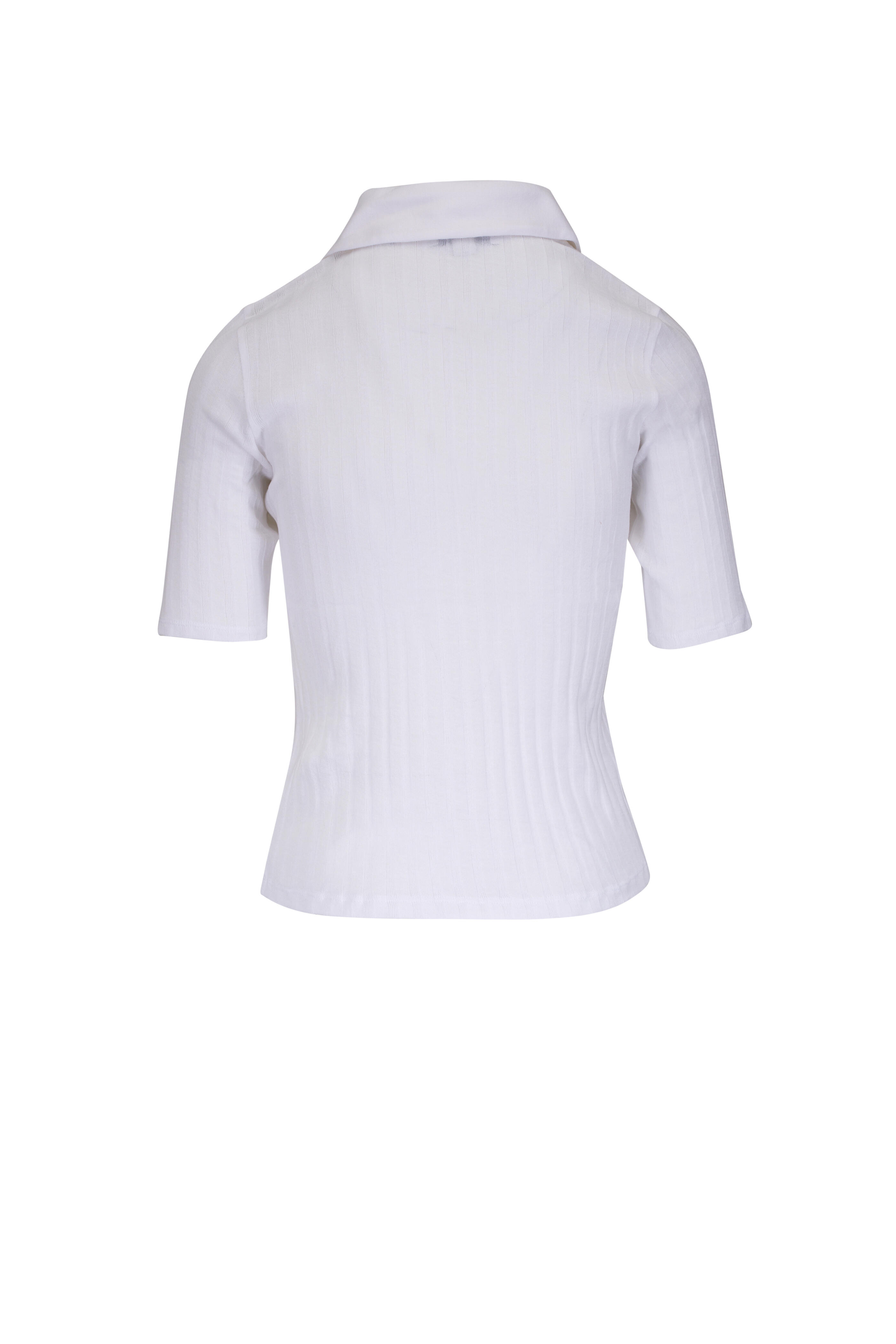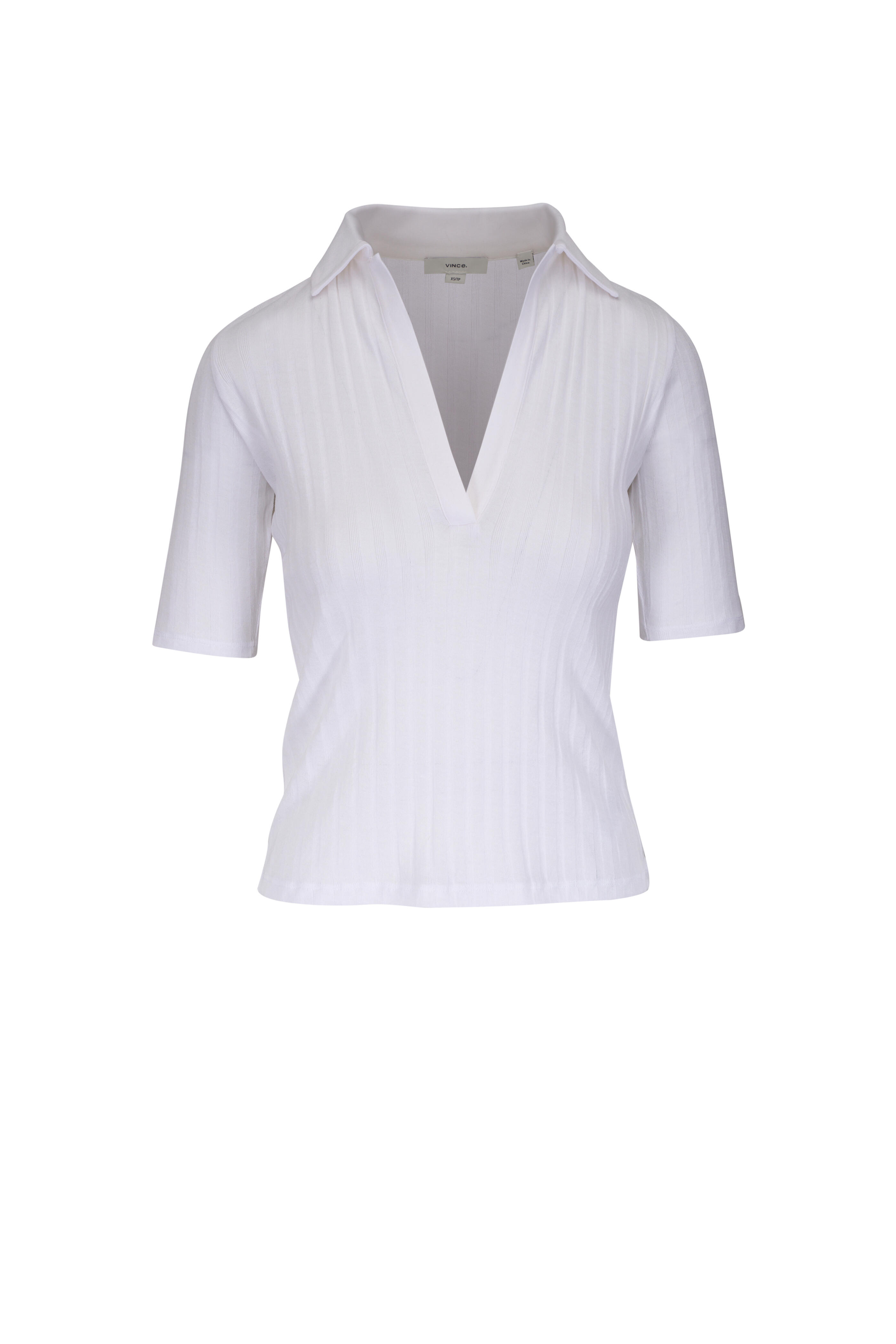 Spread collar. V-neckline. Imported. 100% cotton. Hand wash.