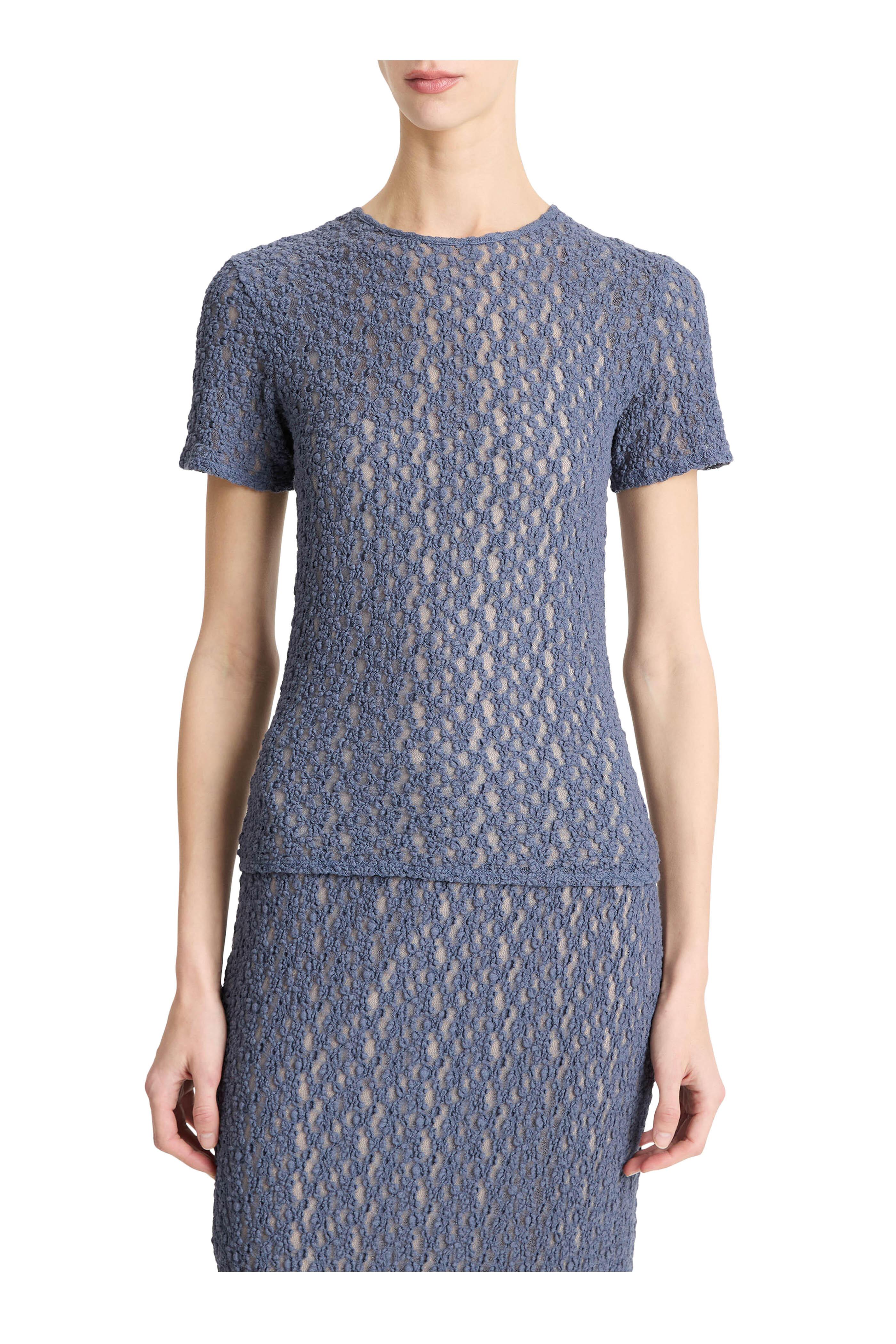 Crew neckline. Slip on style. Removable camisole lining. Imported. Approximately 22" shoulder to hem. 52% nylon, 47% cotton, 1% spandex. Hand wash.