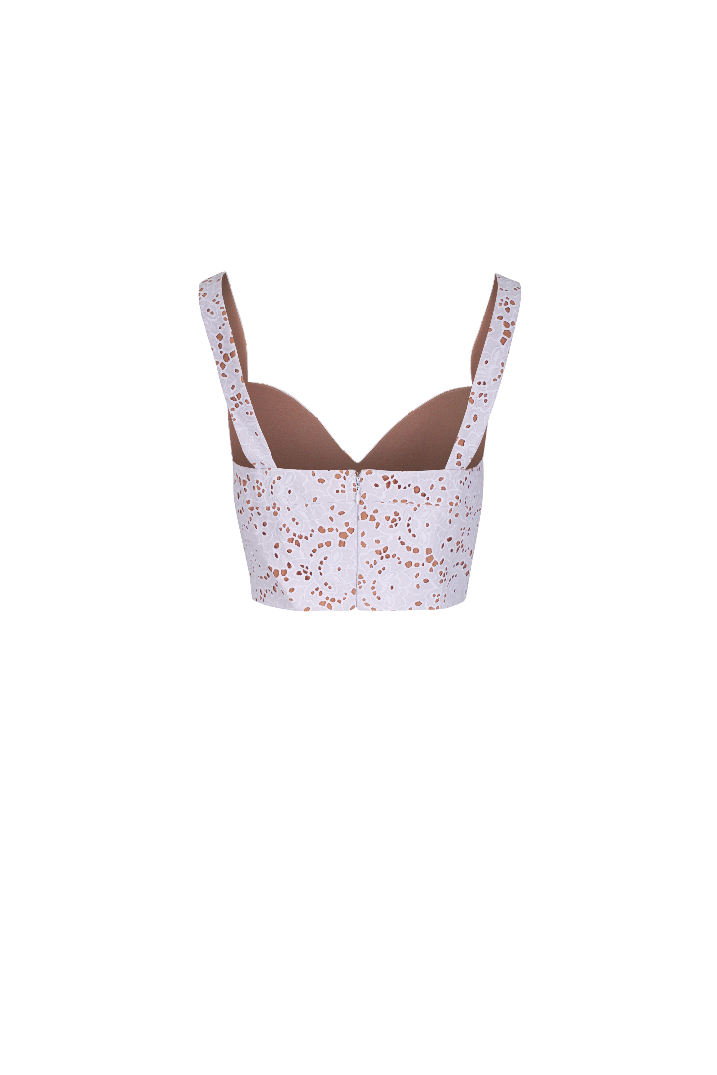 Sweetheart neckline. Concealed back zip. Spaghetti straps. Made in Italy. Shoulder to waist 15" (size 4). 100% cotton; lined. Dry clean.