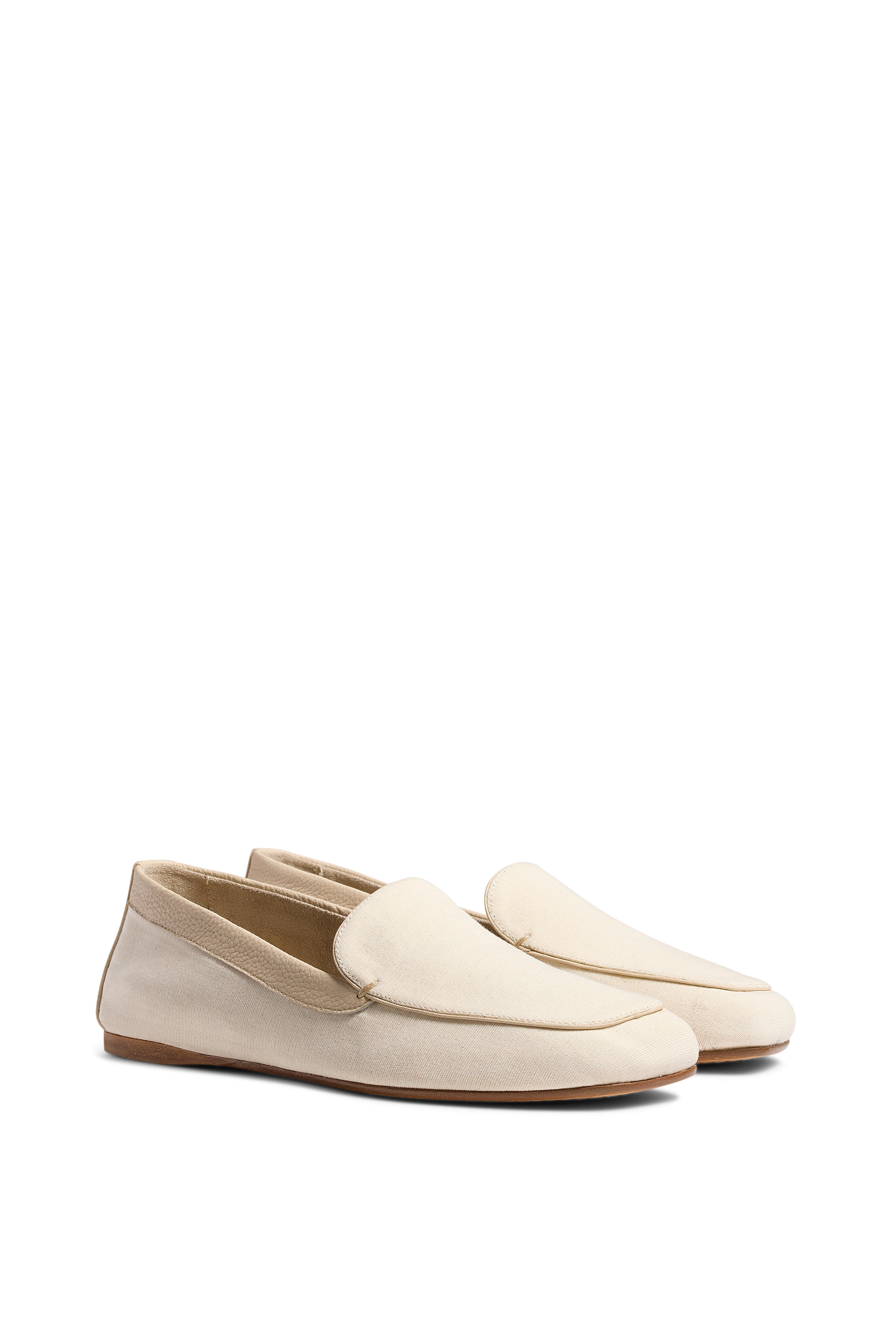 Canvas upper. Apron toe. Notched vamp. Leather lining and insole. Leather sole. Made in Italy.