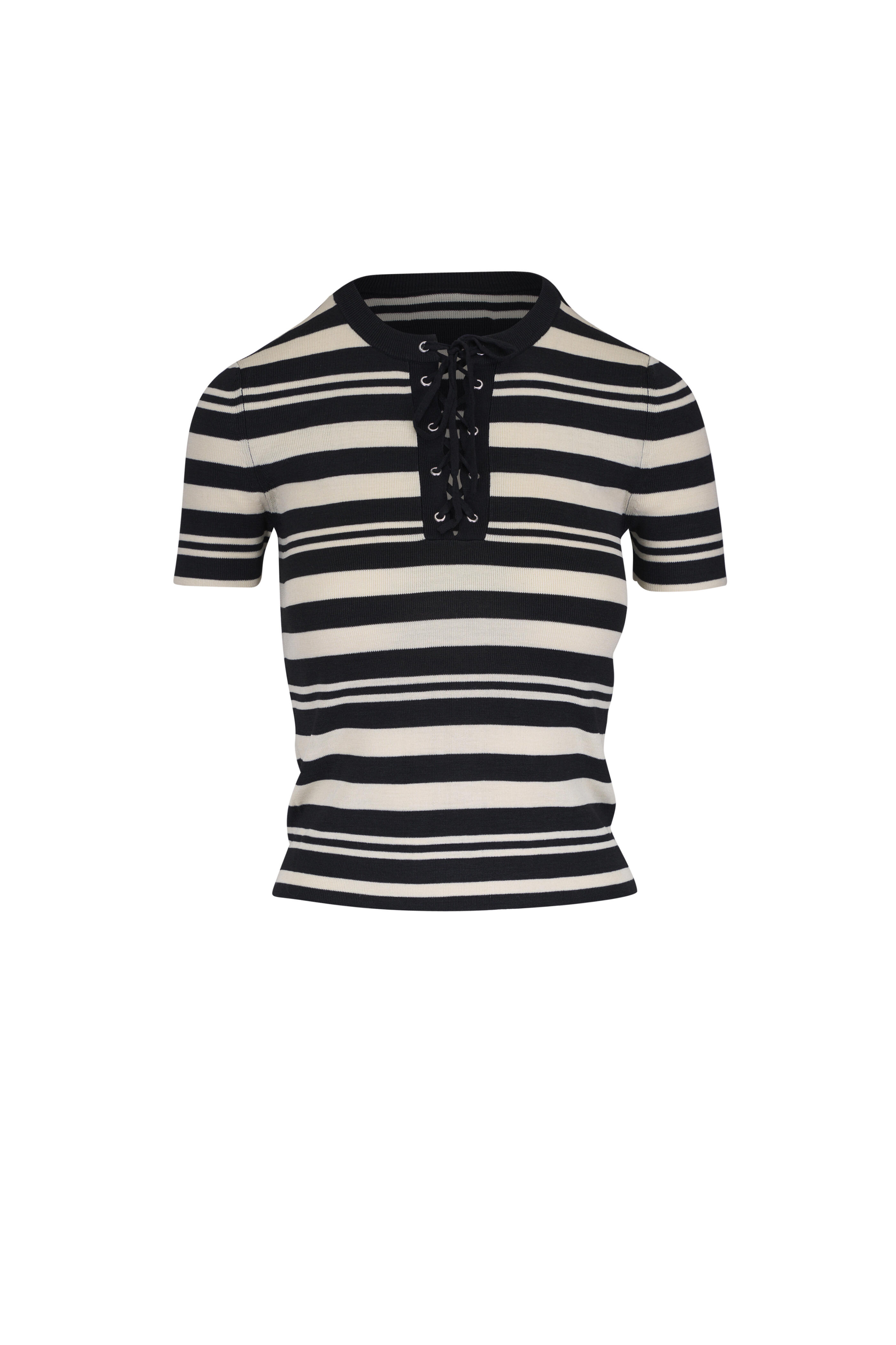 • Split neckline; lace up detail