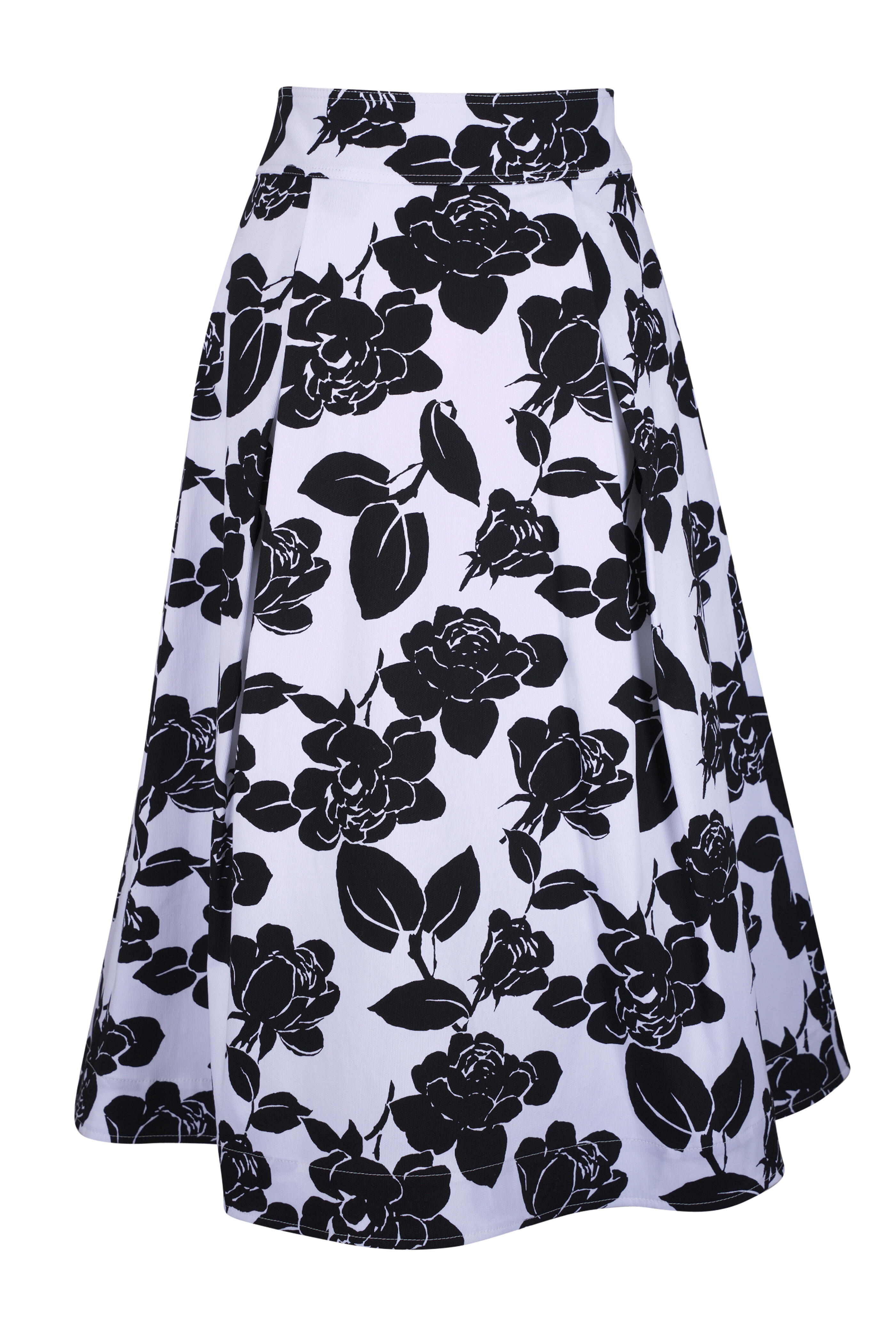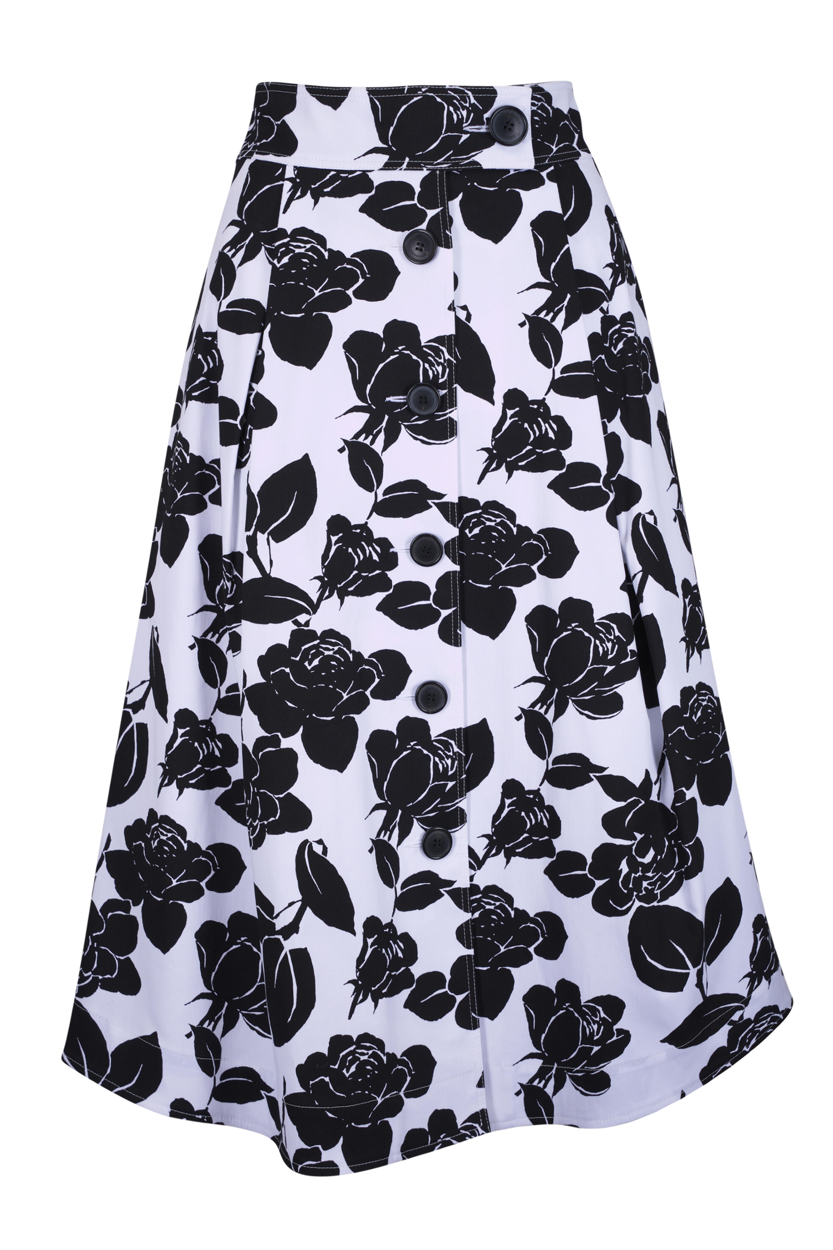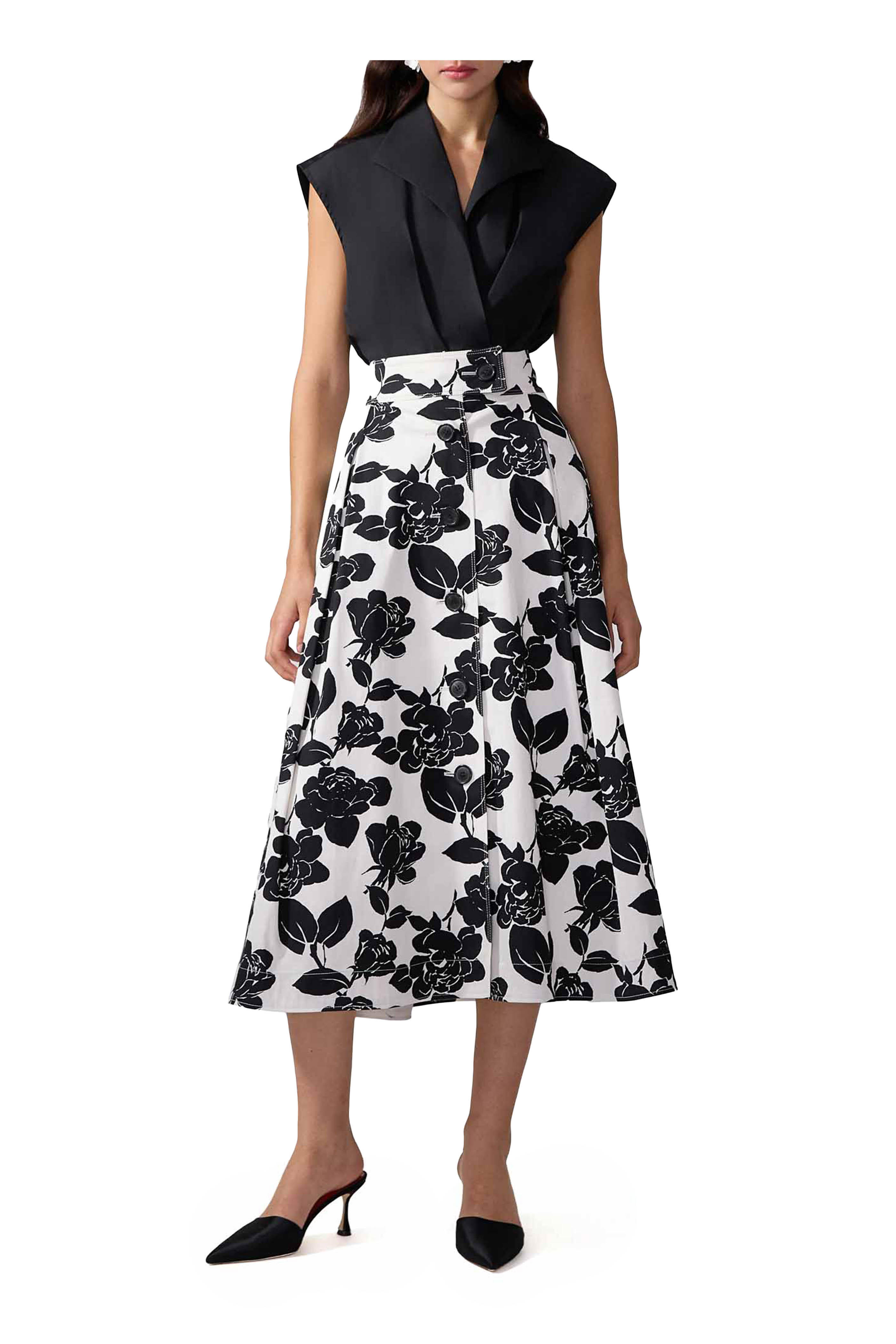 Button waist closure. Banded waist. Made in Italy. A-line. 97% cotton, 3% elastane. Dry clean.
