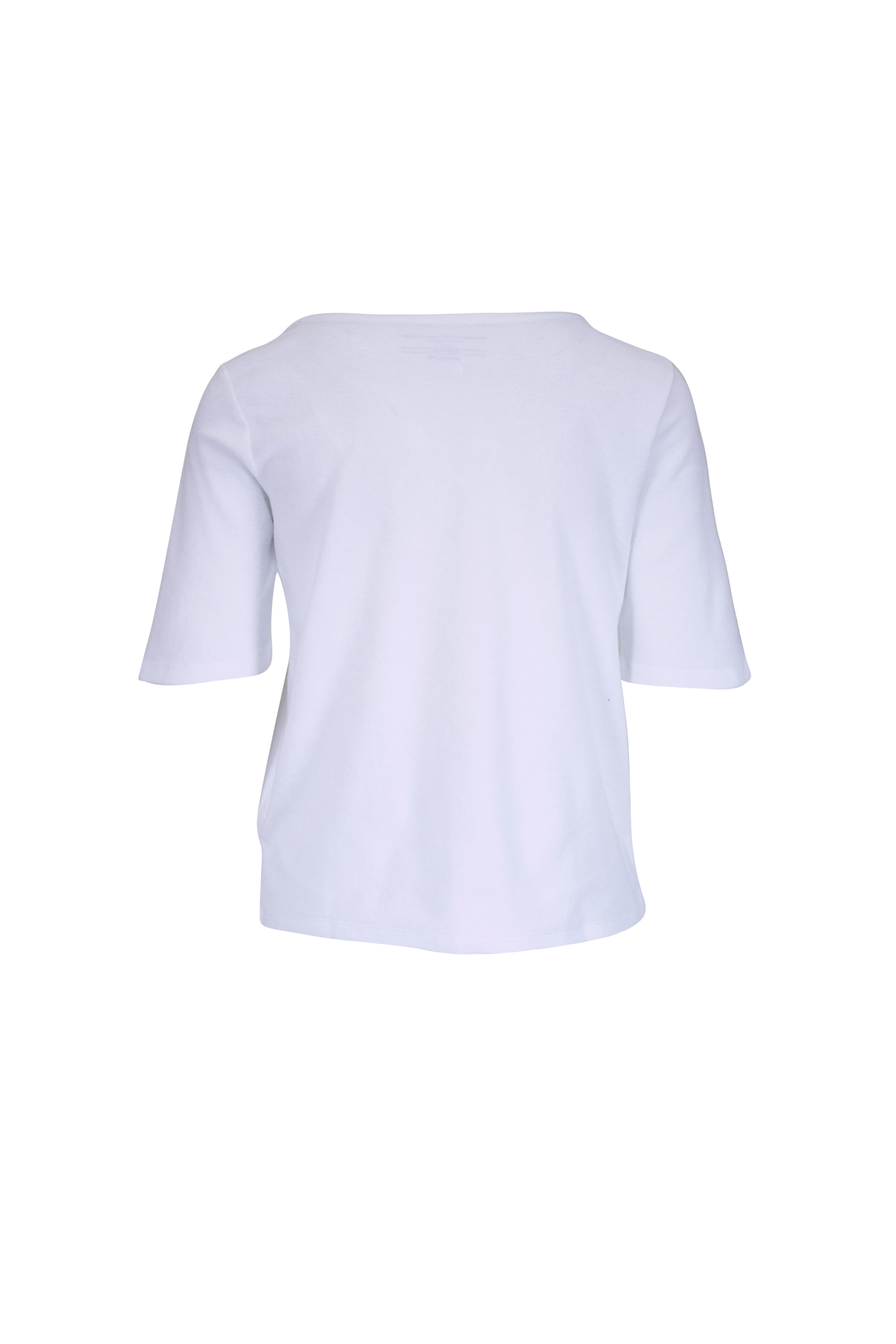 White Cotton Modal Terry Elbow Sleeve T-Shirt